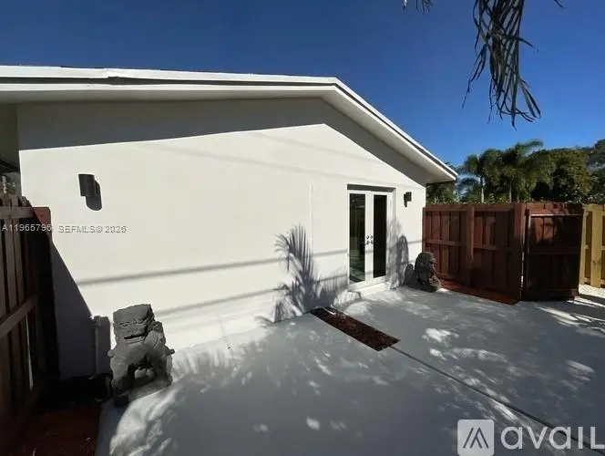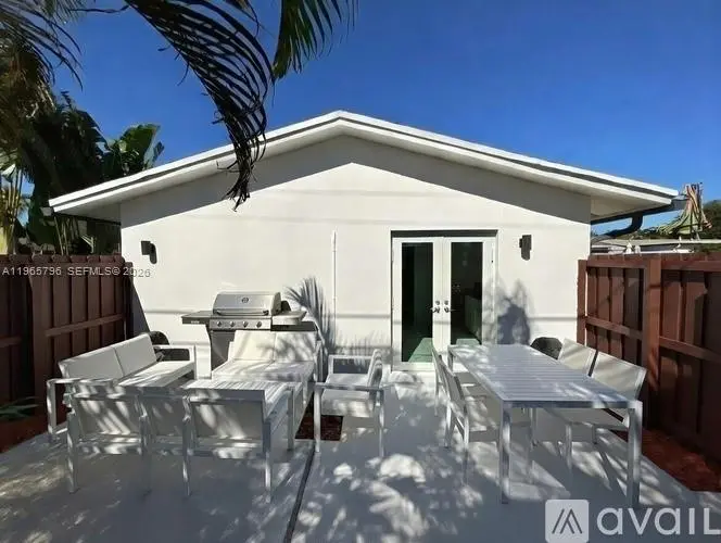 The Cypress Unit at The Wilton Courtyard. Charming Newly Remodeled Fourplex 1 Bedroom 1 Bath unit with a private 300sqft fenced outdoor terrace living space outside kitchen and living room. 1 parking space included. Nestled in the most desirable area of Wilton Manors, this property provides the perfect blend of comfort and convenience. Situated on a quiet and safe street with a single family feel, minutes away from Wilton Manors entertainment district and Ft. Lauderdale. This unit boasts newer marble-like porcelain white floors, New black granite countertops, 2 New modern AC Units and abundant natural light. The updated white cabinetry kitchen features new stainless steel appliances, including dishwasher. Newly painted and NEW 1in white cordless blinds installed on all windows. NEW hurricane impact modern windows/doors, and new grass throughout property. On-site full size Washer/Dryer. White fence door installed. Super fast Fiber Optic internet/cable included. *All Utilities Included in rent.* Tenants are able to come up with First Month & Security Deposit only to start. Whether you're a foodie, a nightlife enthusiast, or someone who loves the convenience of being near urban living in a rural, quiet setting, this property has it all. Do not miss this opportunity! *Renters Insurance and Small Application Fee/Background Check. **Terrace shown virtually staged—just giving you a glimpse of what it could look like.**