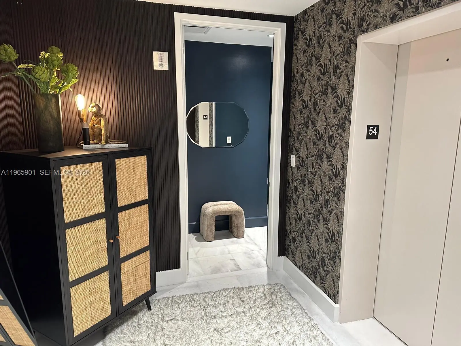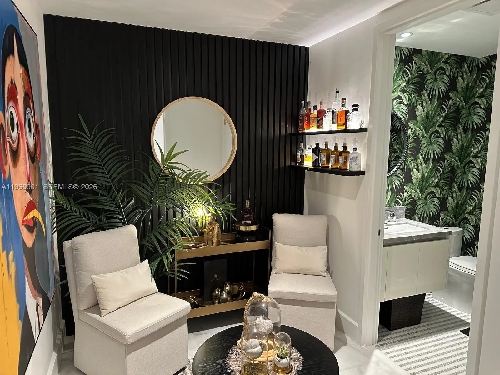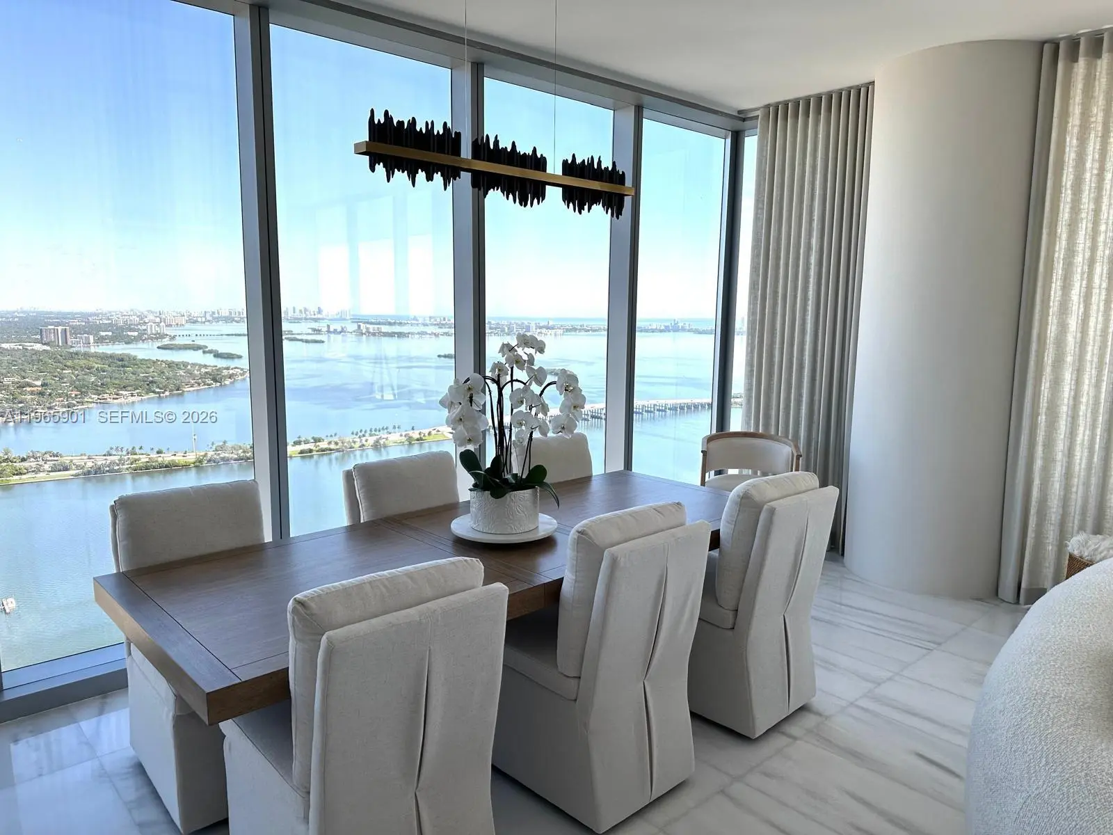 Spectacular turnkey residence on the 54th floor at Missoni Baia, presenting unparalleled luxury living with breathtaking Bay, Ocean and skyline panoramic views. This 3 bedroom 4.5 bath plus Den/Maid Quarters, corner residence is thoughtfully curated and delivered fully furnished with high-end finishes, built-ins, designer wallpaper and original artwork, making it truly move-in ready for the most discerning buyer. The residence features floor-to-ceiling windows with stunning water views, custom designer closets throughout, and a remarkable primary closet that resembles a luxury boutique. Each of the three ensuite bedrooms flows seamlessly with elegant finishes and abundant natural light. The chef’s kitchen is appointed with premium appliances and exquisite finishes, complementing the sophisticated living and dining spaces. This home features a custom designed walk-in bar, perfect for intimate gatherings. Every detail has been thoughtfully considered to ensure comfort, style and convenience. Missoni Baia offers resort-quality amenities curated to elevate everyday living and a world-class five-star experience. Residents enjoy an Olympic-sized lap pool, multiple resort-style pools with cabanas, an expansive spa and wellness center, state-of-the-art fitness facilities, tennis courts, private screening and game rooms, hair and nail salon, children’s club, pet spa, concierge and valet services, and multiple event spaces overlooking Biscayne Bay.
