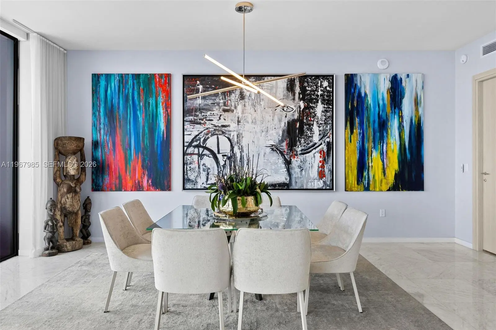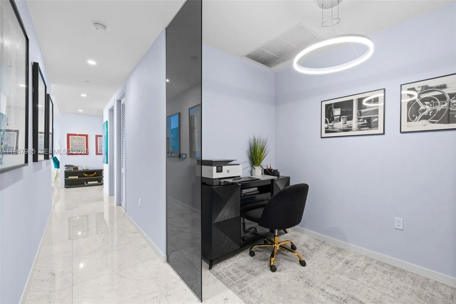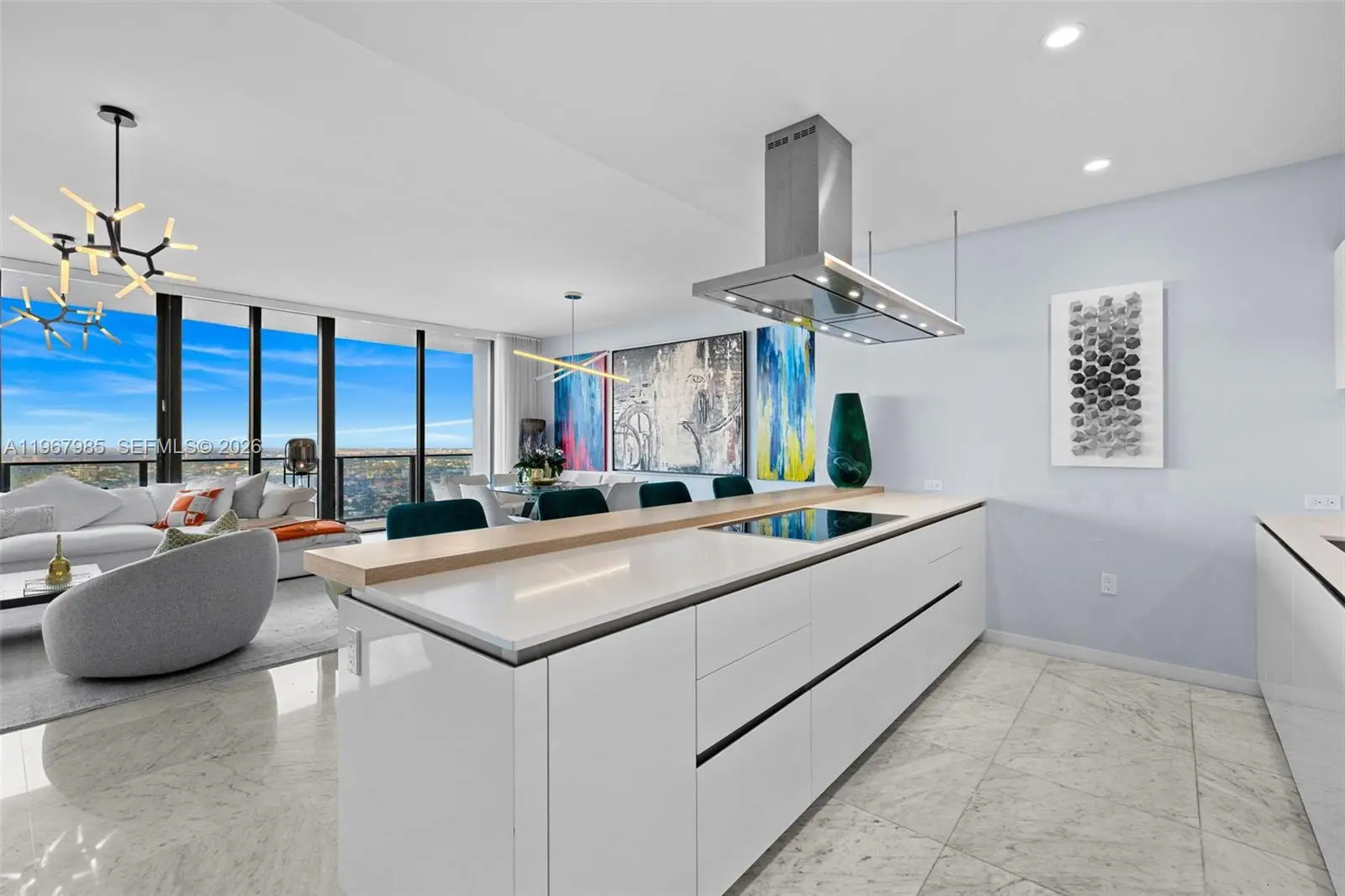 PH5304 at Flatiron Brickell is a rare trophy sky residence conceived by visionary developer Ugo Colombo, architect Luis Revuelta, and interior designer Massimo Losa Ghini. Spanning 2,418 square feet of impeccably curated interiors, this exceptional home captures sweeping, unobstructed ocean and skyline views with breathtaking sunsets as its daily backdrop. Originally designed as a four-bedroom layout, the residence has been masterfully transformed into three expansive bedroom suites, 4.5 baths, and a private den. The removal of the fourth bedroom creates a grand, open-concept living space of impressive scale—enhancing natural light and flow—while preserving the option to restore the fourth suite if desired. Floor-to-ceiling impact glass and soaring 9-foot ceilings flood the home with light, complemented by bespoke custom closets, elegant cove lighting, and a state-of-the-art Italian kitchen designed for elevated entertaining. Residents enjoy one of the most impressive amenity collections in Miami, including a sky-level pool with panoramic views, spa and steam rooms, lap pool, state-of-the-art fitness center, yoga and Pilates studio, children’s playroom, movie theater, 24-hour doorman, and concierge service—delivering a true five-star lifestyle. Offered fully furnished and impeccably maintained by its sole owner, this turnkey penthouse includes two assigned parking spaces plus valet, just steps from Brickell City Centre—defining elevated luxury living in Brickell.