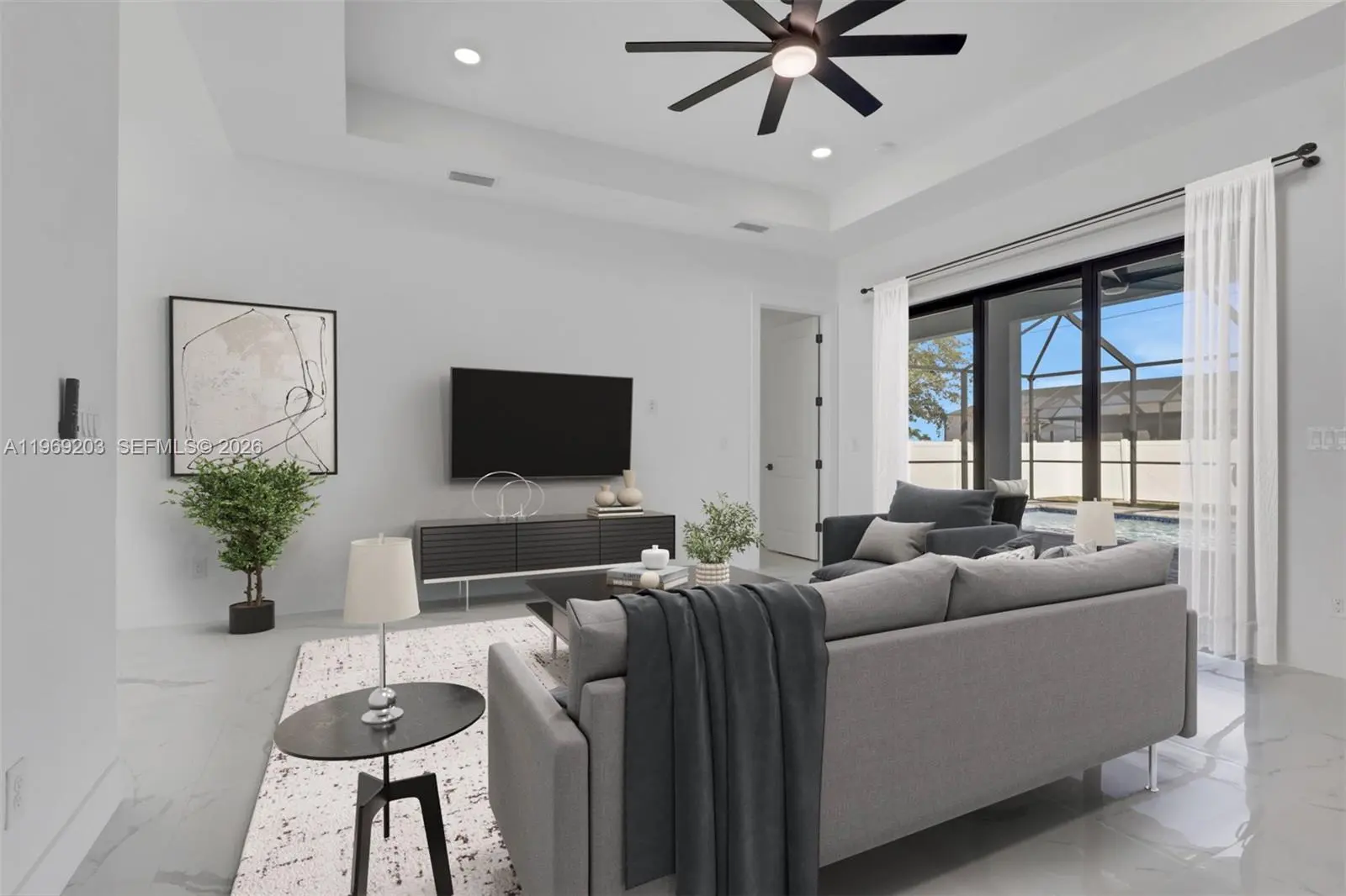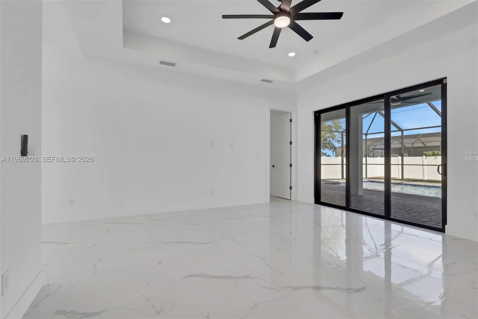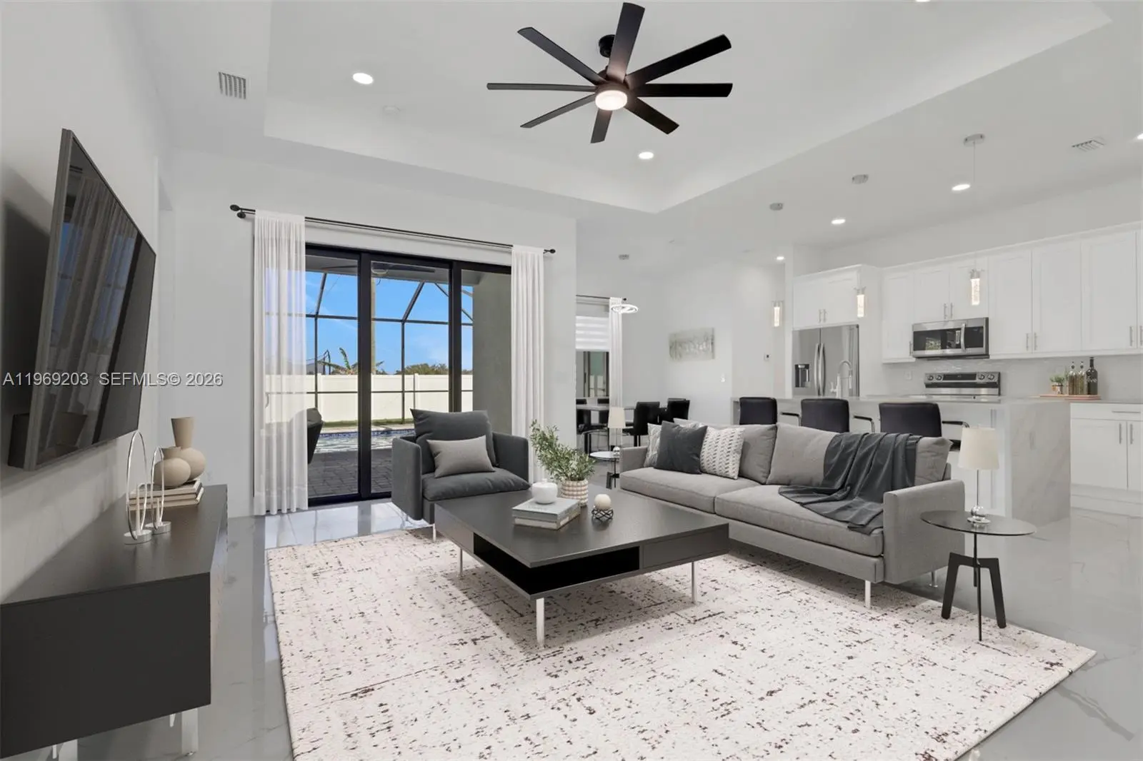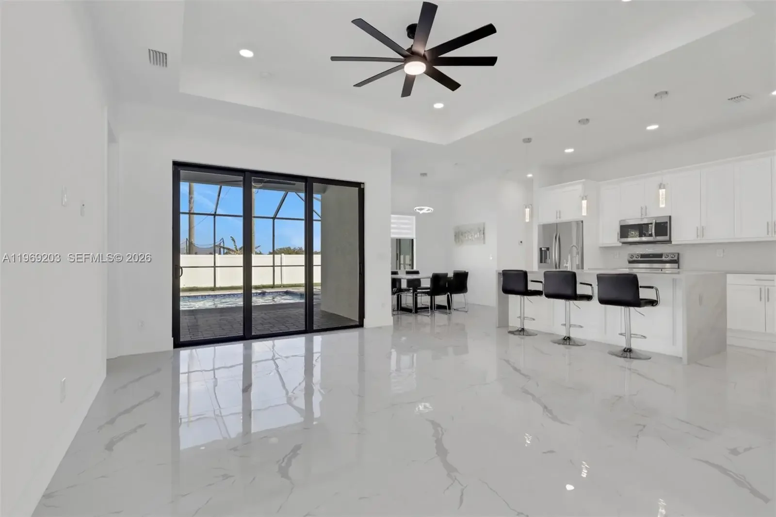 Step into modern luxury with this pool home centrally located in one of the fastest grown areas in Cape Coral. This home features 1,735 sq. ft. residence featuring a spacious 4-bedroom, 2.5-bathroom split floor plan. The grand entry through elegant French doors reveals a "Great Room" concept defined by stunning tile flooring, soaring 8-foot interior doors, and an abundance of natural light. At the heart of the home, a custom chef’s kitchen shines with sleek white cabinetry, contemporary quartz countertops, and ample storage. The private master suite offers a true retreat with dual walk-in closets and double vanities, while 3 guest bedrooms provide plenty of space for family or visitors. Built for both style and peace of mind, the home includes a 2-car garage, glass-enclosed showers, and impact resistant windows and doors for ultimate security. The hoe comes with a GenerLink as well as a surgeSENSE from LCEC (Lee County Electric Cooperative). Complete with a backyard layout ready for your dream summer kitchen, this home offers all the modern touches you’ve been searching for—don't miss your chance to see it in person!