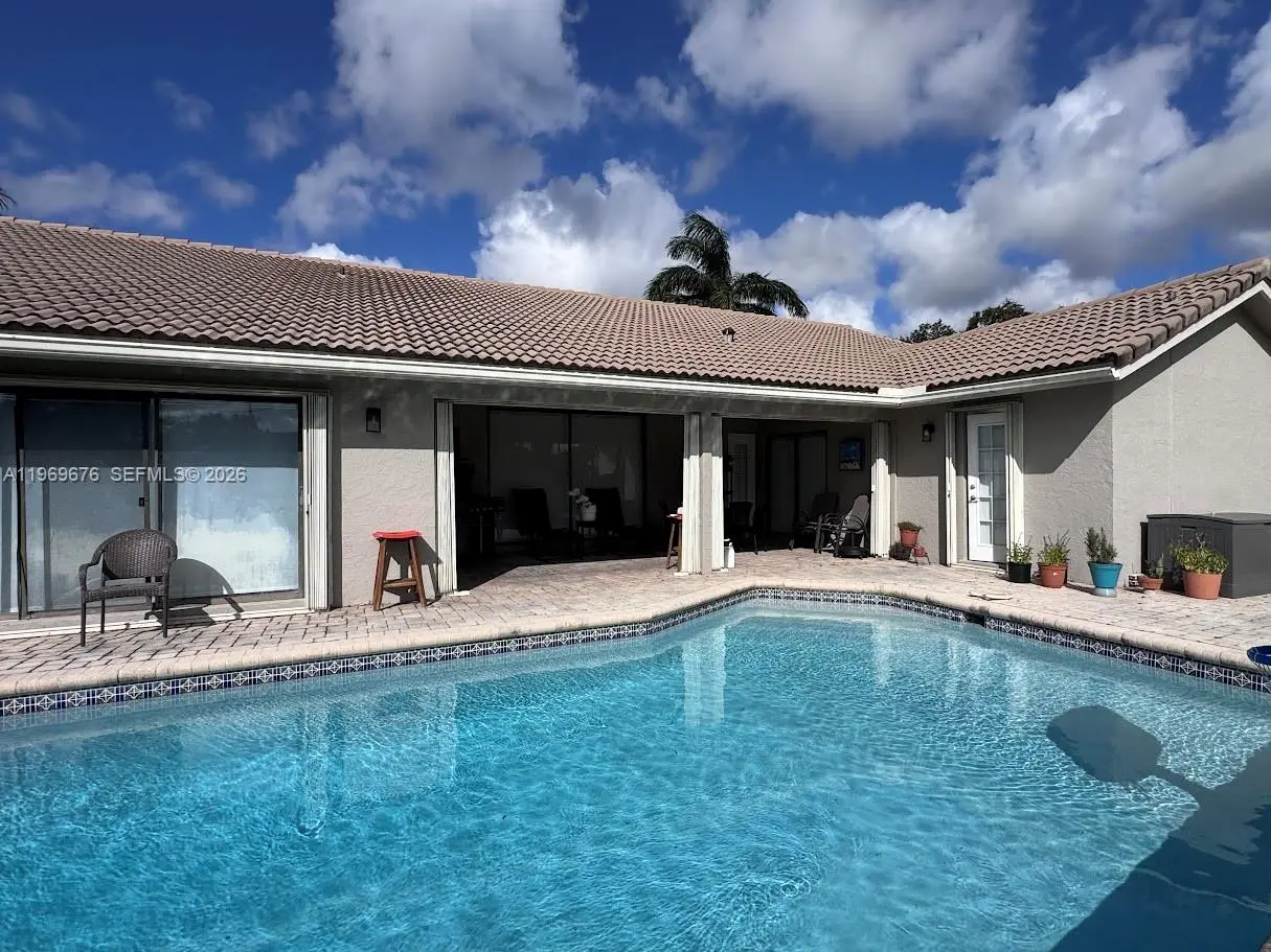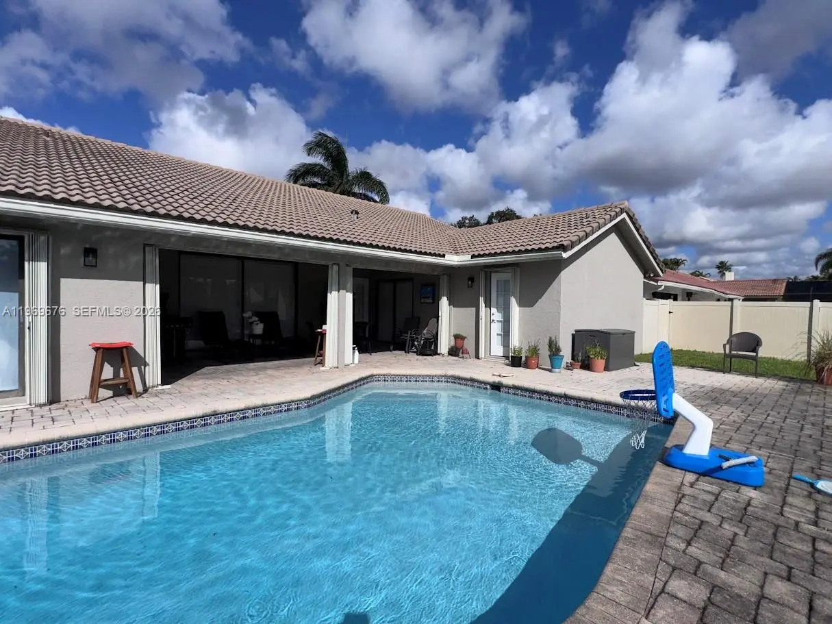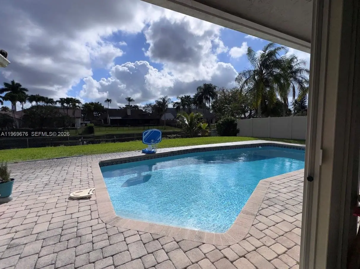 4 BED 2.5 Bath 2 car Garage with pool, tile and Laminate floors, kitchen with granite countertop, Laundry Room, Fenced yard, Patio, with canal view Accordion hurricane shutters. The best location in Jacaranda Lakes near shopping, schools and Place of worship. Good credit only.