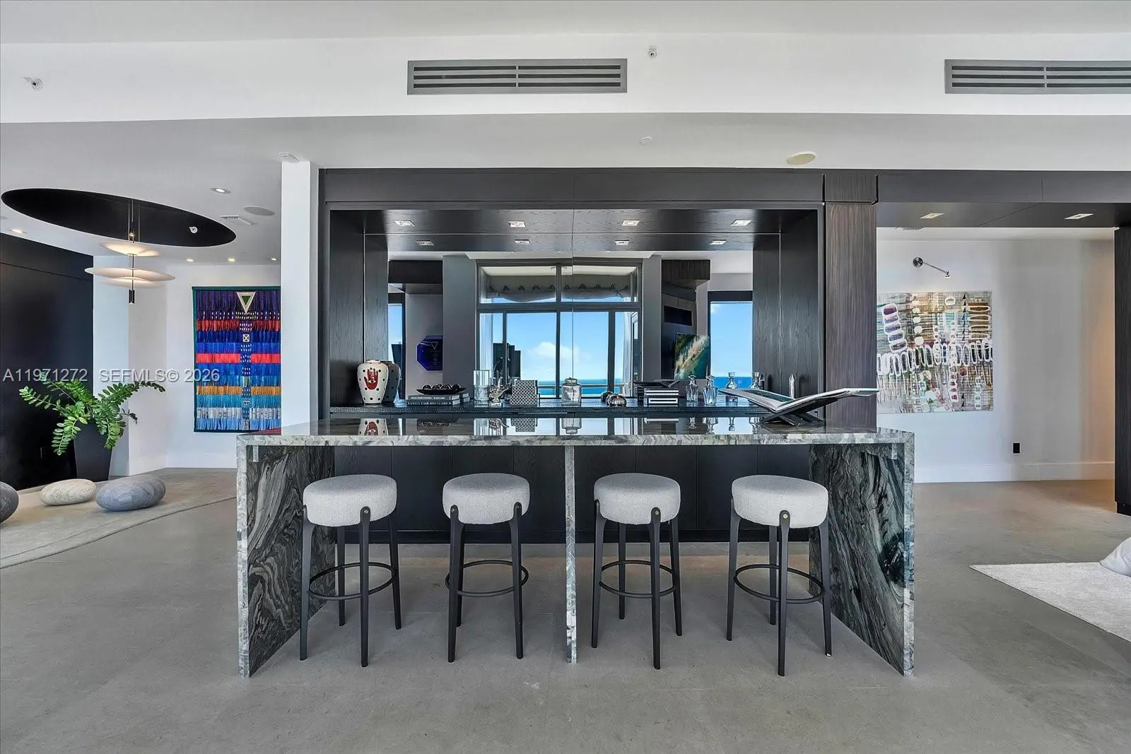Discover unparalleled luxury on the 60th floor of Four Seasons Residences Brickell. This exceptional 3,554 SF AB combination offers 3 bedrooms, 5 full baths, and dedicated staff quarters. Soaring 10 foot ceilings and dramatic floor to ceiling windows frame magnificent views of the ocean, Biscayne Bay, the City of Miami, and breathtaking sunsets. The primary suite features stunning bay vistas and his and hers walk in closets. A second primary suite includes its own walk in closet, while the third ensuite offers private balcony access overlooking the skyline. Wood paneled built ins, elegant limestone floors, a striking quartzite bar, and a gourmet kitchen elevate the design. Masterfully designed by acclaimed interior designer Bea Pernia, the home reflects refined craftsmanship. Furniture is negotiable. The Four Seasons is a five star world class condo hotel offering a heated infinity pool, Equinox fitness center, spa, concierge, valet, in residence dining, and 24 hour security in the heart of Miami’s financial and cultural center.