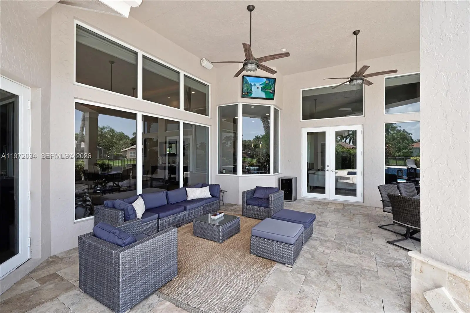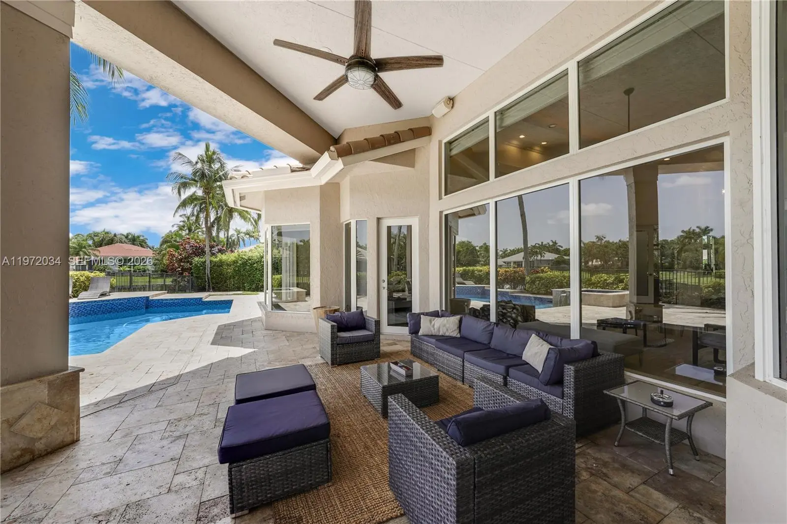 Experience luxury, comfort, and privacy in this beautifully renovated one-story estate offering over 5,200 sq ft of living area in the prestigious Weston Hills community. Nestled on a cul-de-sac with serene lake views, this home features 6 bedrooms, 6.5 bathrooms, a dedicated office, and a private gym space—ideal for modern family living and entertaining. Enjoy peace of mind with impact windows and doors and a roof approximately 10 years old. The expansive interior showcases oversized living areas and a thoughtful split layout. The primary suite overlooks the pool and lake, and includes two large walk-in closets with built-in cabinetry, plus an additional flexible room—perfect for a gym, nursery, sitting room, or studio. In a separate wing, you’ll find four en-suite bedrooms, each with walk-in closets and private baths, providing exceptional comfort and privacy. A spacious additional room next to the cabana bath can serve as a second office, playroom, media room, or guest suite. Step outside to your private resort-style backyard featuring an amazing patio, pool, and BBQ/entertaining area, all set against the tranquil lake backdrop. This is Florida living at its finest in one of Weston’s most sought-after communities.