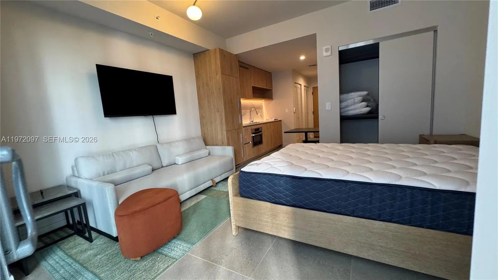 Brand-new, fully furnished Studio at The Crosby Miami World Center, offering 350 sq. ft. of modern living space. The unit features floor-to-ceiling windows, a smart open floor plan, and sleek, contemporary finishes. Custom-designed furniture complements a European-style kitchen equipped with top-ofthe-line appliances. The unit also includes the convenience of an in-unit washer and dryer. Enjoy resort-style amenities, such as a rooftop pool with panoramic city views, a state-of-the-art fitness center, a spa, movie theater, game room, stylish lounges, social spaces, 24/7 security, and concierge services. Ideally located just steps away from Kaseya Center, Brightline, Bayside, and all the dining, shopping, arts, and nightlife that the World Center district has to offer.