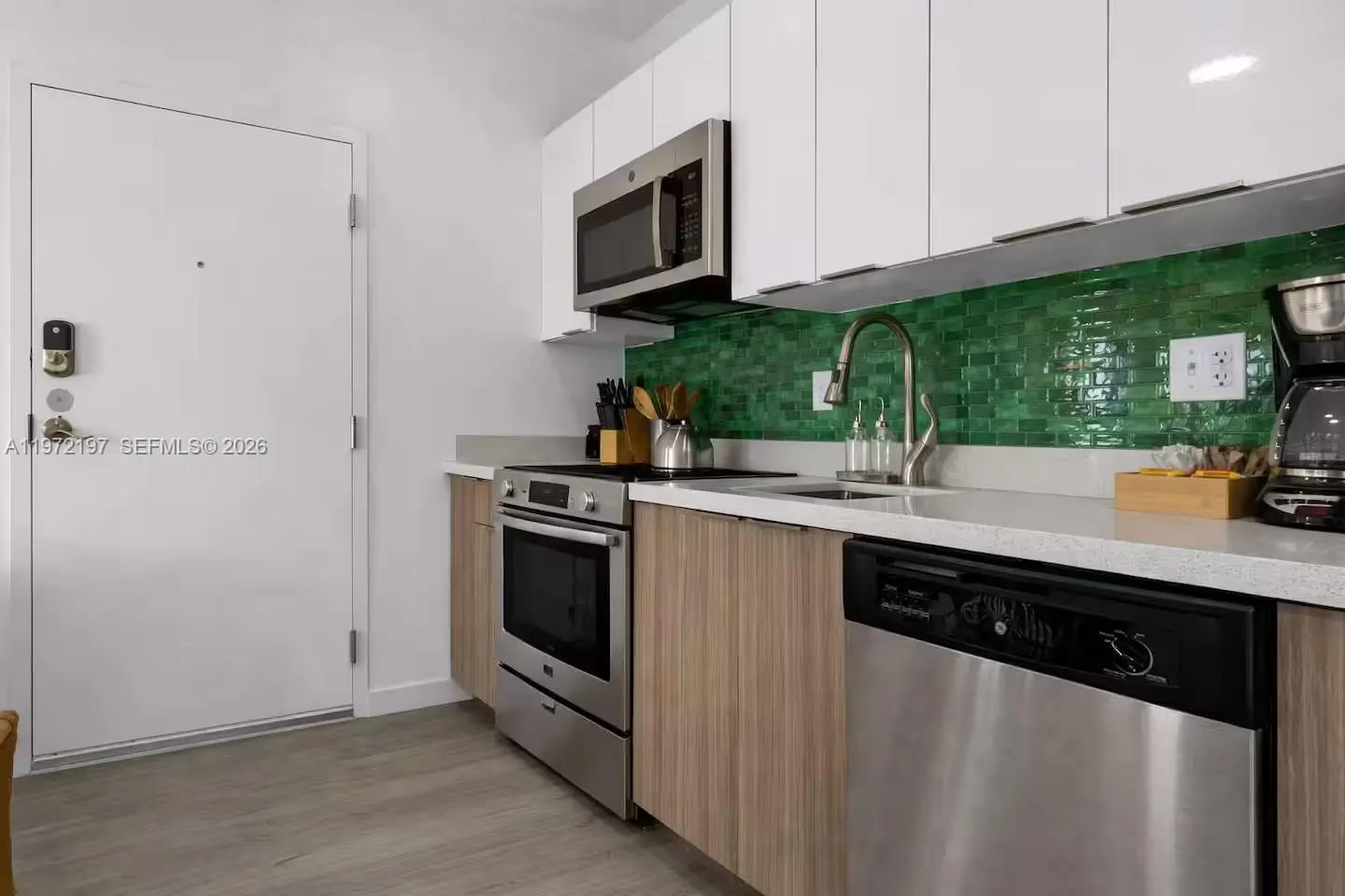Gorgeous, thoughtfully furnished 1-bedroom condo for rent in the heart of Wynwood, a true turnkey opportunity where you can simply arrive with your suitcase and start living. Every detail has been curated for comfort and style. The fully stocked kitchen comes complete with dishware, cutlery, coffee maker, toaster oven, stainless steel appliances, a sleek two-burner cooktop, and dishwasher, perfect for effortless everyday living or entertaining. Inside, you’ll find soaring high ceilings, designer wallpaper accents, and a bright, open layout that feels both modern and inviting. The living area features a pull-out sofa for guests, while the spacious queen sized bedroom offers comfort and privacy. Enjoy the convenience of an in-unit washer and dryer, central A/C and heat, smart locks for seamless entry, generous closet space, and internet included. Pets are welcome, making this a rare find in such a prime location. Step outside and you’re half a block from the world-famous Wynwood Walls, with Miami’s best restaurants, bars, galleries, and shopping at your doorstep. Unwind at the building’s rarely-seen rooftop pool featuring panoramic views of Wynwood, Downtown, and Edgewater. This is elevated city living in one of Miami’s most vibrant neighborhoods. (Pictures of similar comparable unit)