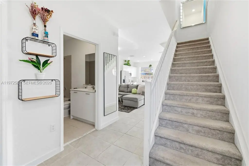 BEAUTIFUL TOWNHOME FEATURING 2 STORY, 3 BEDROOM 3 FULL BATHS LOCATED IN THE SECURED & GATED WESTVIEW COMMUNITY. THIS BANDOL DESIGN FROM LENNAR OFFERING CONTEMPORARY DESIGN WITH HIGH-END FINISHES THROUGHOUT & OPEN CONCEPT LIVING SPACE. PREFERRED CORNER UNIT FEATURES QUARTZ COUNTERTOPS, STAINLESS STEEL APPLIANCES, A LARGE ISLAND, WOOD KITCHEN CABINETS, IMPACT WINDOWS & DOORS ALL WITH ZEBRA BLINDS. THE OPEN-CONCEPT LAYOUT FLOWS INTO A PRIVATE BACKYARD WITH AN UPGRADED PAVED PATIO DECK, IDEAL FOR RELAXING & ENTERTAINING. THE SPACIOUS OWNERS SUITE INCLUDES DOUBLE SINKS & MODERN WALK-IN SHOWER. STYLISH PORCELAIN TILE FINISHES FOR ALL BATHROOMS. ENJOY THE UPSTAIRS LAUNDRY WITH INCLUDED WASHER & DRYER. RESIDENTS ENJOY ACCESS TO A COMMUNITY POOL & 2 ASSIGNED PARKING SPACES. VA ASSUMABLE LOAN