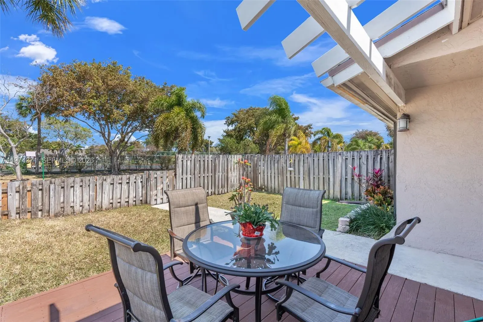 Let your creativity shine with this home. Super clean 2 Bedroom/2 Bathroom ALL AGES, PET FRIENDLY, fully fenced end unit in The Lakes HOA. Pull into your own private driveway that fits up to 3 vehicles and there's plenty of guest parking near by. The front yard has a deck for outdoor dining and if you have a green thumb, this yard is for you! Inside there's 1350 square feet under air per BCPA. Vaulted ceilings make this feel even larger. Tile floors through out. Large eat in kitchen with full size pantry. Enjoy the natural light pouring in through every window. Accordion shutters on windows. Both bedrooms have an en suite bathroom and walk in closets. Bathrooms have updated showers by Bathfitters in 2021. Primary bath has a newer vanity. AC 2022. Washer and dryer have their own space in the enclosed patio. Washer is one year old. Easy access to I95 and the Turnpike. Close to shopping and house of worship. All types of financing available. Low HOA.