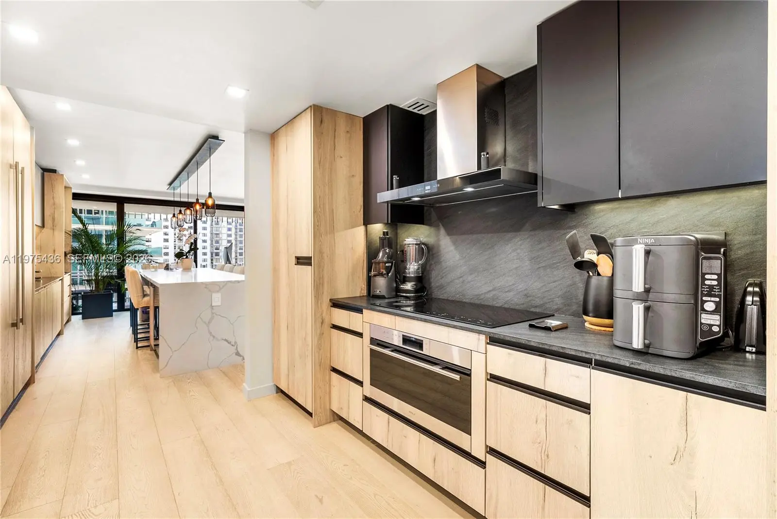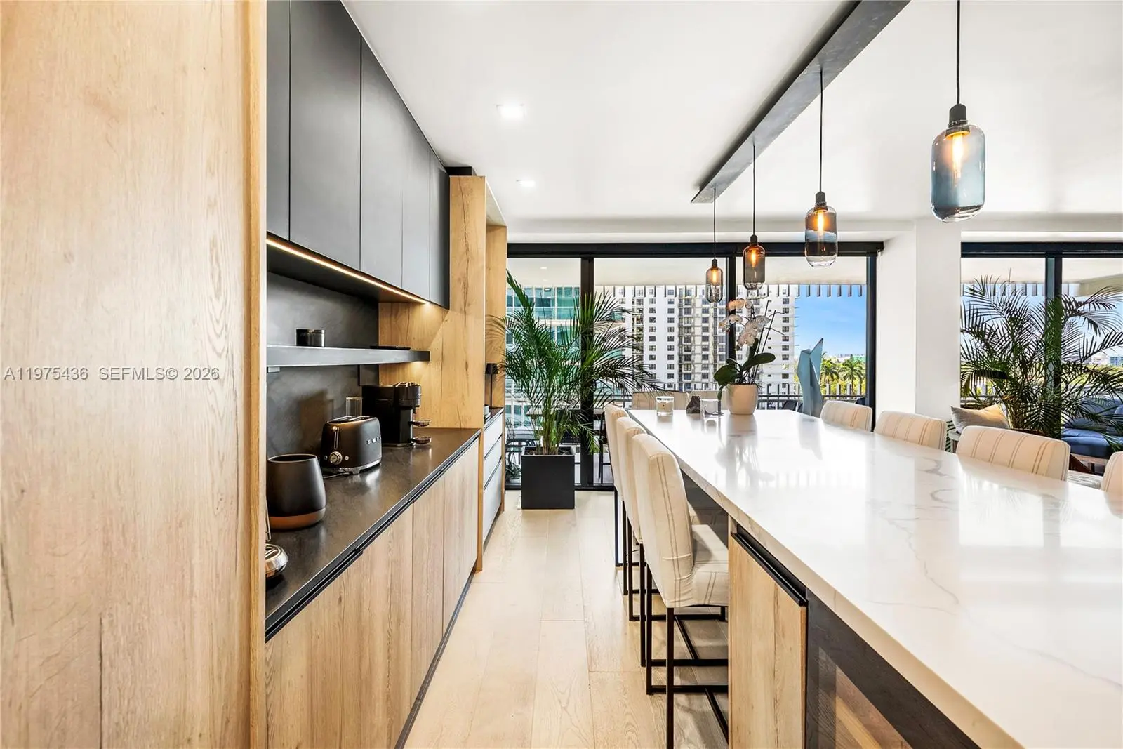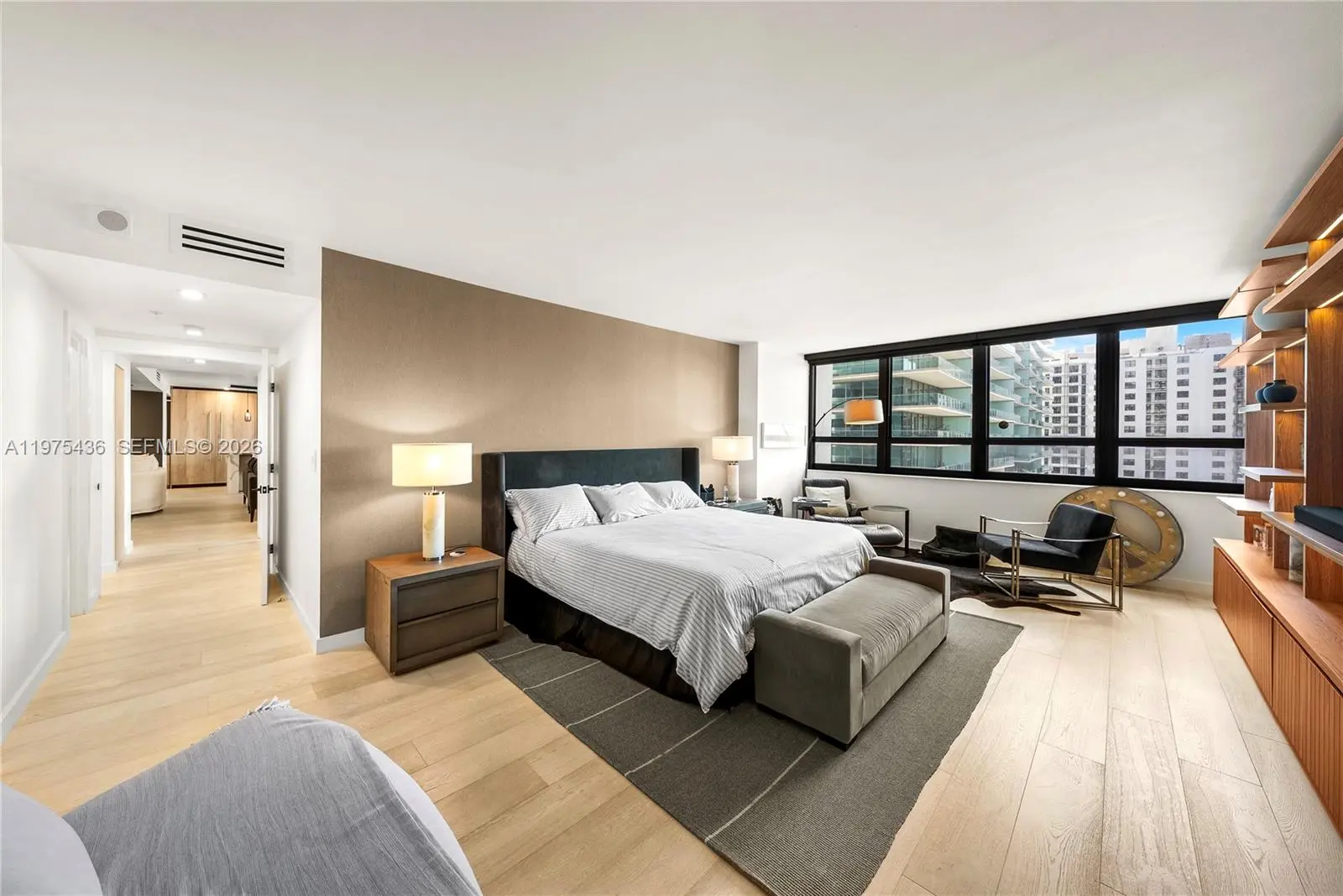 Located at Kenilworth Condominium, one of Bal Harbour’s most prestigious oceanfront residences, this fully renovated 2,060 SF apartment combines generous scale, architectural detailing, and carefully curated finishes. The expansive living area has been designed as three distinct seating environments, creating a flexible layout for entertaining, lounging, and formal living while maintaining strong visual continuity and natural light. Hurricane-impact windows frame open ocean views and bring brightness throughout the interiors. The kitchen has marble and stone counter & serves as an integrated dining bar, complemented by a separate butler’s kitchen that provides additional preparation and storage space. The appliance suite includes a Liebherr panel-ready integrated refrigerator, Wolf induction cooktop, Wolf professional hood, and Wolf M Series built-in oven, paired with a Franke chef-style pull-down faucet. The residence features two bedrooms, two bathrooms, and a powder room, the latter finished with distinctive Gucci wallpaper. Bathrooms are appointed with Axor Starck fixtures from the Philippe Starck collection. Custom millwork defines the interiors, including fully built-in illuminated closets designed for maximum efficiency, wood-clad wall panels, and architectural soffits integrated throughout the residence. A covered terrace measuring approximately 9' x 12' extends the living space outdoors. Unit is in stunning conditions. Very easy to show!
