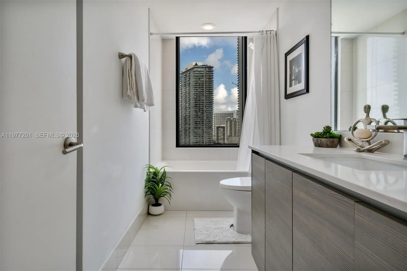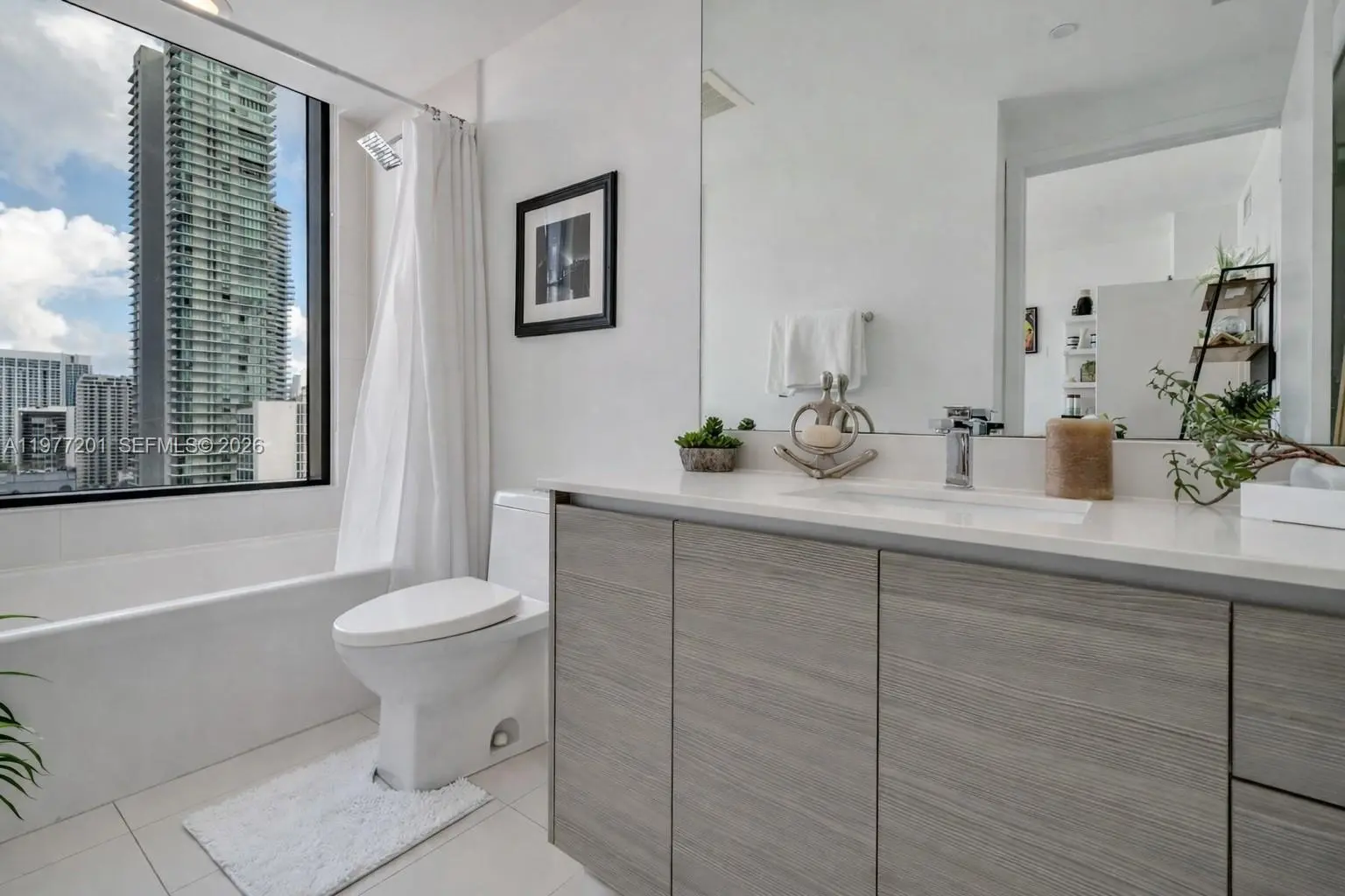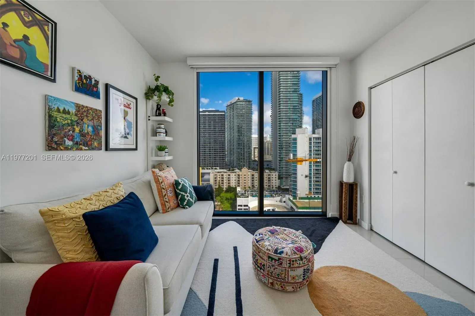 A private elevator opens directly into this bright corner residence featuring 2 bedrooms, 2 bathrooms, and a spacious Den, offering a versatile layout designed for both comfort and style. Floor-to-ceiling glass fills the home with natural light and offers breathtaking water views. The large flow-through floor plan feels open, airy, and serene, striking the perfect balance between luxury and livability. A large modern kitchen with sleek appliances and an oversized countertop with bar seating opens beautifully for everyday living and effortless entertaining. Additional highlights include custom built-out closets as well as two private balconies where you can enjoy both sunrise and sunset skies. Adding to the home’s appeal, both bathrooms feature exterior windows that bring in natural light and beautiful views. This residence offers a sense of privacy and calm in one of Miami’s most desirable waterfront buildings. Icon Bay residents enjoy premium amenities including a Bayfront pool, tennis courts, fitness center, theater room, sauna, spa rooms, 24-hour concierge, security and valet.