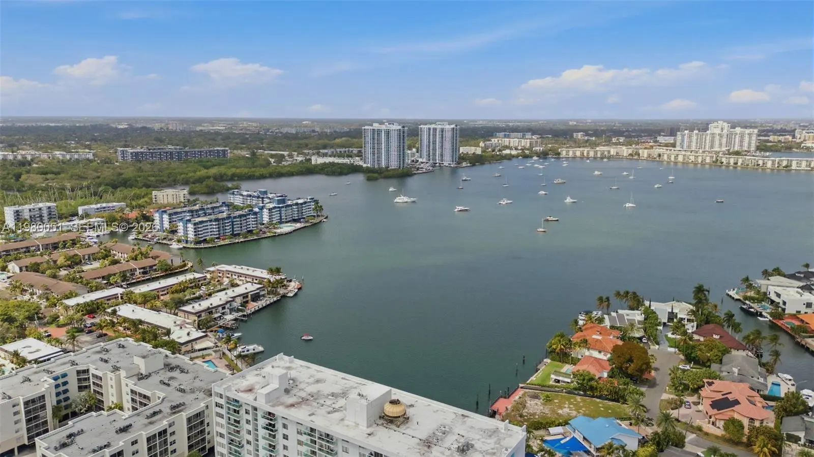 Investor/Family Opportunity: 2BR + Den (currently used as a 3rd bedroom for kid) with Oleta River views in desirable Eastern Shores. No assessments in last 2 years, strong reserves, and building recently passed 50-year recertification. Building completed concrete restoration, fresh paint & new glass balconies. Upgrades include open kitchen with granite & SS appliances, updated baths, built-out closets, new electrical panel, tankless water heater. Oversized primary, accordion shutters, 1 covered parking. Investor opportunity: Owner willing to lease back – immediate income potential. Prime location minutes to beach, Aventura, Bal Harbour, shops & dining. Easy to show.