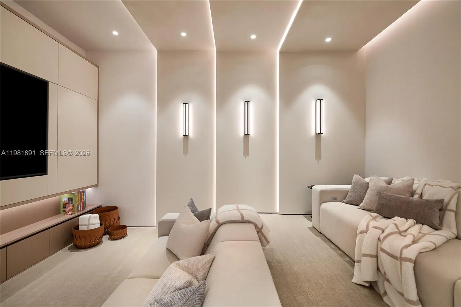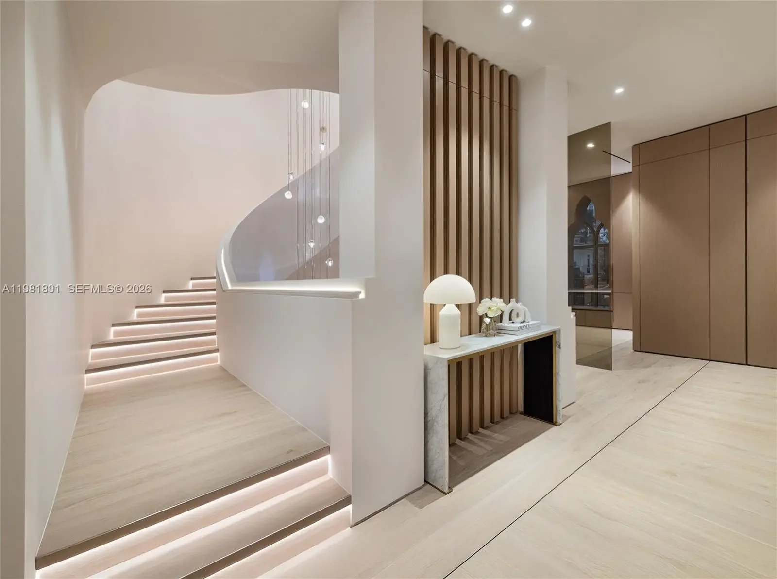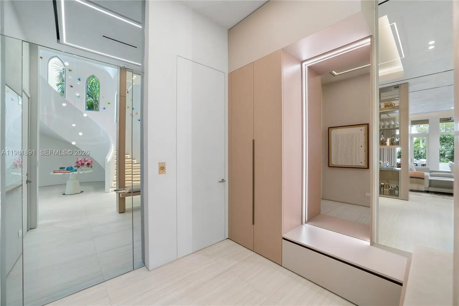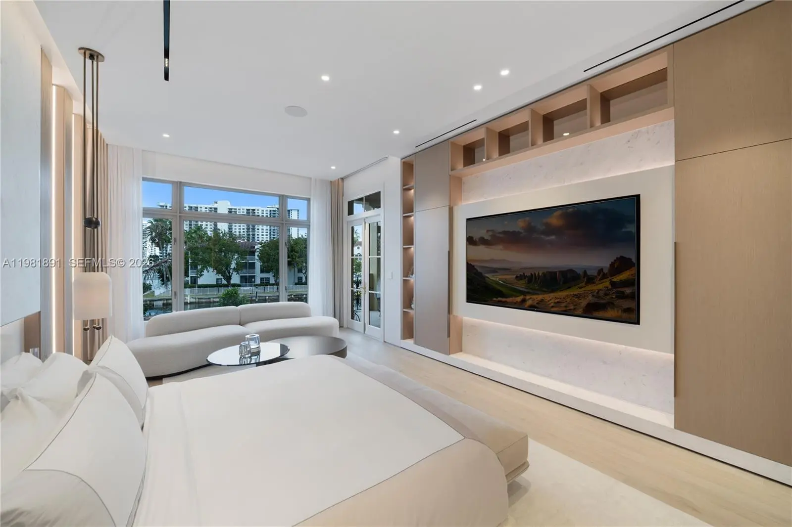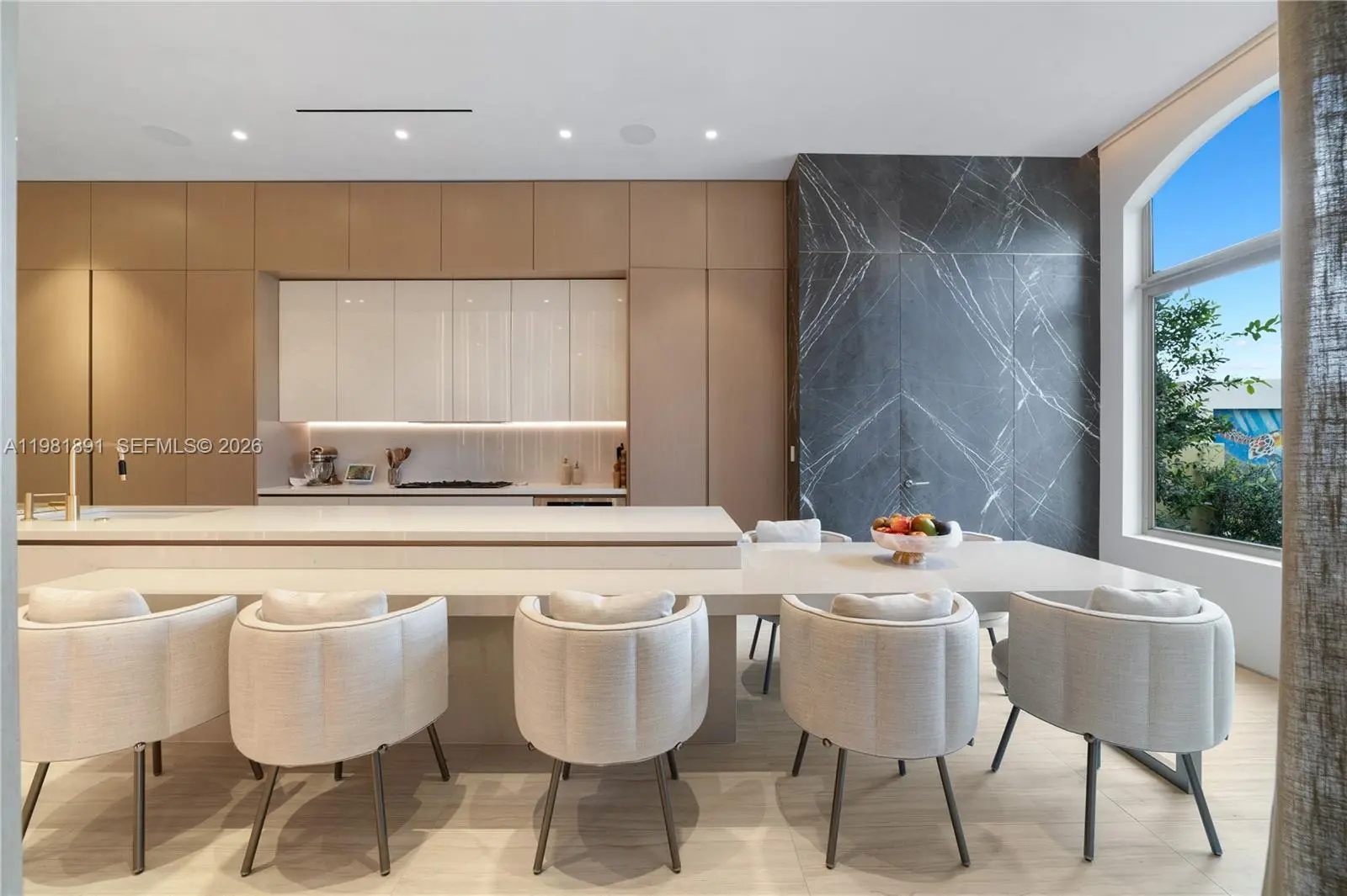 Located in the exclusive gated enclave of Villa Flora in Williams Island, this architectural masterpiece has undergone a meticulous transformation by Troy Dean Homes. With approx. 6,400sf of exquisitely finished interiors, the 6bd, 5ba/3.5ba residence has been thoughtfully redesigned, from bespoke custom millwork and handcrafted fabrications to seamless stone installations and integrated lighting. A multi-level sculptural staircase serves as the focal point upon entry. Warm white oak accents and hand-finished surfaces add depth and texture, creating a cohesive interior that feels both timeless and sophisticated. The chef’s kitchen with top-of-the line appliances and generously appointed living and dining areas on the 1st floor are accessible to the waterfront backyard offering a host of entertaining options. A heated pool/jacuzzi, outdoor kitchen/BBQ and built-in TV provide the ultimate outdoor refuge with marina access. Ascend to the 2nd floor via elevator or illuminated stairs to reach the informal study, two en-suite guest bedrooms and an idyllic Primary Suite complete with two grand walk-in closets, a spa-like bathroom, kitchenette and private patio overlooking the water. Top floor includes expansive family room, two bedrooms, an office/study, fitness room and state-of-the art movie theater. Crestron smart home technology, built-in floor to ceiling wine wall and an air conditioned two-car garage are just some of the key features that make this a one-of-a kind offering.