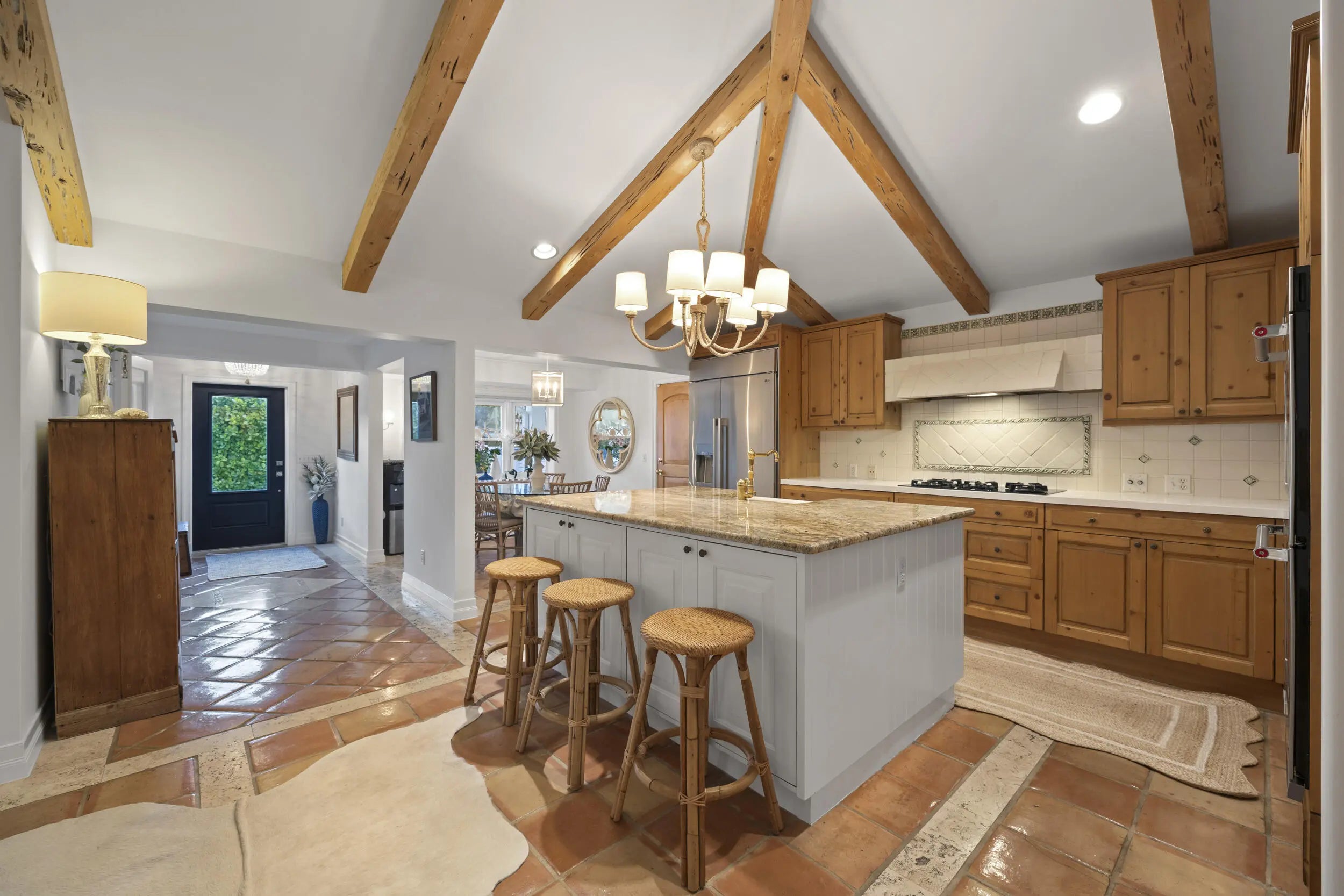 If character, charm and location are high on your priority list, you must visit 122 Lighthouse Drive, located in the desirable enclave of Jupiter Inlet Colony! The 3,800 sq ft home features classic finishes throughout and has been has been lovingly cared for by the current owners. Countless design features include a secluded, spacious upper level master suite, complete with a view of the Jupiter Lighthouse, high ceilings, a jacuzzi tub and separate shower. You'll feel at home upon entry, with high ceilings and authentic pecky cypress beams, an open kitchen concept, and family room with gas burning fireplace. Dining experiences will be elevated in the home's formal dining room, made cozy with pecky cypress ceilings and anchored by a temperature controlled wine room, just a couple steps away For those loving a great outdoor experience, the custom, tropically landscaped yard is here for you. The new in-ground pool features a salt system, water features and gas heater. Artificial turf in the front and back finish the space beautifully and are ready for your outdoor furnishings. The new owner will be pleased with the new roof, generator and updated appliances.