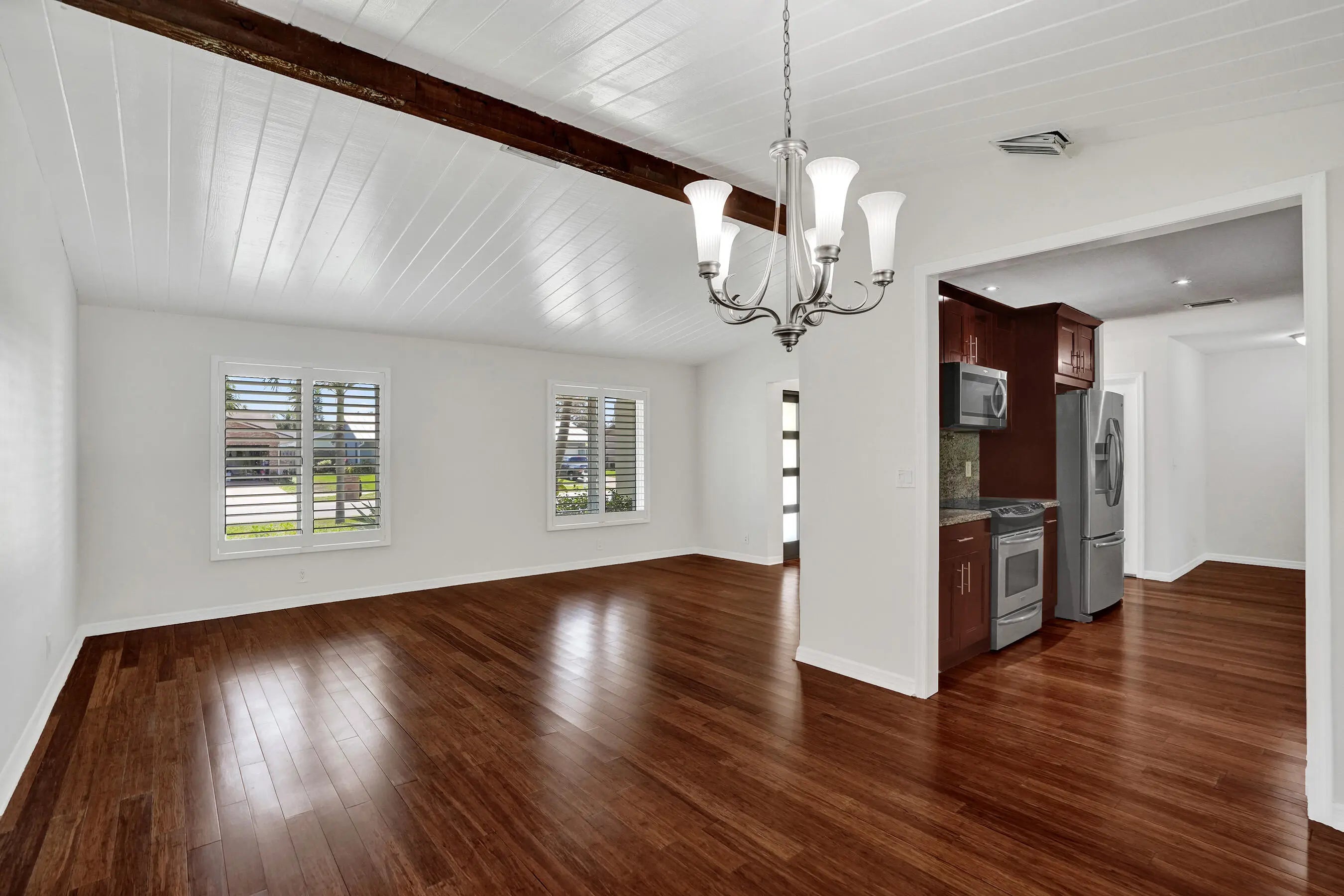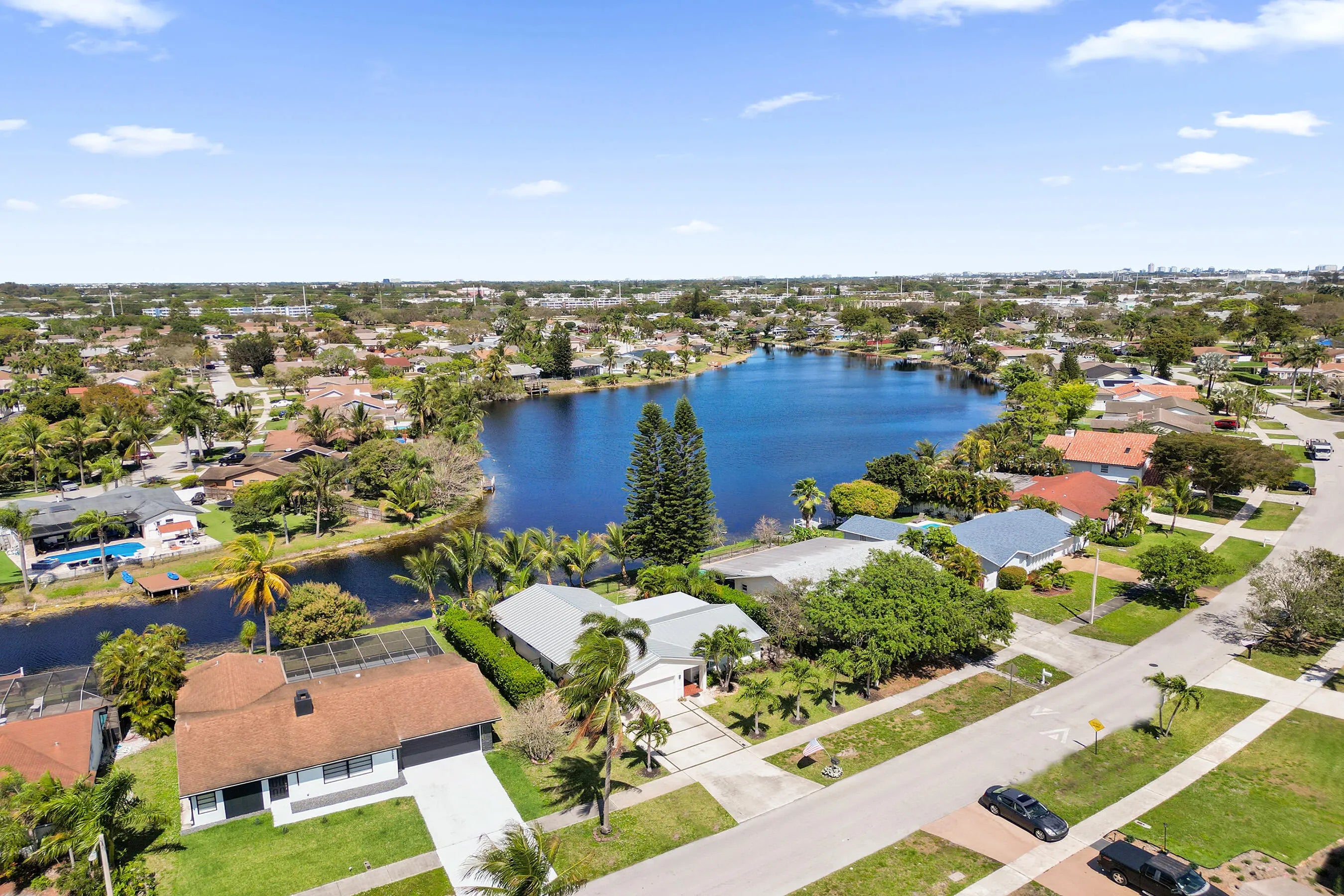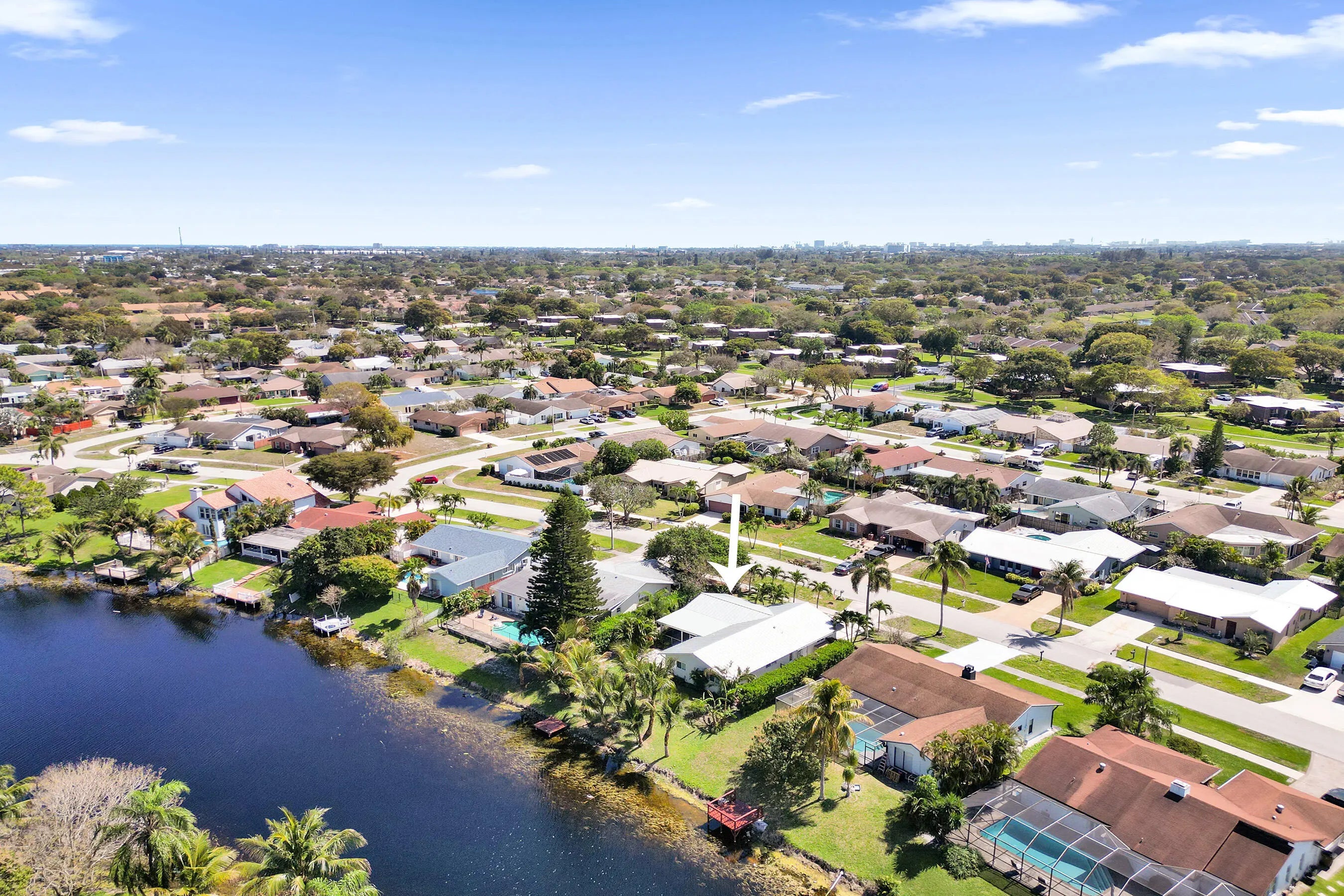 Beautiful lakefront 3BD/2BA home with 2-car garage in Deerfield Beach featuring a new metal roof, impact windows and doors, and custom architectural trim with updated exterior stucco. This well-maintained home offers bamboo wood flooring throughout, spacious bedrooms, and multiple living areas including a formal dining room and two living spaces ideal for entertaining. The updated kitchen features granite countertops, stainless steel appliances, and lake views that extend through the main living areas. The primary suite includes a walk-in closet and designer bathroom with marble floors and spa tub. Enjoy Florida living on the large screened patio overlooking the lake and fenced backyard. No HOA. Conveniently located near highways, shopping, dining, and 10 minutes to the beach. Designer bathrooms with high-end fixtures, plantation shutters throughout, and impact windows and doors for peace of mind. Spacious layout offers two living areas plus a formal dining room, ideal for entertaining. The primary suite features a spa-style bathroom and large walk-in closet. Relax on the enclosed screened patio with beautiful water views and enjoy the large fenced backyard with plenty of room for gatherings. Convenient location close to major highways, shopping, supermarkets, parks, and beaches. Turnkey lakefront property with major upgrades already completed.