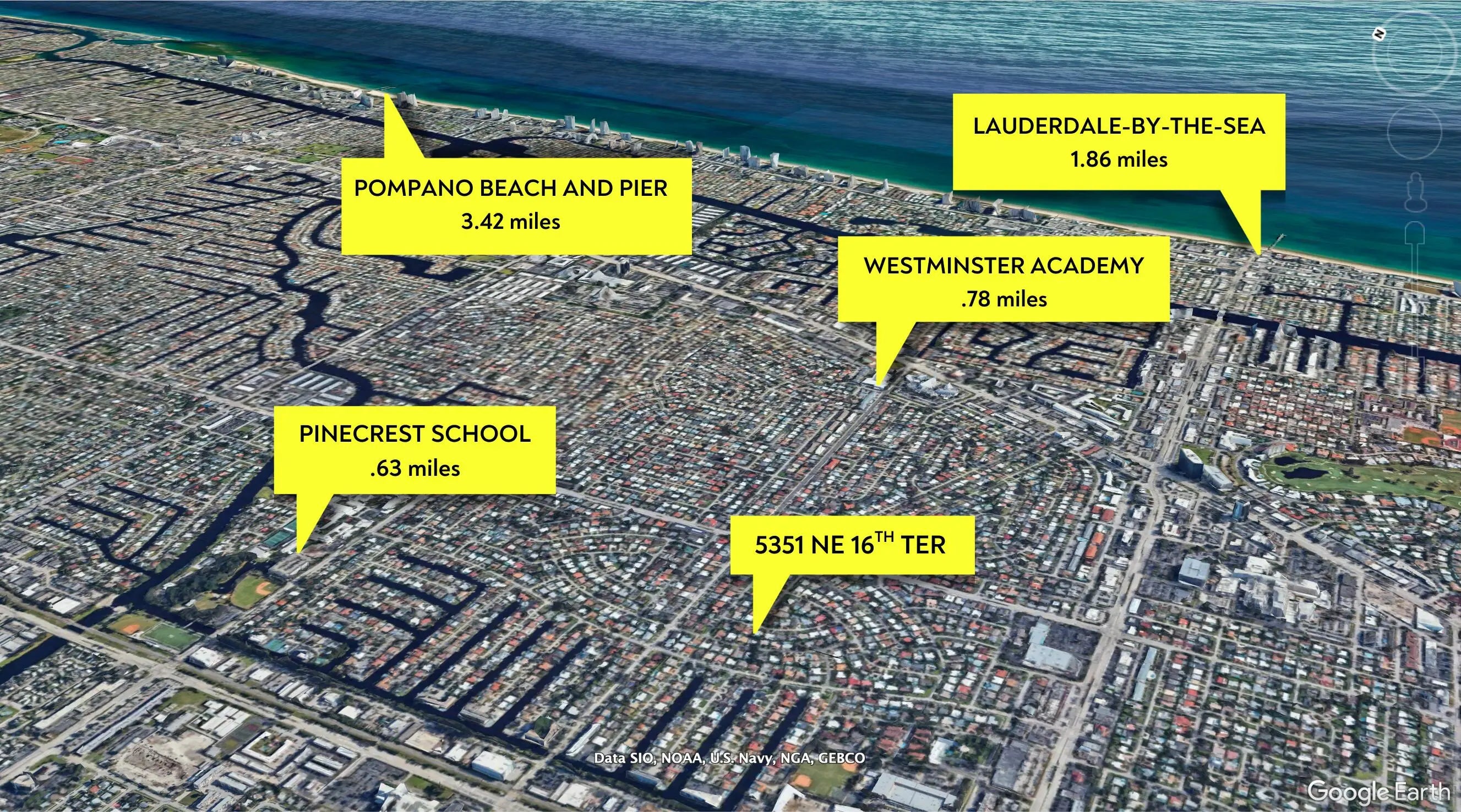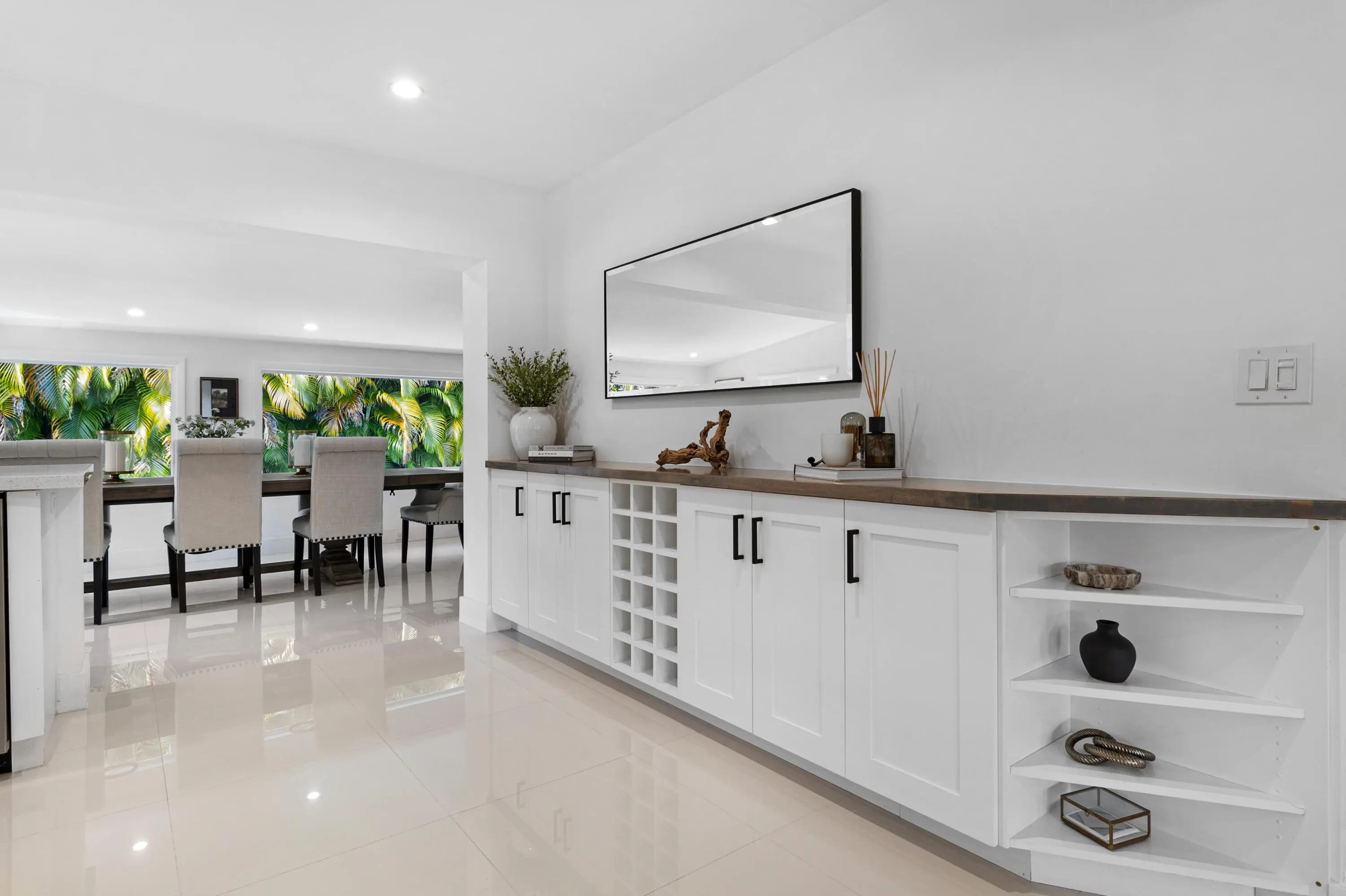 From the moment you walk in, this beautifully renovated Coral Ridge Isles pool home draws your eye through large picture windows to a saltwater pool and lushly landscaped backyard beyond. This bright and spacious 3 bedroom, 2 bathroom home with garage features a desirable split bedroom floor plan, modern updates throughout, and seamless South Florida indoor-outdoor living. The updated kitchen is designed for both everyday living and entertaining with custom cabinetry to the ceiling, stainless steel appliances, and a wall buffet offering additional storage and a built-in 18 bottle wine rack. The open living areas are filled with natural light and equipped with motorized remote-controlled shades in the living room and custom window treatments in the guest bedrooms. The split bedroom layout provides privacy for the primary suite, while both bathrooms have been newly renovated with modern finishes. Additional interior highlights include solid-core custom shaker-style interior doors and a convenient interior laundry room. Step outside to a lushly landscaped backyard retreat featuring a large saltwater pool, covered lanai for outdoor dining, lounge area, and a grassy yard space ideal for families and pets. Full impact windows and doors, including the garage door, offer both peace of mind and energy efficiency. Major upgrades include a new AC system and ductwork installed in 2025. Smart home features include a Google Nest thermostat, Nest smoke and carbon monoxide detectors, Nest doorbell with exterior cameras including a floodlight camera, a B-hyve smart multi zone sprinkler system, and smart garage opener. Highly sought-after Coral Ridge Isles is a quiet, well-established Fort Lauderdale neighborhood known for its minimal through traffic, wide streets, oversized lots, mature landscaping, and excellent walkability/bikeability, perfect for an active South Florida lifestyle. Coral Ridge Isles has the perfect balance of privacy, accessibility, and long-term value with close proximity to Fort Lauderdale Beach and Lauderdale-By-The-Sea, along with convenient access to the Galleria Mall, North Federal Highway, I-95, & Downtown Fort Lauderdale. Just minutes away are top-rated schools, including Pine Crest School, Westminster Academy, Floranada Elementary (A-rated), and Cardinal Gibbons High School. FLL Int'l Airport is 10 miles away, Miami Int'l Airport is 40 minutes away, and Palm Beach Int'l Airport is approximately 45 minutes away.