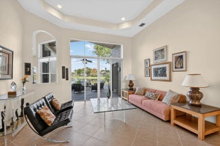 Breathtaking Lake Views! Stunning 4 Bed 2 1/2 Bath, Popular Madrid Model, situated on lush private homesite. Irresistible floor plan,gourmet kitchen enhanced by center island w/ additional counter space & storage adding style, 2 ovens for hosting memorable dinners,exquisite silhouettes adorn several windows,oversized primary bedroom & 2 large outfitted large closets,elegant light fixtures,extended pavers on patio for entertaining, transom windows adding elegant architecture & charm, stunning arches bringing unique character enhancing beauty of this home, 2 newer air conditioners & hot water heater. Maintenance includes: Internet,lawn,exterior paint, SHO/HBO,alarm. Buyer pays 1X cap for $5040 at closing.Buyer/buyers agent to verify all information. Measurements are estimated Valencia Palms is a Non-Equity Community. You will Enjoy the Country Club Lifestyle Without Paying the Equity Membership Fees. Spectacular Multi-Million Dollar Clubhouse you will enjoy. Stunning Lobby as you enter the Clubhouse with very Comfortable Seating. A Great Place to Meet New and Old Friends. Valencia Palms has 6 Har Tru Lit Tennis Courts (Very Active Tennis Community) with a Wonderful Tennis Pro. Also there are Two Bocce Courts. There are two state of the art Pickle ball Courts with stadium seating. Beautiful Grand Ballroom with a Dance Floor, Raised Stage, Drop Down Screens, Separate Dressing Room, Special Lighting & Sound Proofing enhanced by very Comfortable Seating to Enjoy the Great Entertainment. You will Enjoy the Resort Style Swimming Pool, Resistance Pool & Whirlpool Spa, Shaded Cabanas, Men's and Woman's Locker Rooms with Steam Rooms & Showers. Lovely Cafe For Breakfast & Lunch. You can Dine Inside the Cafe or Outside in a Screened Area Overlooking the Beautiful Pool. Waitress Service with a smile. You can Dine Outside under the Umbrellas for your pleasure First Class Fitness Center with an Aerobics Room offering Great Classes at a minimum fee. There are three card rooms, Billiard Room, Conference Room and Arts & Craft Room. There are Many Clubs for you to Join so you can Meet New Friends. There is a Walking, Jogging & Bicycle Path. Valencia Palms is Centrally Located. Very Convenient to Food Shopping, West Palm Beach Airport, Florida Turnpike, Boca Raton Town Center Mall, and many well known Boutiques and Fabulous Restaurants. Also Convenient to Doctors, Hospitals. Not Far From the BEACH, Movie Theaters, Bowling Alley, and Downtown Delray where you have a choice of Fabulous Restaurants and Shopping. Look forward to meeting you and showing this beautiful home to you