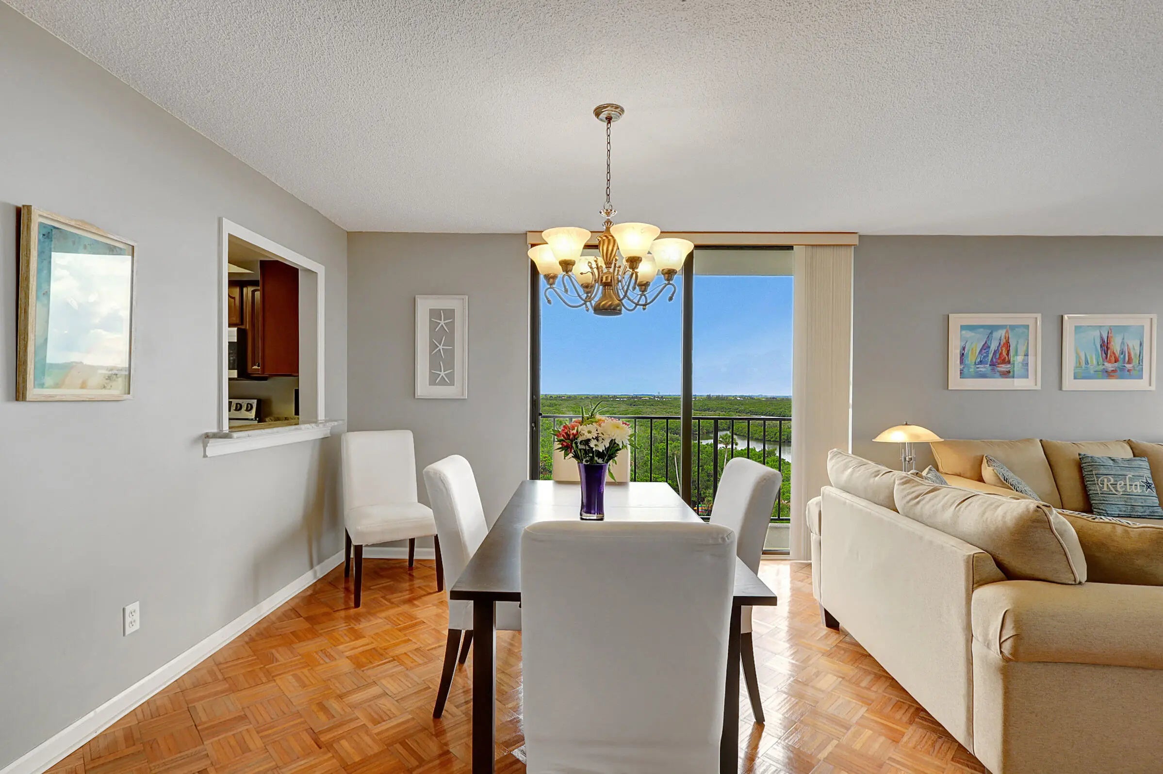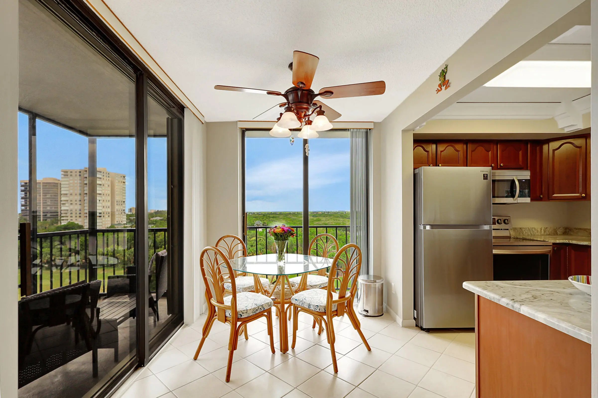 Perched on the 7th floor, this spectacular 2BR/2BA end-unit delivers 1,397 sq ft of coastal living with true sunrise and sunset views. A rare wraparound balcony captures sweeping vistas of both the Atlantic Ocean and the majestic Intracoastal Waterway. Inside, a spacious layout features a true eat-in kitchen, elegant dining area, wet bar, and abundant natural light. This residence offers a front-row seat to the best of Hutchinson Island living. Resort-style amenities include heated pool, tennis, pickleball, basketball, bocce, shuffleboard, clubhouse, and his-and-hers saunas. Minutes to dining, shopping, museums, theater, and the airport.