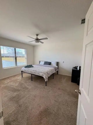 This single-story lakefront home offers an open-concept layout with 3 bedrooms, 2 bathrooms, and a 2-car garage. The spacious design features an oversized living room, a large kitchen with abundant cabinet and counter space, a huge pantry, and a counter-height island perfect for casual dining or entertaining. A separate laundry room adds convenience and functionality. Enjoy peaceful water views right from your backyard. Available 06/01/26. Electricity is included in the rent