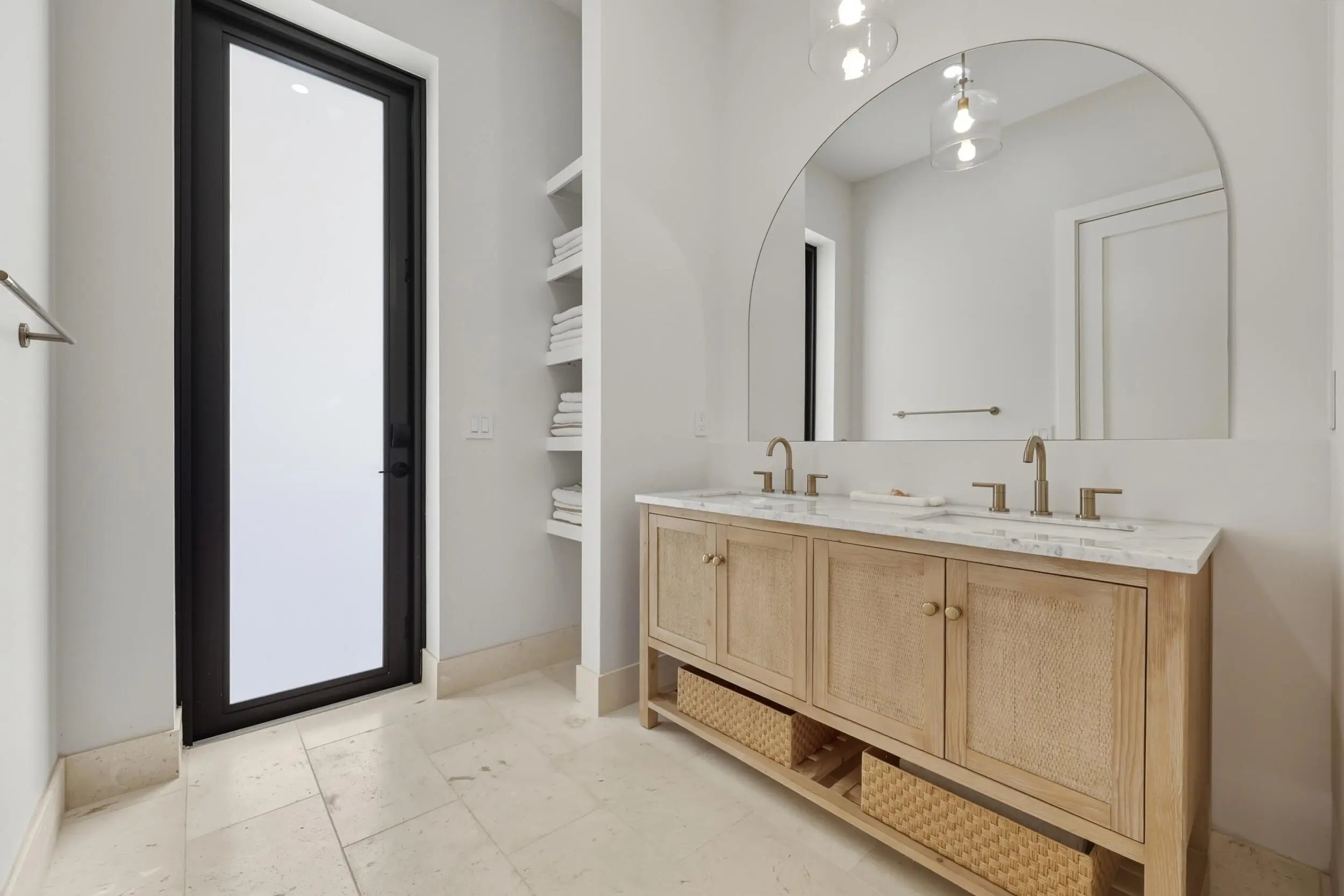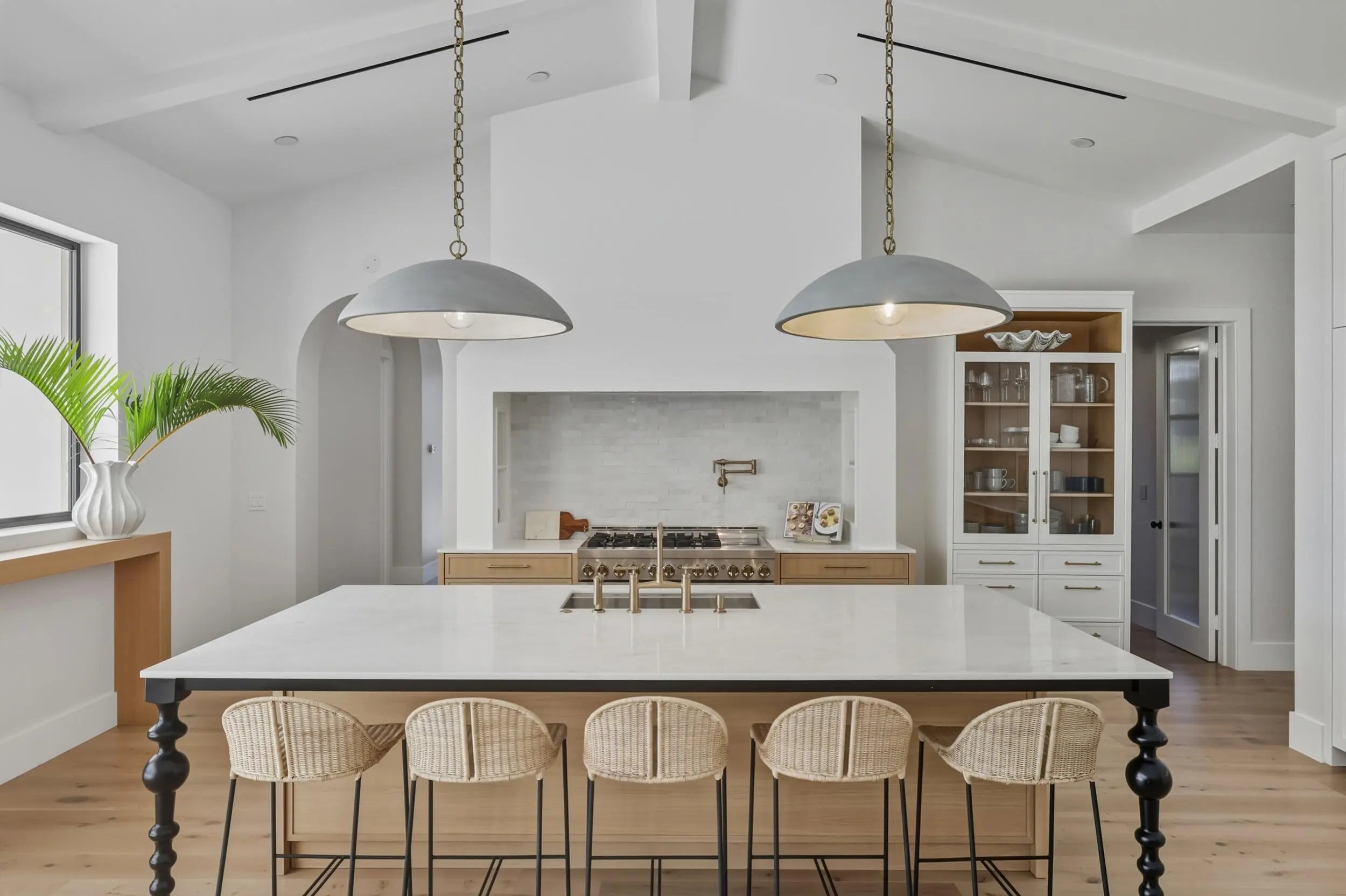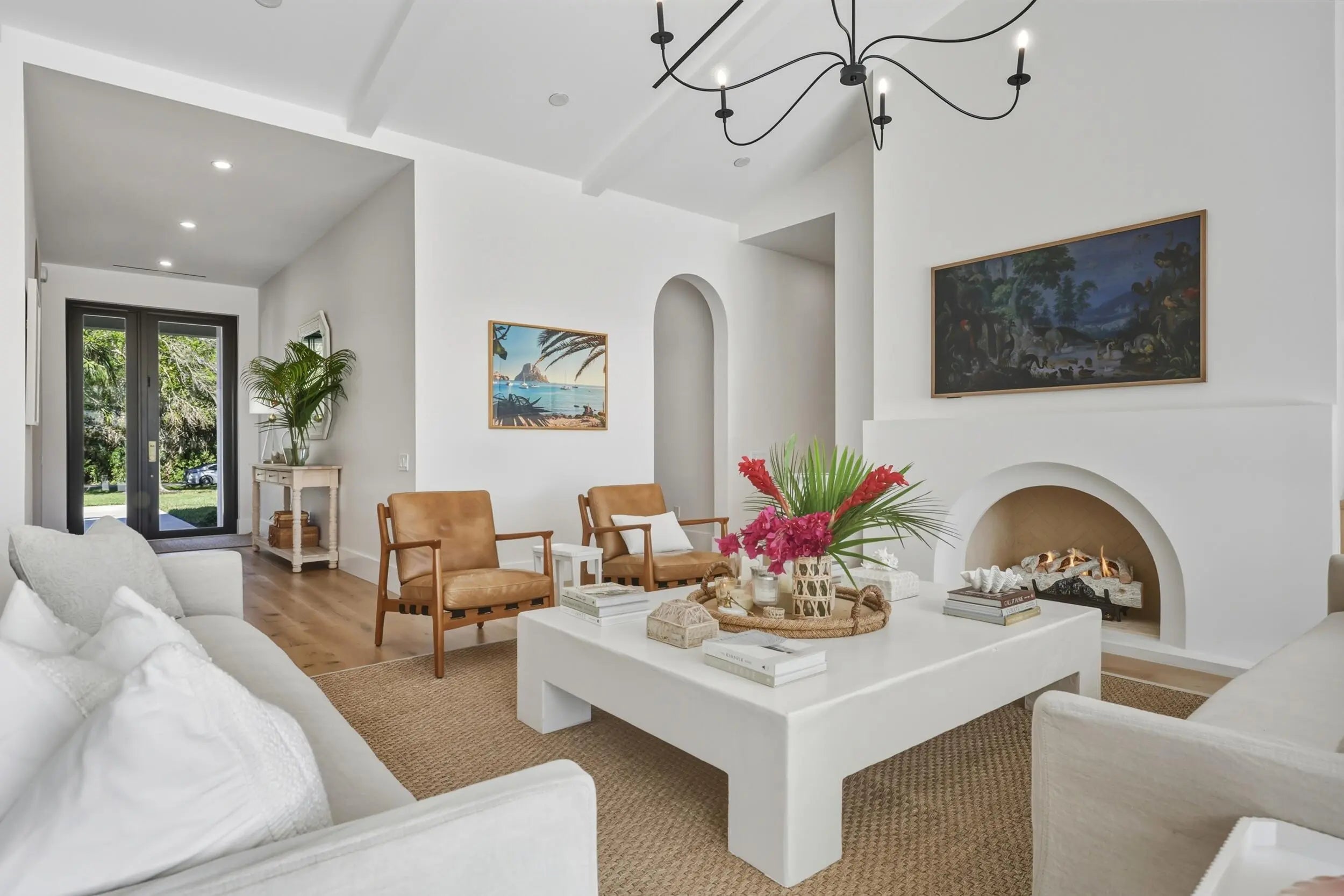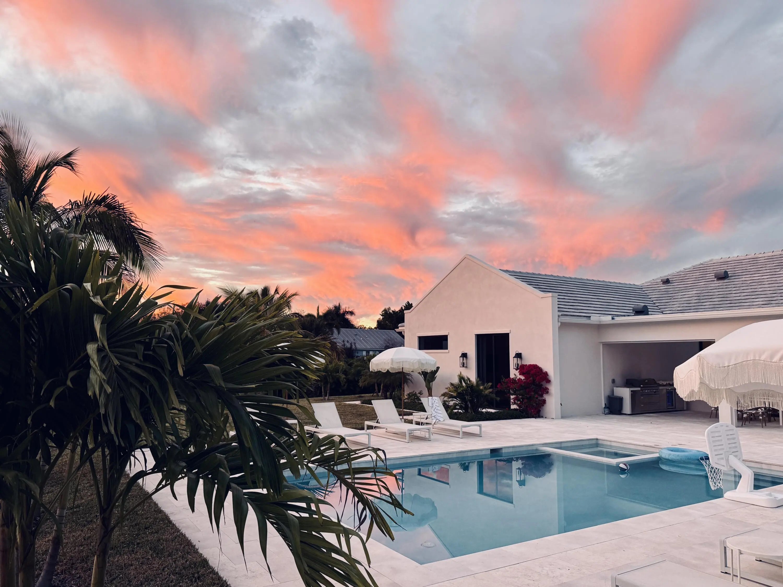 Nestled on 1.25 acres on one of the best streets in Jupiter Farms, this expansive 2024 built custom home will impress the most discerning buyer. Prime location easy access to I-95, FL Turnpike & amenities of Jupiter! Elegant single-story living: ~3,989 sq ft, 4 beds + playroom/office, 4 baths (3 full & 1 half), mudroom, laundry room, huge walk-in pantry & tons of storage. Premium finishes: white oak hardwood floors, natural stone, 10.5-ft ceilings, 10-ft impact sliders/doors flooding space w/ light & seamless indoor-outdoor flow. Warm modern vibe w/ soft arches, custom mirrors, built-ins, vaulted ceilings, fans & arched plaster isokern gas fireplace w/ herringbone detail. Showstopper chef's kitchen: custom cabinetry, oversized hood, high-end paneled appliances, appliance garage w/ antiqued glass doors & access via fluted glass door to stunning panty...great entertaining flow. The kitchen connects to the formal dining room with seating for 10+ and wine storage built-ins, oversized window with lush garden views & arched access to foyer. Lux primary suite w/ arched entry, 2 walk-in closets, access to backyard & primary bathroom with honed marble, custom white oak double vanity with plaster sconces & Brizo plumbing fixtures. Architectural arched plaster accent wall cocoons the soaker tup for a spa-like experience while separating the walk-in shower & water closer. All additional beds w/ walk-in closets, spa baths & thoughtful touches. Embrace Florida Resort-style living: covered 574 sq ft loggia w/ retractable bug screens, salt-water heated pool & spa , lush landscape with coconut and xmas palms & serene setting for relaxation/gatherings. Additional features include an oversized 3 car garage, energy efficient impact windows & doors, two-zone A/C, whole-house reverse osmosis system, full property irrigation, 500-gallon propane tank, backup generator ready, Ring security system, CAT4 throughout. Access Riverbend Park down the street & enjoy access to trails, kayaking & nature!