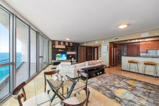 Imagine renting on the 31st floor of the Ocean Palms, in this custom designed furnished unit ,where you have some ocean views for everyday living , stunning custom built ins ,high end rugs, add sophistication and warmth. ready for you starting May 12th 2026 please note the pool will be closed from June 1st 2026 to December 1st 2026. Presently the balcony is closed for construction on the building. This unit is priced perfectly if you want to live in a luxury building, have amenities-club room, ocean with chair and towel service, 2 story exercise room, bar b ques, valet and more. Priced accordingly, close to Aventura Mall, shopping, Fort Lauderdale airport, Miami ,Ft. Lauderdale Gulfstream, Hardrock &more.