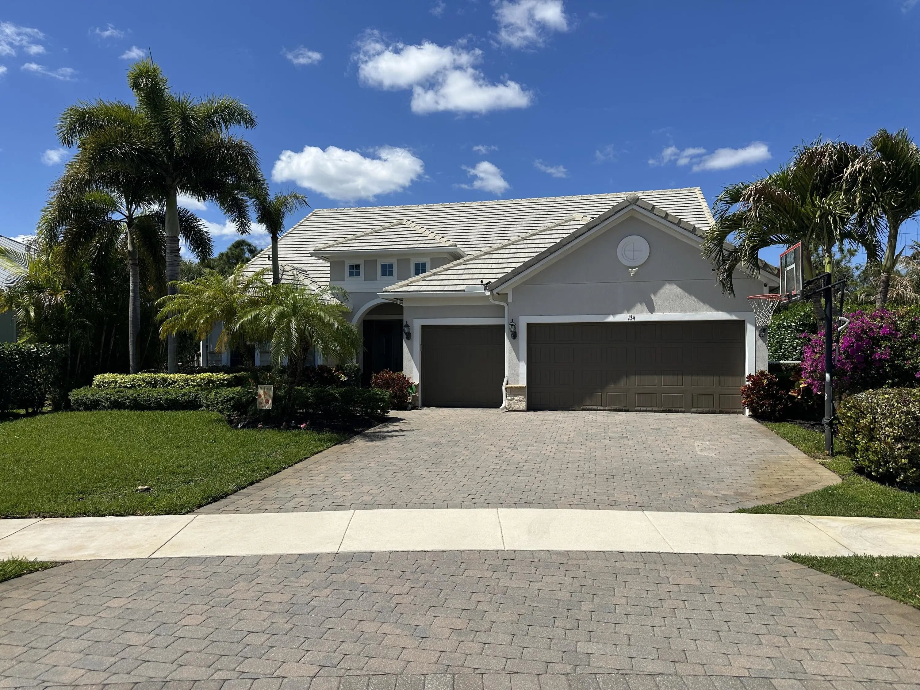 This unique and highly sought-after Pinnacle + Loft floor plan is now available in the sought-after 31-home boutique community of Shores Pointe, nestled in the heart of Jupiter. This spacious two-story, split-bedroom residence offers 4 bedrooms, 4 baths, a den/flex room, a large upstairs loft living area, and an extended 3-car garage. Built in 2017 with exceptional attention to detail, this beautifully upgraded home showcases quality and design from the moment you enter through the custom impact glass front door. Designer finishes include porcelain wood-look tile flooring, solid core doors, stylish lighting fixtures, crown molding, plantation shutters, tray ceilings, and refined touches throughout. Constructed with CBS and designed for comfort and peace of mind, the home features impact glass windows, natural gas, a 24 kW whole-house generator, and newer A/C units (2024 & 2023). The open-concept great room serves as the heart of the home, highlighted by volume ceilings and serene views of the palm tree-lined backyard. The gourmet kitchen is a true showpiece, featuring a large quartz center island with pendant lighting, white shaker cabinetry, tile backsplash, a 5-burner gas range, a spacious walk-in pantry with custom solid shelving, and a dedicated coffee/wine bar—ideal for both everyday living and entertaining. The expansive primary suite offers a tranquil retreat with a tray ceiling, sitting area, and a massive custom walk-in closet. The spa-inspired primary bath includes porcelain tile flooring, quartz countertops, elegant vanity lighting and a frameless glass walk-in shower. The versatile downstairs den/flex room can easily serve as an office, media room, home gym, or convertible 5th bedroom. Two guest bedrooms are also located on the main level. Upstairs, you'll find an impressive guest suite with extensive built-in closet storage, along with a generously sized loft providing additional living space for relaxation or entertainment. Step outside through impact glass sliders to your private backyard oasis. Enjoy beautiful sunset views from the screen-enclosed covered patio, with an oversized lot offering ample room for a future pool. Mature palm trees line the perimeter, providing exceptional privacy with no rear neighbors. Additional features include smart home technology such as a doorbell camera and Vitex security system. Shores Pointe is zoned for A-rated schools and offers a private playground/park along with walking path access to the Southwest Fork of the Loxahatchee River—perfect for launching a paddleboard or kayak. Ideally located near I-95, the Florida Turnpike, beaches, shopping, dining, parks, and nature preserves—this is Florida living at its finest!