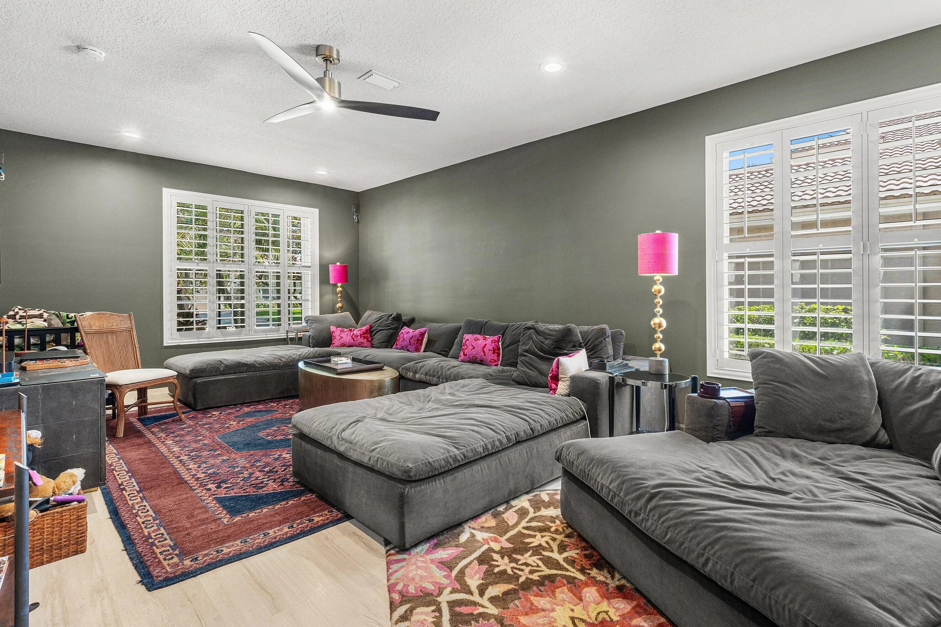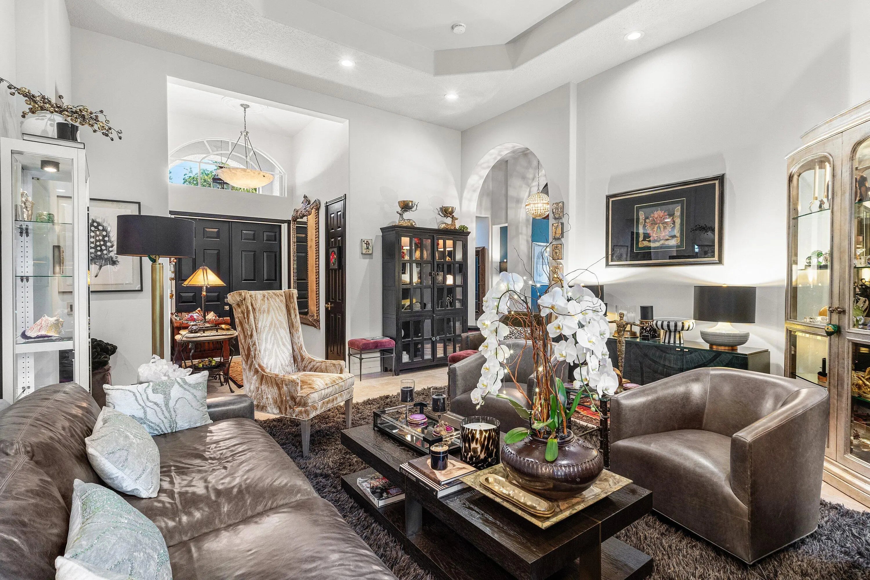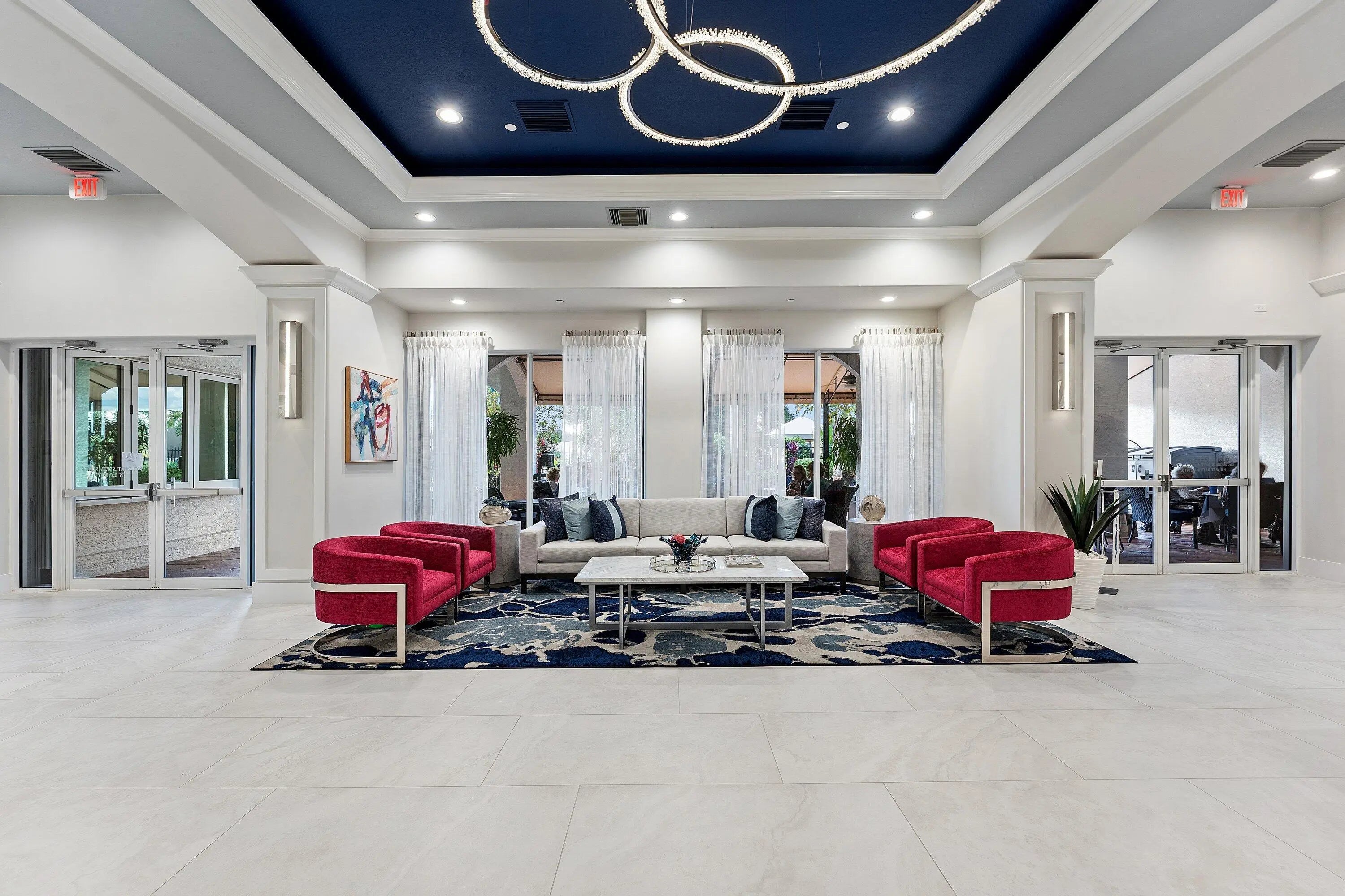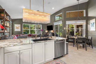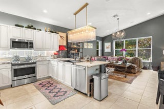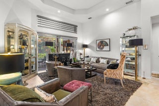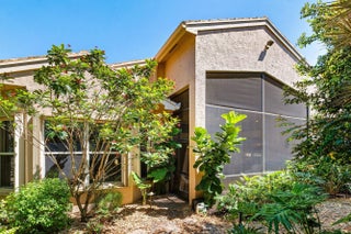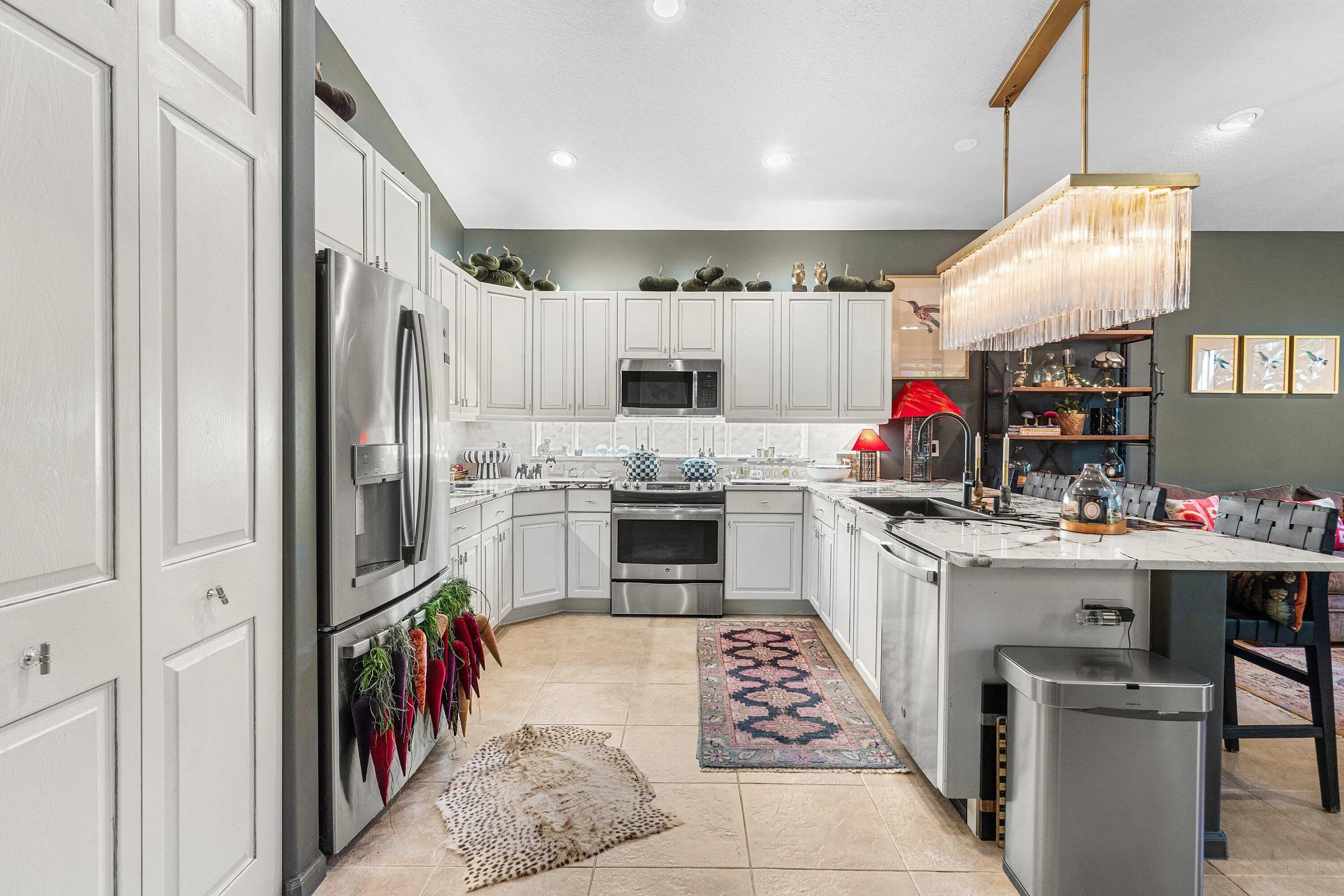 Beautifully renovated Madrid model with a flexible, open layout. The second and third bedrooms were combined to create a spacious den or optional second primary suite. The updated kitchen showcases quartzite counters, marble backsplash, Kohler sink with Graff faucet, stainless steel appliances, custom lighting, and breakfast bar seating. Soaring cathedral ceilings, transom windows, surround sound, and sliders open to a screened lanai with tranquil garden views. The primary suite features bamboo flooring, tray ceiling, fitted closets, and a spa-style bath with frameless glass shower. Located in Valencia Falls, a vibrant 55+ community with resort-style amenities.