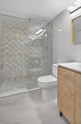 This completely renovated 2-bedroom, 1.5-bath condo on the 2nd floor has been transformed with over $80K in upgrades, blending modern elegance with cozy charm. The stylish interior boasts brand-new appliances, sleek marble countertops, and immaculate bathrooms that radiate sophistication. Enjoy relaxing on the spacious private screened-in balcony, offering tranquil garden views. Ideally located close to the beach, I-95, and within walking distance of the Upminster community pool, house of worship, and numerous other amenities. The community offers a clubhouse with a state-of-the-art fitness center, movie theater, indoor pool, tennis, pickleball, saunas and shuffleboard courts, plus a free shuttle service to malls and grocery stores. This unit is vacant, easy to show. 55+ community.