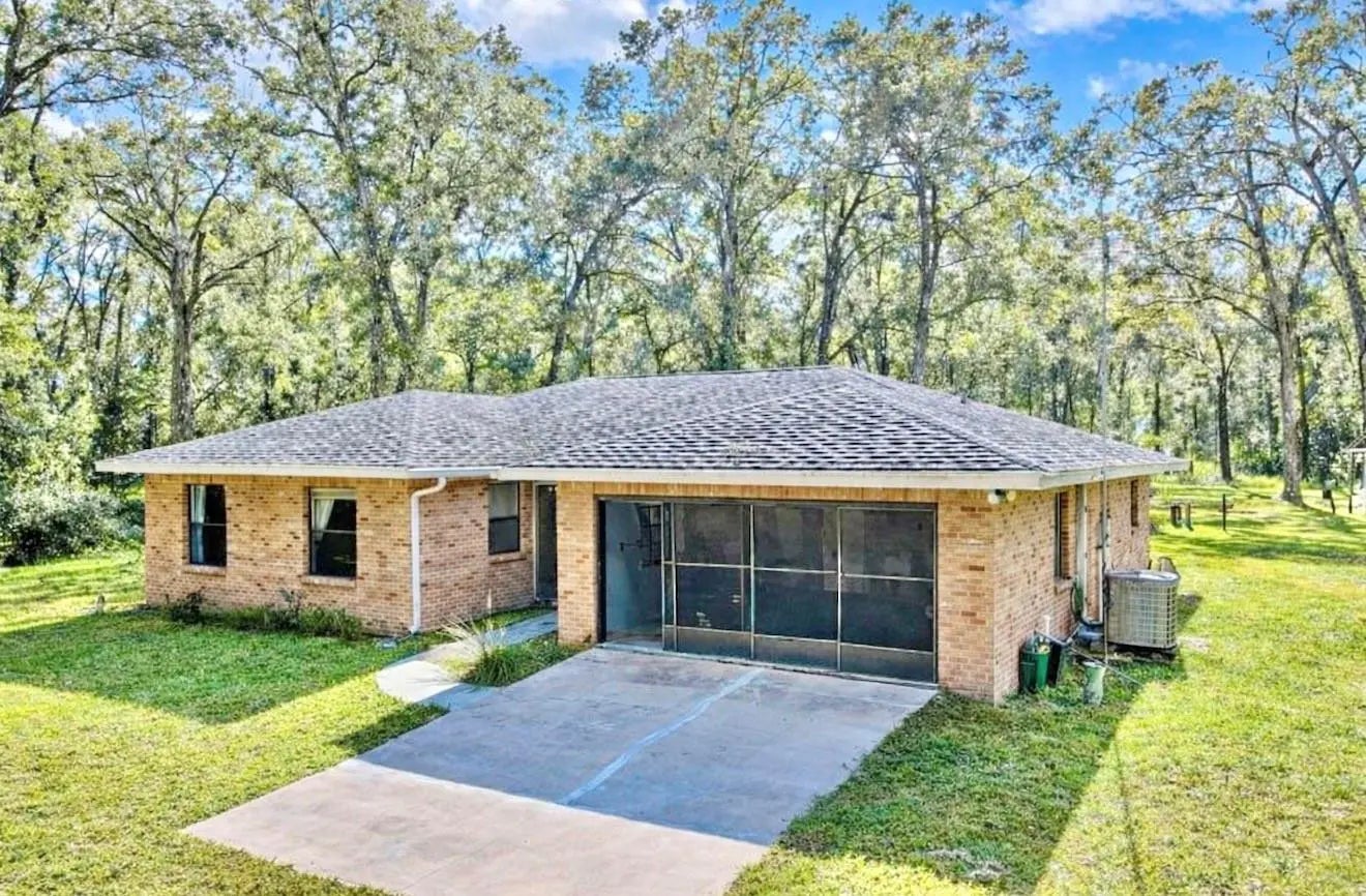 Brand New Roof 02/2026, New Electrical Panels inside and outside 2026. New Water Heater 2026. Welcome home to this charming three-bedroom, two-bathroom retreat nestled on 4.9 beautiful, tree-lined acres. This fully fenced property offers peace, privacy, and plenty of room to roam. Enjoy tranquil mornings by the pond or relaxing evenings on the screened-in patio, surrounded by the sounds of nature and the occasional deer passing through. Inside, you'll find a warm and inviting living room with a fireplace, a kitchen featuring stainless steel appliances, and plenty of space for comfortable living. The property has a two-car garage, a detached workshop, a storage shed, and a greenhouse. Perfect for hobbies, projects, or gardening enthusiasts. A short drive to Disney, Gainesville and Tampa.