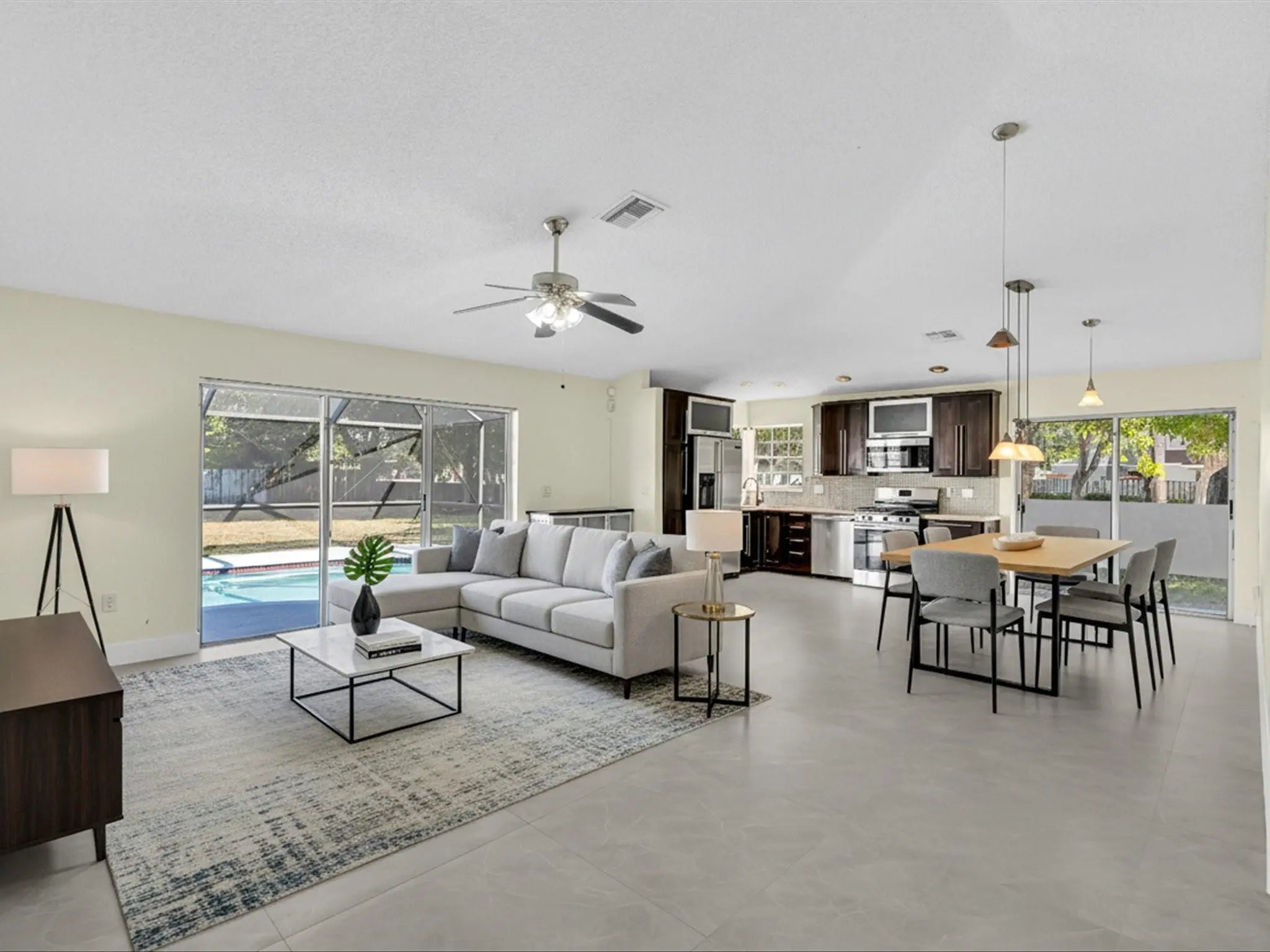 A fantastic rental opportunity! This well-maintained single-story home (3 beds, 2 baths, 1,452 sq. ft.) is ideally nestled on a private, low-traffic street with a turnaround in the sought-after Sawgrass Plantation neighborhood. The home features an open-concept layout and a fully equipped kitchen with all-new appliances. The true highlight is the existing, screened-in backyard oasis with a private pool and stunning lake views, providing a perfect spot for relaxation. Location is unbeatable, offering premium access to major highways (I-595, I-75, Sawgrass Expressway) and is just minutes from the Sawgrass Mills Mall and the Amerant Bank Arena. Comfort and convenience await!
