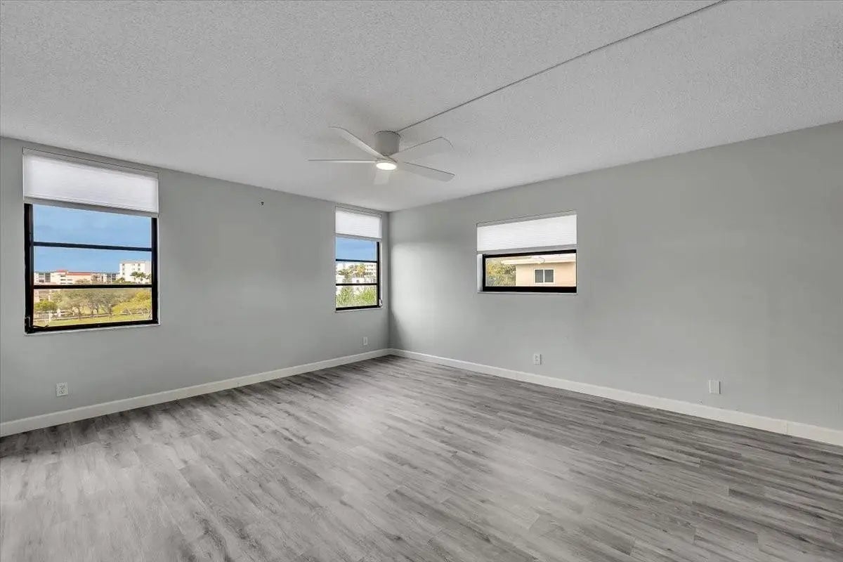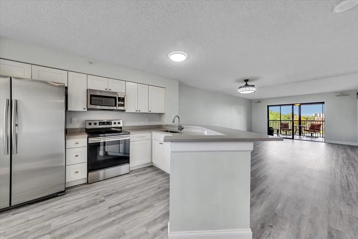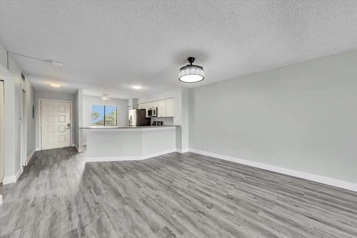 Enjoy a modern, casual ambiance in this light and bright 2 BR/2 BA corner unit boasting new laminate flooring, a beautiful newly renovated kitchen. Spacious living area opens to a screened patio with breathtaking lakefront and pool views. Partial impact windows, storage unit next to unit, assigned and guest parking, and allows one pet up to 20 bbs. Located in the much sough after 'Le Club' section with a wealth of amenities: waterfront access, sparkling pool, tennis courts, gym, basketball & tennis courts, shuffleboard, media room, billiards, clubhouse, BBQ area, and more. Very near "The Pomp" projected for 2027 with new shops, dining, high end condo units and daily entertainment. Top Golf and Harrah's casino already open for business. Centrally located between I95 and Florida Turnpike.