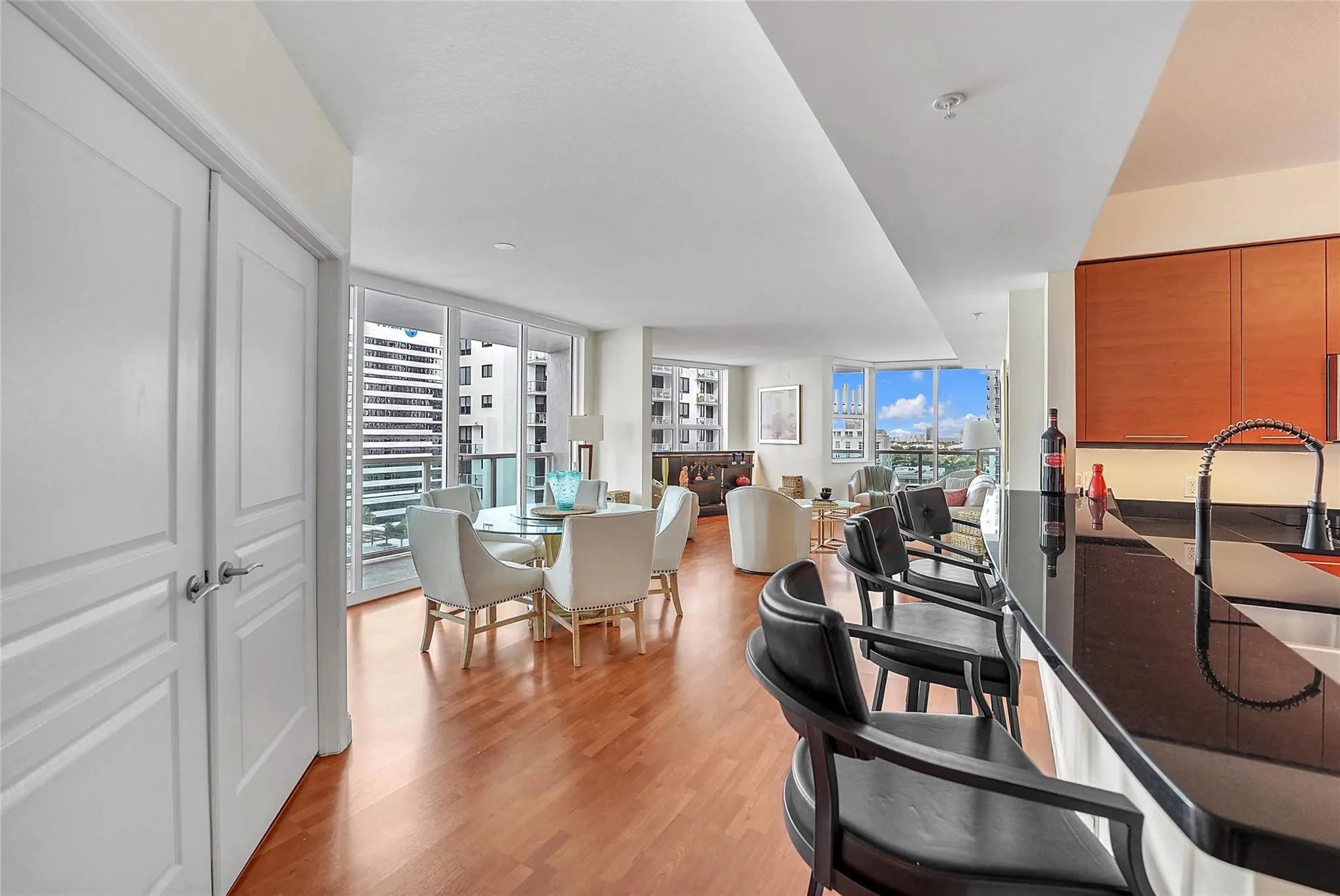 Seller financing available 5.5%. Spectacular high-floor corner 3/2 residence offers downtown, city, and ocean views; east, west, and north exposures. 3 terraces, 2 parking spaces and 1 giant rare storage room. The layout flows beautifully from east to west. Open kitchen is appointed with granite countertops, stainless steel appliances, European-style cabinetry, pantry, and a dedicated laundry room. Primary suite features marble finishes, Jacuzzi-style soaking tub, and a separate shower. Both the unit and building are meticulously maintained. Outstanding rooftop amenities including a infinity-edge pool, spa, sky terrace, state-of-the-art fitness center, sauna, theater, lounge/club room.
