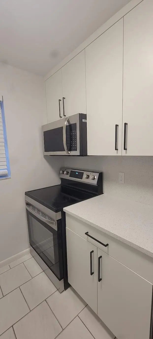 Beautiful 2 bedrooms and 2 full bathrooms, apartment. This unit features a brand new kitchen with customized cabinetry with so much storage space, quartz countertops and quartz backsplash, brand new refrigerator, dishwasher, microwave, disposal, and electric stove. Bathrooms have stand up showers, ceramic tile throughout the entire apartment. Brand new impact windows. There is also plenty of natural light. It also has an assigned parking space plus plenty of guest parking. It also includes a storage space. This property is walking distance from Mizner Square, restaurants, few minutes from the beach, Florida Atlantic University, and so much more. Move in with just first month rent and security deposit!