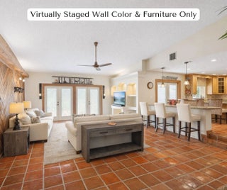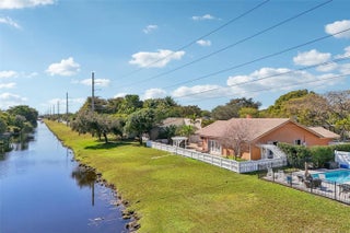 Seller offering up to $10,000 towards Buyer's closing costs, with an acceptable offer. Live in sought-after Plantation Hills—NO HOA! This 3BR/2BA home sits on a 10,000 SF canal-front lot with exceptional backyard privacy. Enjoy a lagoon-style pool with a custom rock waterfall, expansive flagstone patio, and mature trees with canal-fed sprinklers. Double 6-ft gates provide side parking for RV, boat, or extra vehicles. Most windows have accordion shutters. The large 2-car garage has a ladder that pulls down for attic storage. Interior highlights include vaulted ceilings, cedar accent walls, a copper-clad dual-sided wood-burning fireplace, a front garden window, a kitchen garden window, a large laundry room, and a pantry. Newer A/C, washer, dryer & refrigerator. Not in a flood zone!