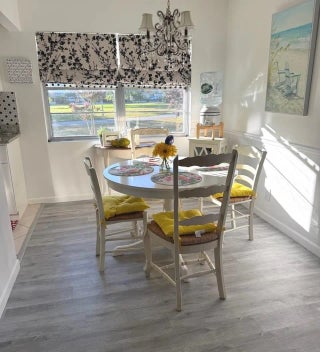 "Motivated Seller" ... Immaculate Turnkey First-Floor Corner Unit – Fully Remodeled and Furnished. Bright and airy 2BD/2BA, move-in ready to enjoy the Florida lifestyle. Features laminate flooring throughout, modern kitchen with granite countertops, stainless steel newer 2022 appliances, and cabinets. Recent upgrades include a new A/C with Nest thermostat, water heater, and new electrical panel. short walk to the Clubhouse and the on-site restaurant and pools. Relax on landscaped back patio with beautiful view. Experience resort-style living with endless social activities or simply relax under the Florida sunshine. 10 minutes to the Beach ... perfect for those who love both relaxation and active living. Will not last!