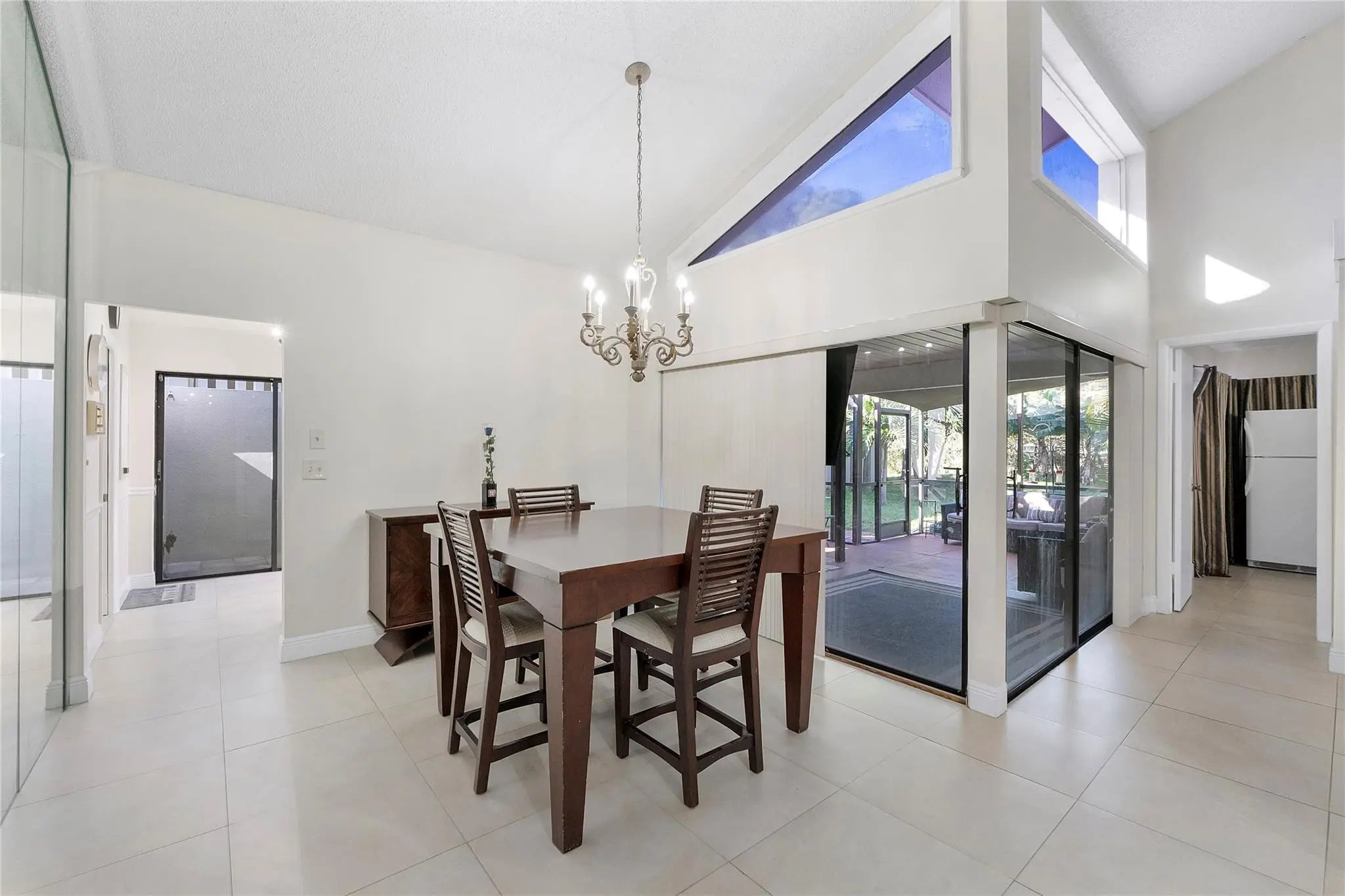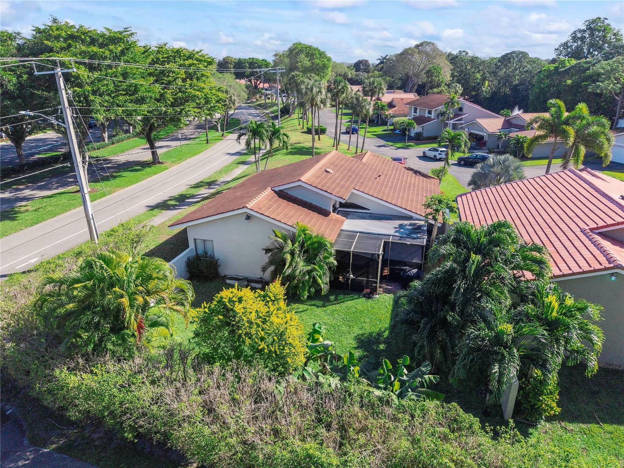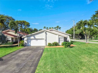 Beautiful single family home PERFECTLY LOCATED on the corner right across from the Deer Creek Golf Club. WIDE-OPEN floor plan; Foyer opens to HUGE GREAT ROOM boasting soaring vaulted ceilings, light & bright with clerestory windows in the living/dining areas. Lovely neutral 24" tile floors throughout, 5" baseboards. White cabinetry in your kitchen w/granite countertops, glass tile backsplash, breakfast area & a large passthrough window to a spacious screened & roofed LANAI. Beautiful private back yard. BRAND NEW 2026 A/C, 2020 ROOF and electric panel. Laundry room, & a 2 car garage, HUGE DRIVEWAY. Deer Creek Golf Club is steps away and is open to the public along with the Deer Creek Grille, & Pro-shop. Close to shopping, major highways, parks & just over 4 miles to the beach. LOW HOA FEES!