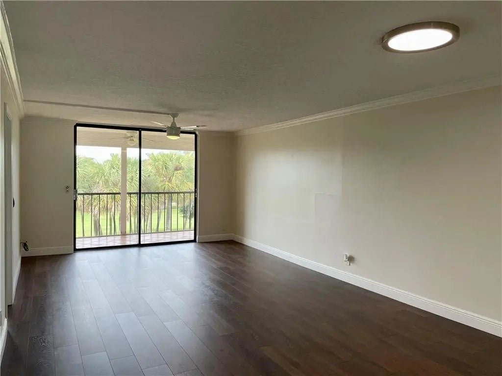 Beautifully updated and move in ready 2 bedroom, 2 bath condo with gorgeous golf course views. Lovely open kitchen with wood cabinets, stainless steel appliances, pendant lights over snack/breakfast bar. Luxury vinyl plank flooring throughout living areas & bedrooms. All popcorn removed from ceilings, new baseboards and crown molding, neutral paint colors. Updated bathrooms, walk in closets. Impact windows and doors except for slider with pull down shutters for balcony. Newer A/C, hot water heater, disposal. Common laundry on each floor of the building. Building is directly across from the community pool. Great location close to shopping, major highways, parks and only about 4 miles to the award winning Deerfield Beach. Landlord requires tenants to get renter's insurance. No pets allowed.