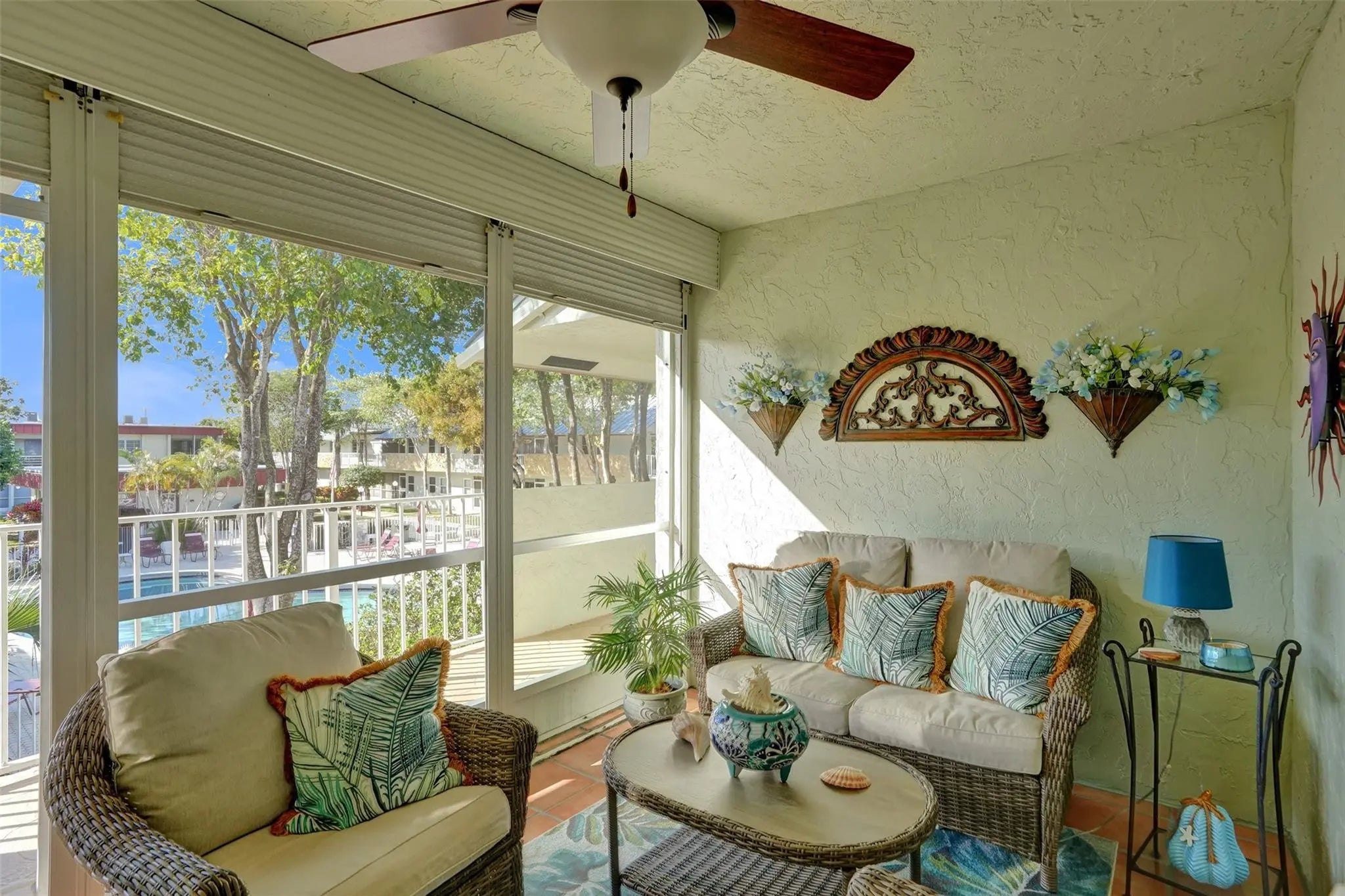 Wow! Welcome to your Sunny Florida Retreat! Immaculate & Move-in ready, this spacious & adorable 2 bed/2 bath CORNER UNIT is neat as a pin and truly turnkey! Ideally located in Deerfield Beach -just minutes to sand, surf & all the best the area has to offer. Nestled in a well-maintained two-story building, this condo offers the perfect blend of comfort, convenience & coastal living. Bedrooms feature an en-suite bath. Plenty of storage & walk in closet. Impact windows throughout and new A/C. Charming vintage Kitchen impeccably maintained & fully functional. Covered and screened lanai off the front entry- with a beautiful pool view and is perfect for outdoor relaxation! Pet Friendly! One small pet (max. 20 pounds) permitted. Owner occupied community with no rentals allowed. 2025 Metal Roof.