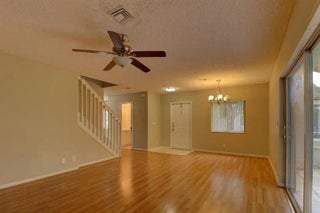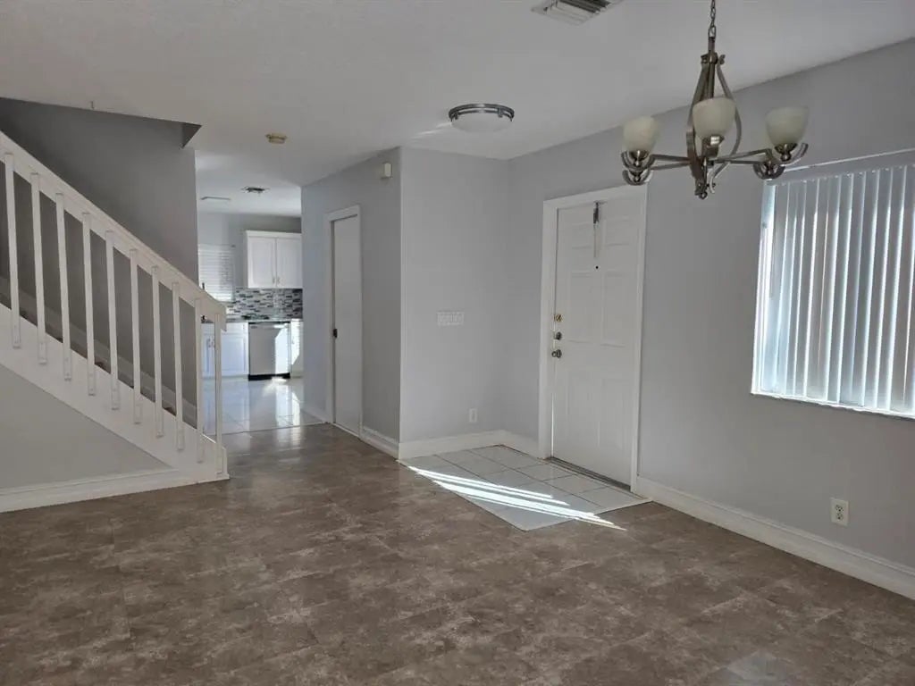 VACANT & EZ to show starting Feb 16. 24 hr manned security guard gated entrance. Professionally cleaned, recently painted & ready for a new tenant. Beautiful community of well kept homes. 2 pools, basketball courts, cable TV, internet & garbage removal is included, newer S/S appliances, granite counter tops & a newer LG washer & dryer. Newer laminate flooring installed in LR & all bedrooms (no carpet). IMPACT hurricane windows have been installed 2025. Garage available for extra storage & 2 spaces in the driveway (NO commercial vehicles). Small dog OK under 25 lbs. NO dangerous breeds please. Use Showing Time for EZ appt scheduling. You will love coming home to this community.