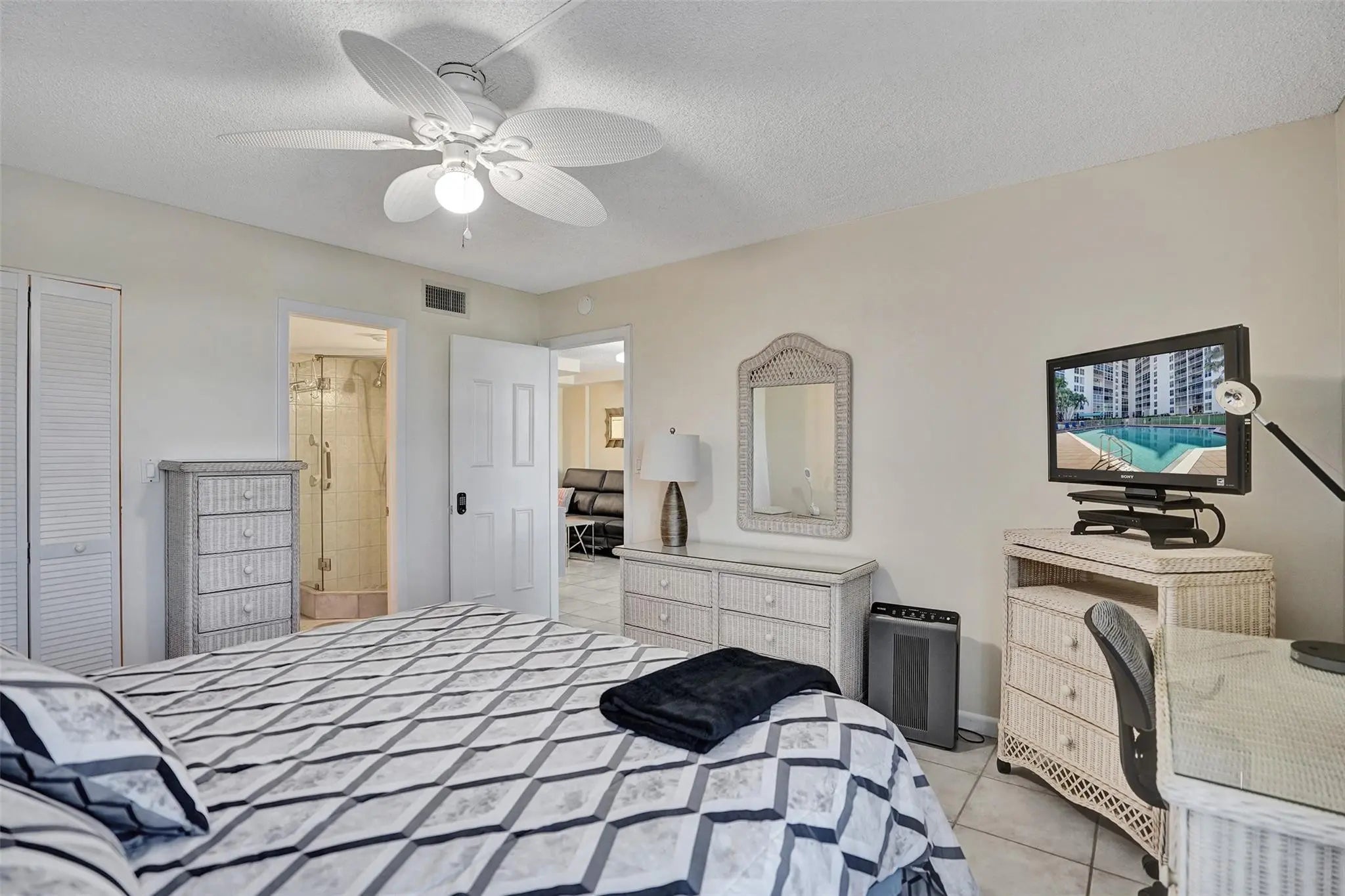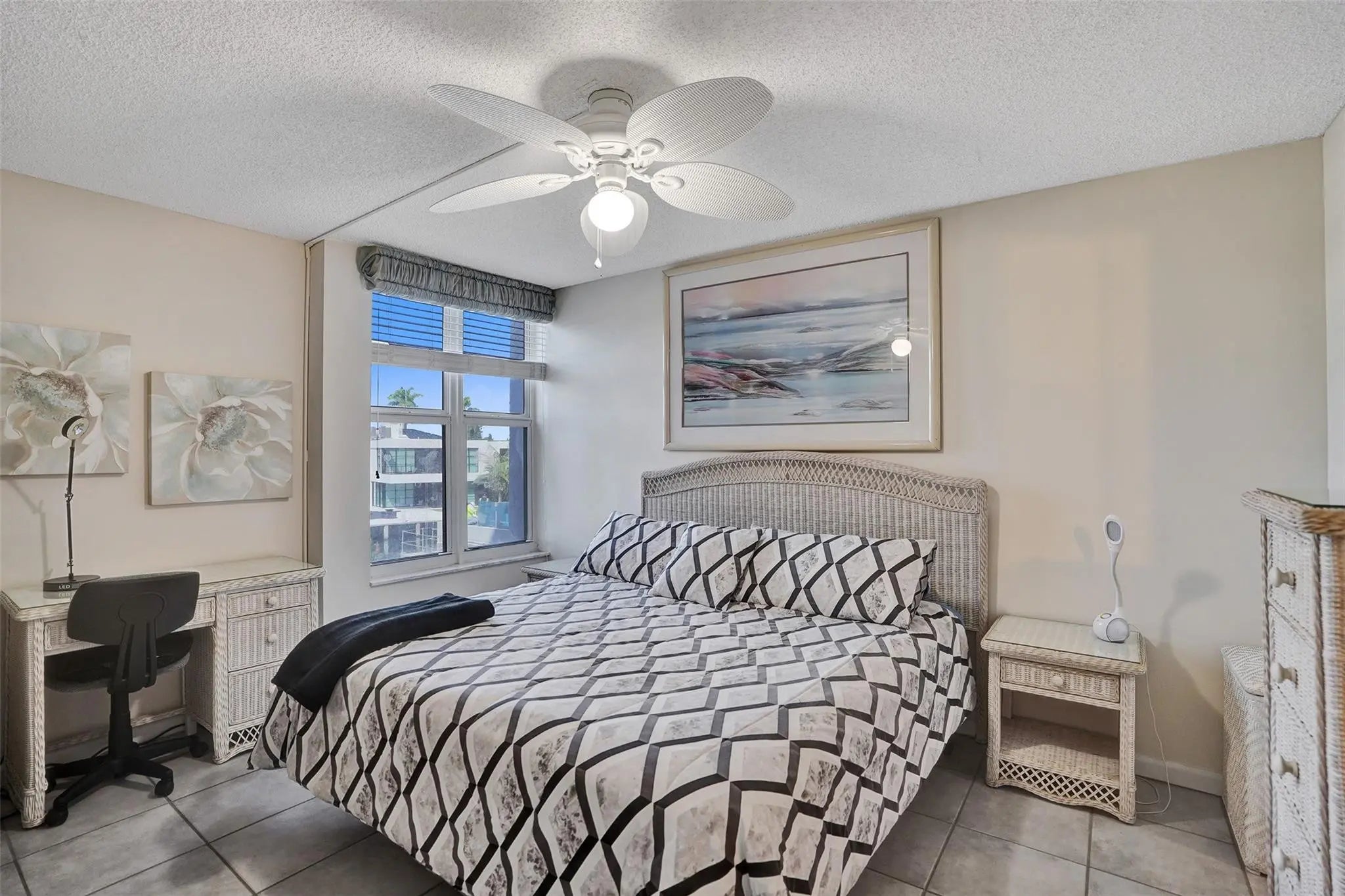 Beautiful 2BR/2BA corner residence in East Pompano Beach, directly across from the beach with tranquil canal views. This coastal retreat features an bright open-concept design, with granite countertops, creating a seamless flow for elegant living and entertaining. Split-bedroom layout with hurricane impact windows and private screened balcony. Rent immediately up to 4x per year at min. of 3 months, ideal for investors. Laundry facilities on each floor, private storage bin, 50-year inspection passed, building freshly painted, along with other major renovations completed, including a resort-style Olympic-sized pool. Small pets welcome. Enjoy private beach access across the street, providing a relaxing oceanfront retreat. Luxury multi-million condos rising next door enhance future value.