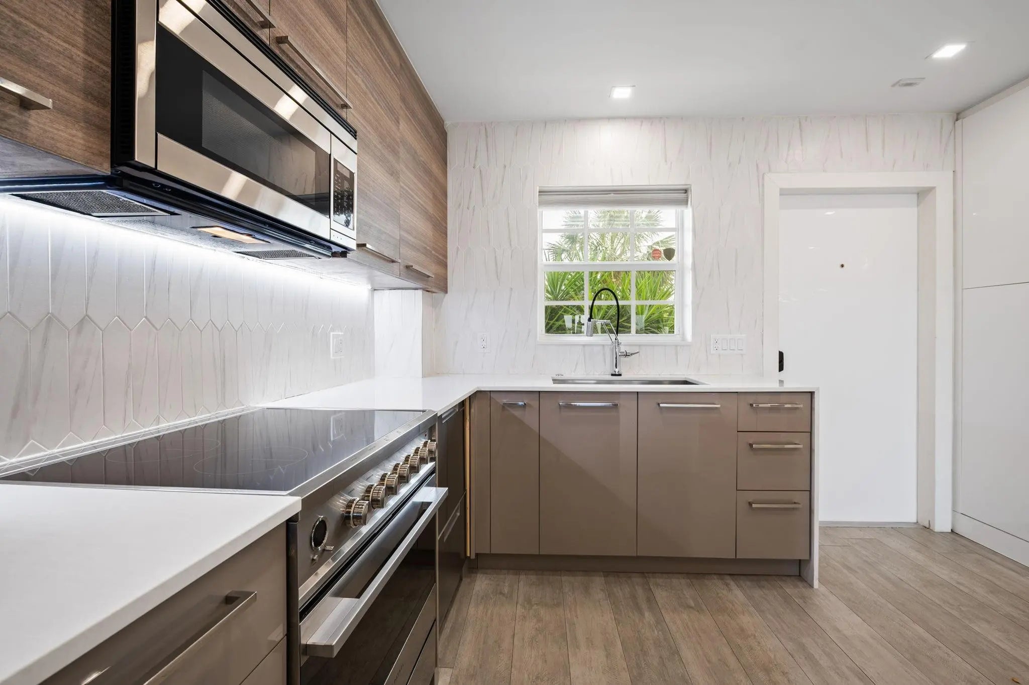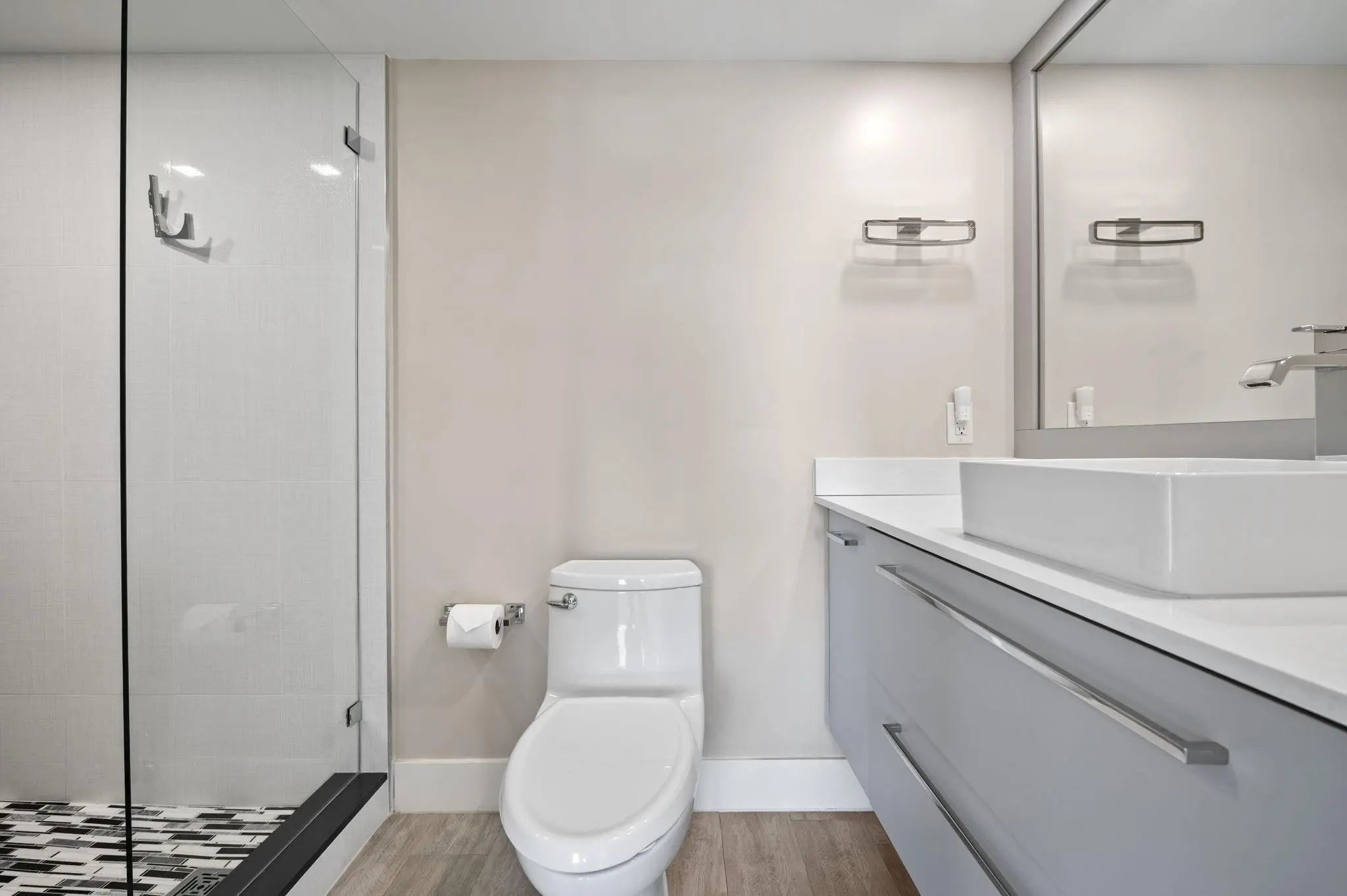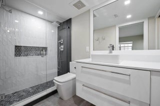 This stunning unit it has had a complete renovation with an architecturally redesigned floor plan. Designer kitchen features sleek, flat-panel laminate, slow closing cabinets elegant quartz counter tops, butchers sink, touch sensitive faucet, cabinet lighting and Fisher Paykel appliances creating a contemporary culinary space. The entry way has a discreet wall of hidden cabinetry, smooth wall finishes, modern high hats with wood effect ceramic tile flooring, a built-in cocktail bar with wine fridge, all leading to the patio doors and open balcony! Primary has top of the line built in closets, beautiful canal views from the picture window bathroom has a modern vanity and extended rain shower with seating, stylish 2nd bedroom has been updated and has it’s own ensuite and walk in shower.