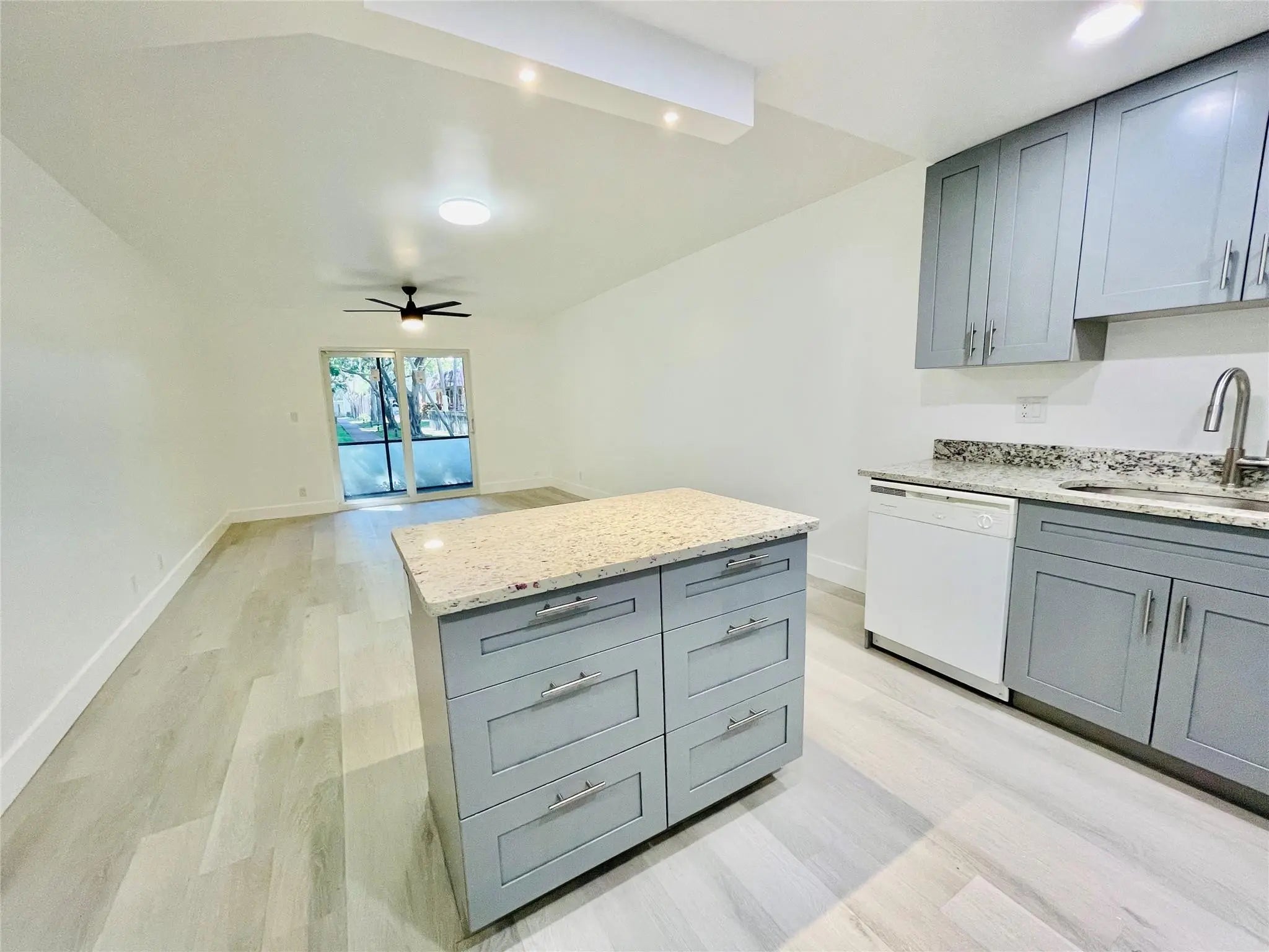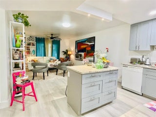 Beautifully & totally updated 1/1 on the 1st floor of a boutique bldg in the rapidly developing Downtown of Pompano Beach. This chic & modern unit has an open kitchen w/ a small island, wood cabinetry, quartz countertops, recessed lighting, waterproof & durable vinyl floors, IMPACT WINDOWS & sliding glass door, subway tiles in bath w/ additional linen closet, NEW electrical panel & more; overlooking the yard & pool area. Plenty of interior storage: a walk-in closet & outdoor storage on the fully screened patio w/ hurricane shutters. Secured lobby, bike storage, heated pool, nighttime security patrol are some of the amenities. BLDG IS FULLY FUNDED AND HAS 50% IN RESERVES. Next door to Publix & only 2 miles to the newly developed beach w/ restaurants, shops, Fisher Family Pier & more.