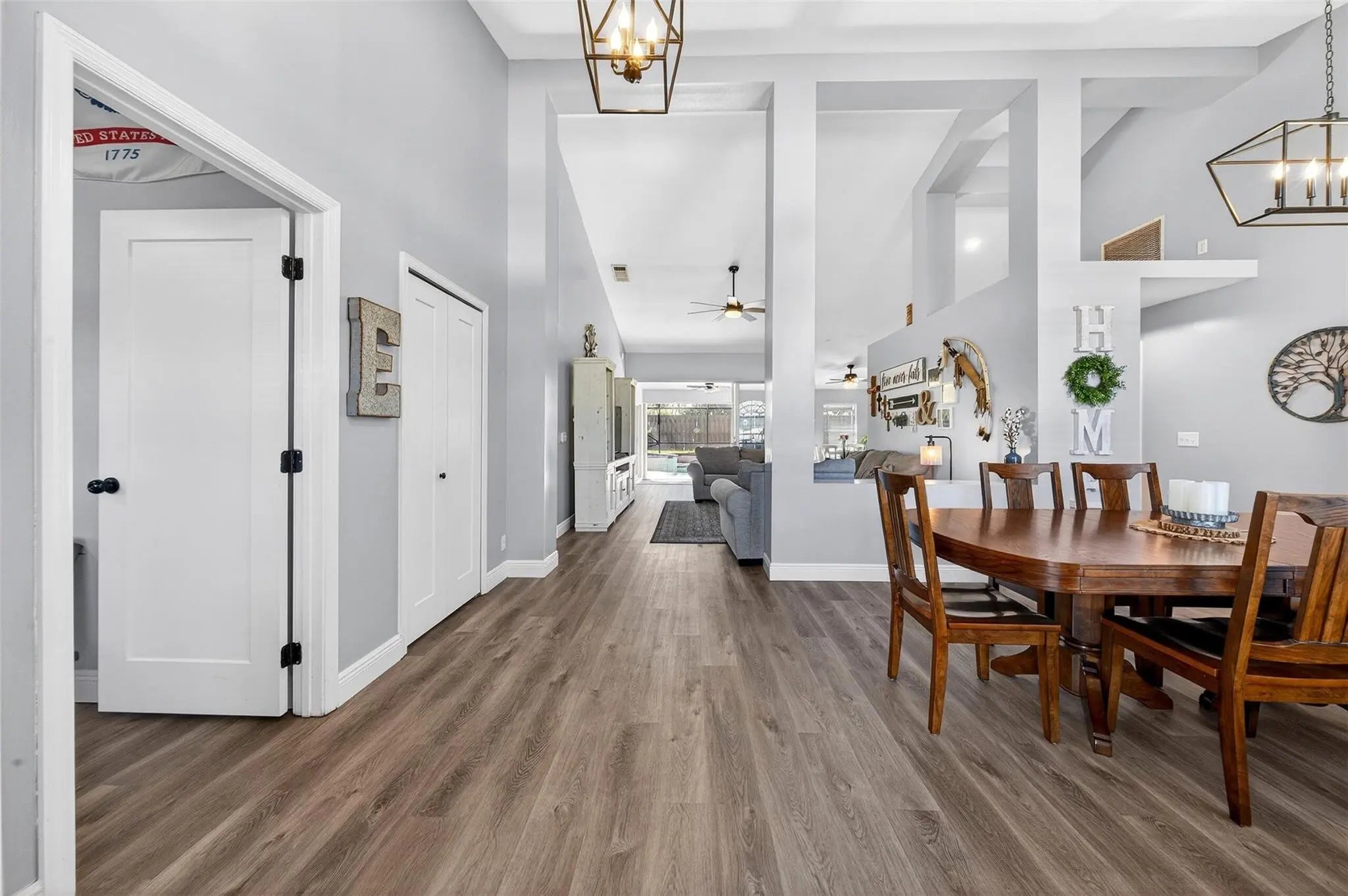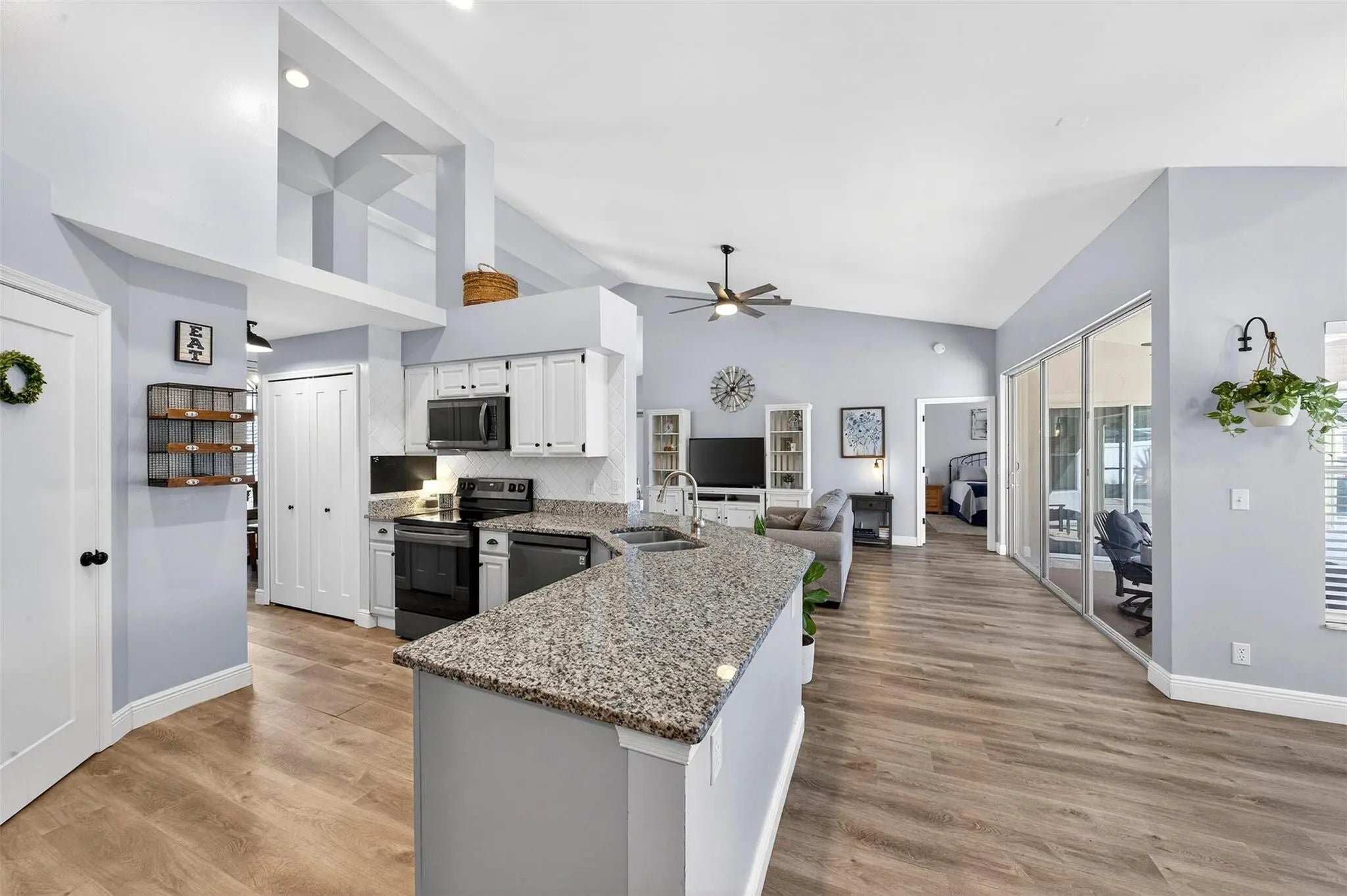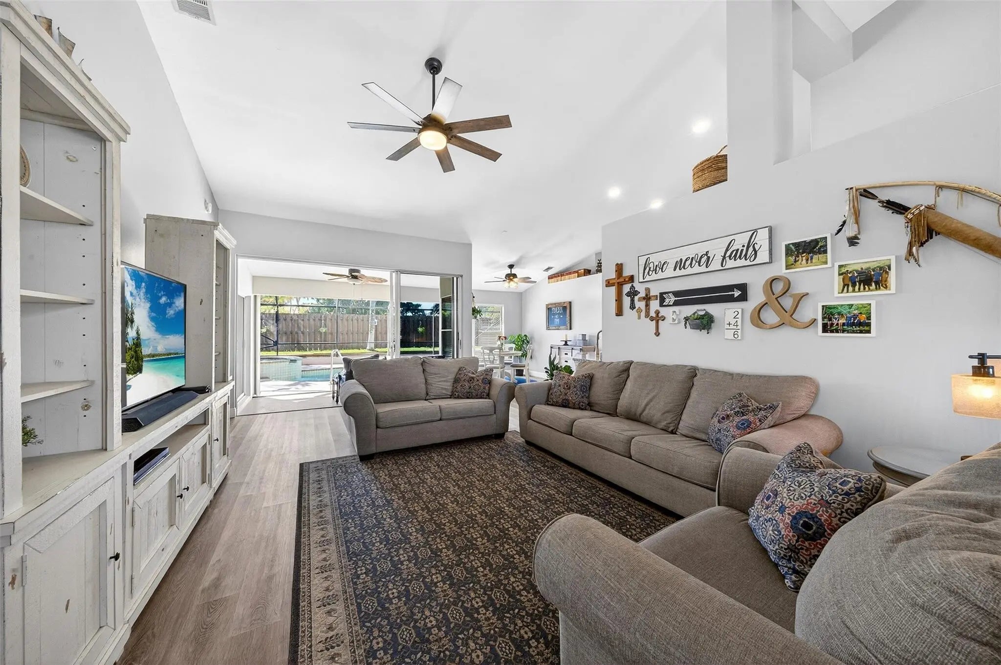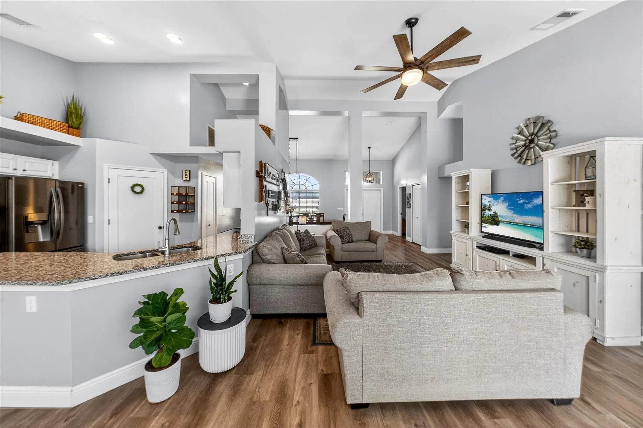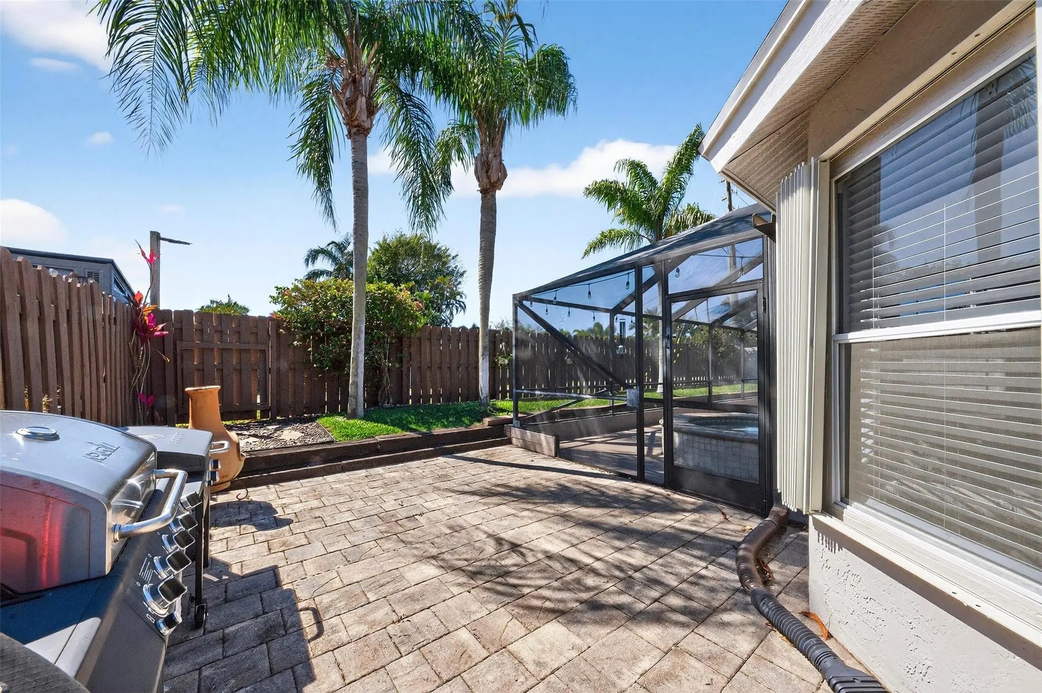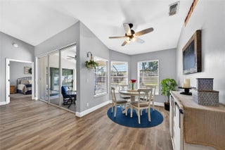 Move-in ready and beautifully maintained, this 4 bedroom + den/office home features soaring ceilings, open living spaces, endless updates, and a private pool perfect for Florida living! Outstanding upgrades include a new hurricane impact front door & garage door; all new interior doors; new luxury vinyl flooring throughout and baseboards; an open kitchen with white cabinetry, granite countertops, and new stainless steel appliances (refrigerator, stove, dishwasher, microwave); new washer and dryer; updated lighting and ceiling fans; new hot water heater; and fully painted interior and exterior! Enjoy the ultimate outdoor retreat with a screened pool, spacious patio, and a fully fenced yard designed for comfort and privacy. Low HOA fees and conveniently located near shopping, dining & more!