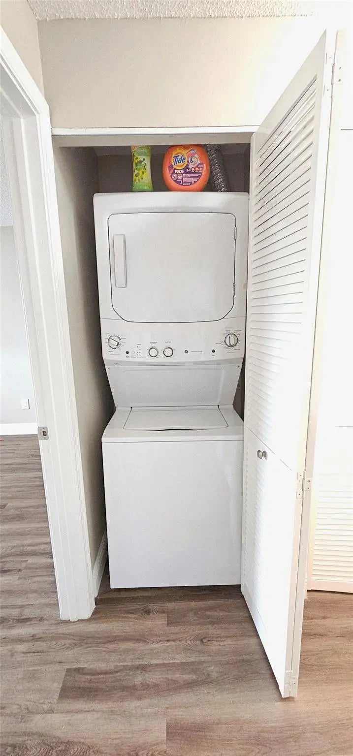 A true 1/1 in Lakewood at Emerald Hills Hollywood. This is a beautiful 2nd floor condo that overlooks the lake and that awesome guitar. Totally renovated and modern. All stainless appliances, quartz countertops, vaulted ceilings , laminate floors , washer/dryer stack, fans, linen closet and a huge 10x5 walk in closet in the bedroom. Pool, gym and tennis are some of the activities available in this gated community. Schools, shopping , transportation and restaurants all close by. The unit is sparkling clean. Watch the planes take off and land from your window. See it today. You'll love it NO PETS PER OWNER approval is quick.. Welcome home to Lakewood in Hollywood.