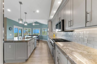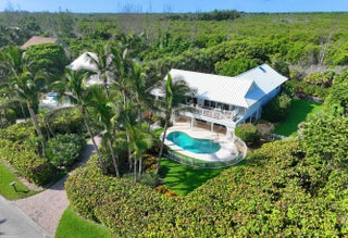 Beach house with sweeping ocean views and a rare 50' deeded ocean front beach parcel. Recently renovated four bedroom, 3.1 bath home with Pool and Elevator. Two story home with First floor featuring 2 bedrooms, bathroom and large family room guest quarters overlooking the pool. Second floor with 2 en-suite bedrooms, dining area, kitchen and large family room plus wrap around deck overlooking the ocean. Home features all new impact windows and doors, metal standing seam roof (2017), elevator, newly remodeled kitchen with marble countertops, subzero side-by-side, stainless refrigerator/freezer, large center kitchen island, Thermidor gas stove and convection oven and a separate Bertazzoni electric convection wall oven. HVAC has three zones for everyone's comfort. 2.5 car garage.