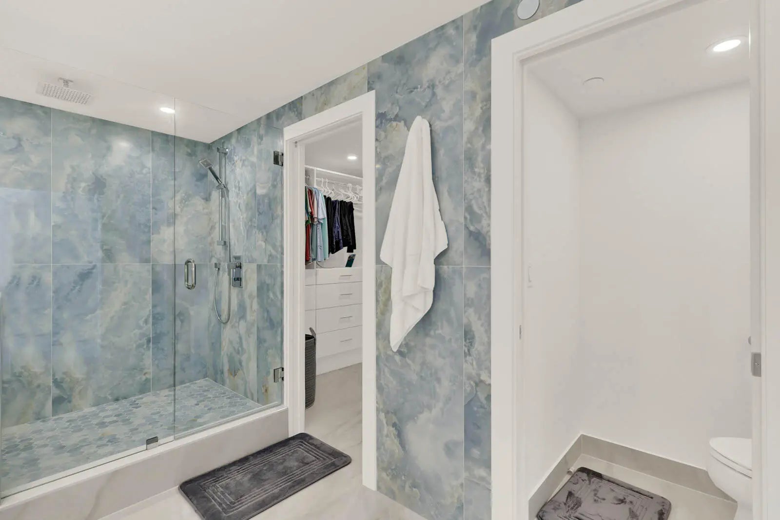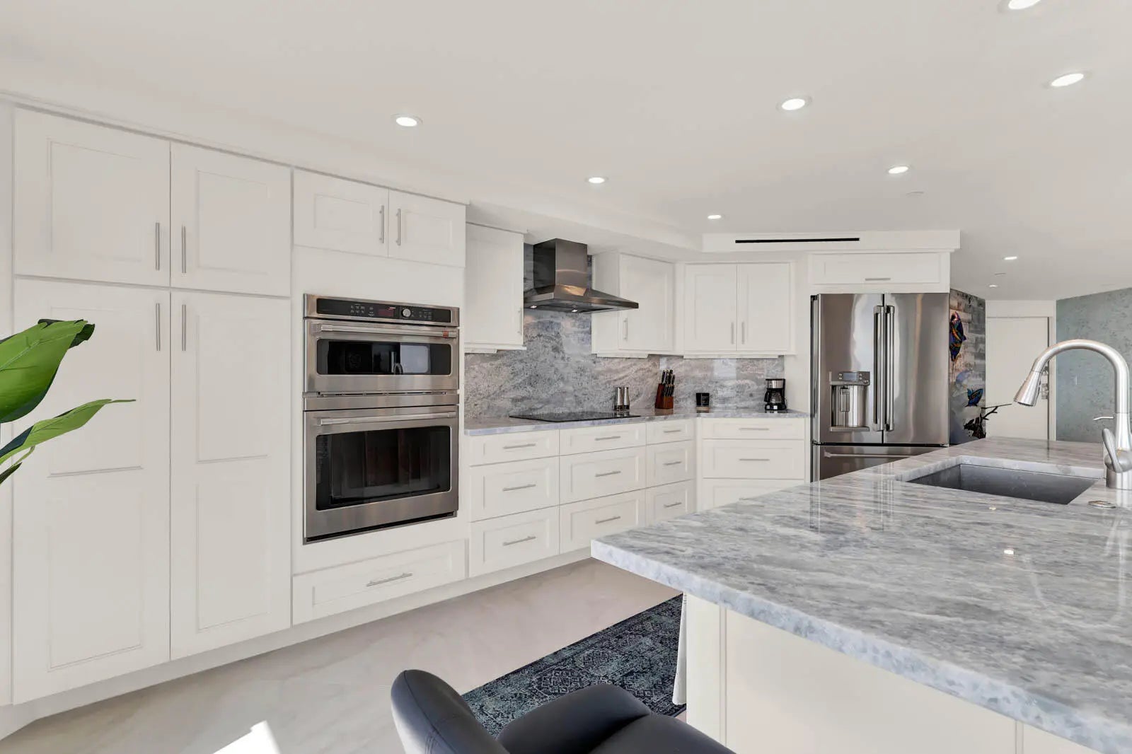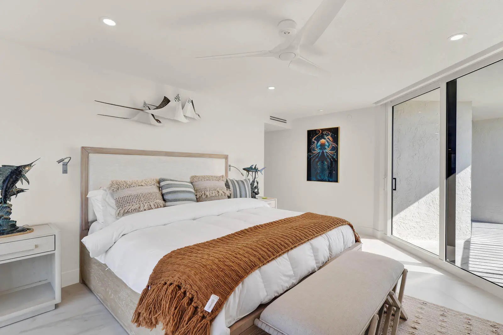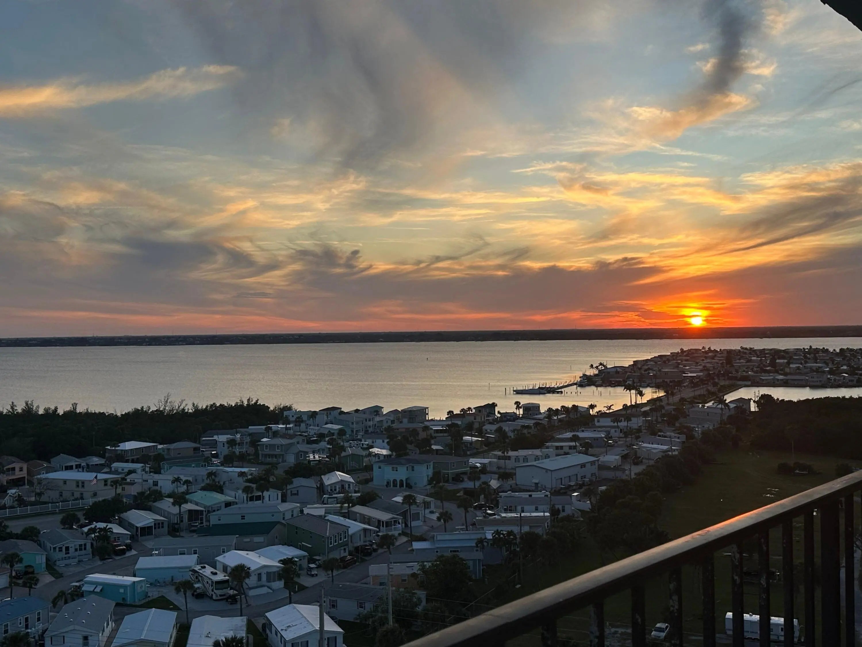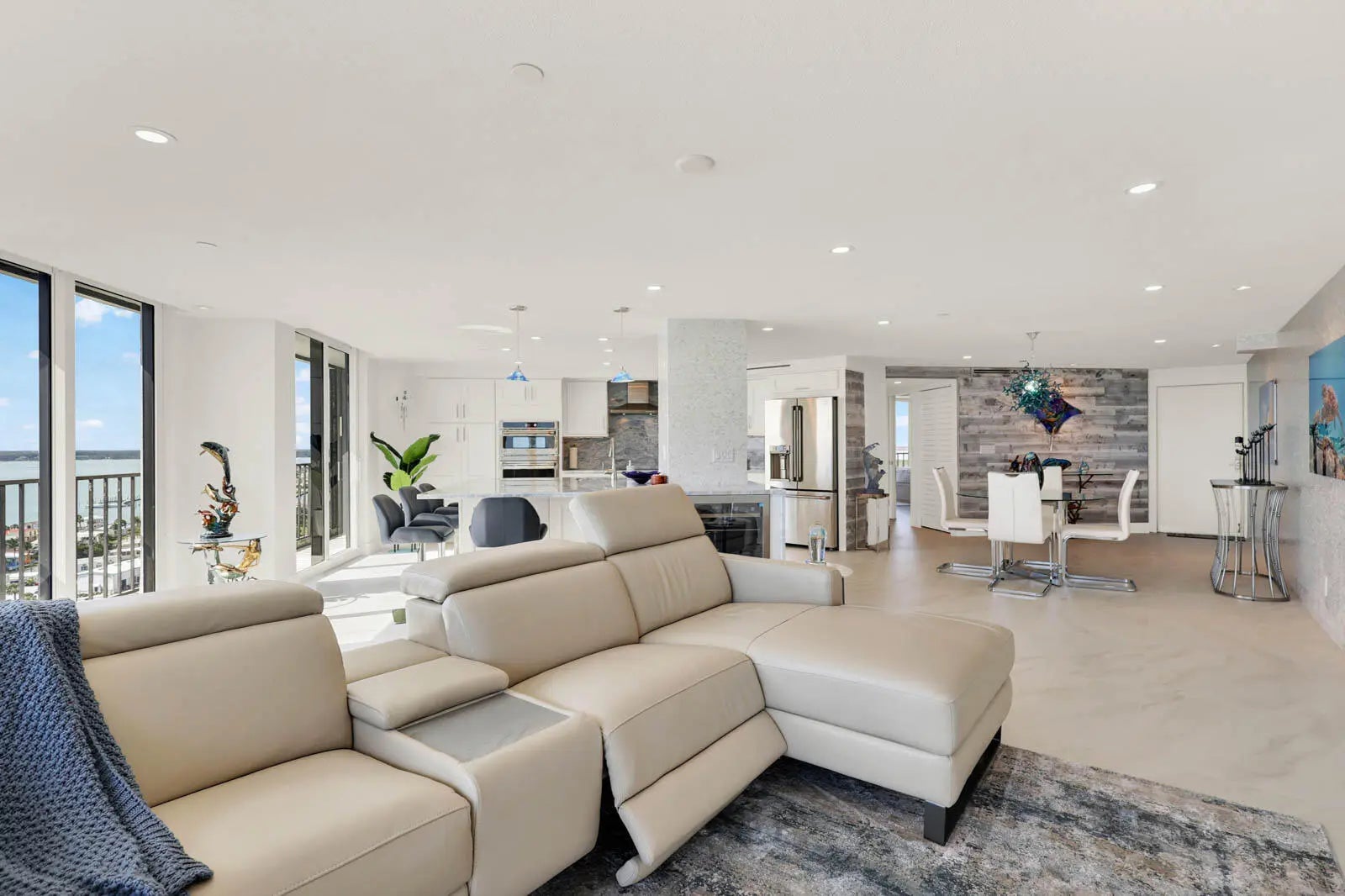 PRINCESS ON HUTCHINSON ISLAND - 2BR/2BA renovated SE end unit. Watch sunrises and sunsets with Ocean and Intracoastal/River views. Features include: renovated in 2024, impact sliders, 36'' ceramic tile, Hunter Douglas electric black out shades, textured ceiling, 6'9'x 8'5' marble center island in kitchen, marble counters in kitchen & bathrooms, shaker-style doors, shaker-style cabinets throughout, 2x4 ceramic tile on walls in bathrooms, Nickel Gap walls, Mother of Pearl tile wall, re-claimed wood planking wall, 3 separate balconies, walk-in closets with custom shelving, full size washer/dryer and so much more! A 3-D Floor plan is in photos. Community amenities include gated, social room with kitchen, billiards, fitness rooms, sauna, pool, tennis, putting green, bocce ball, boat trailer/ RV parking and dune walk to beach. MIRS and SIRS have both been completed. All sizes, taxes, descriptions and HOA are approximate; there may be inaccuracies, independent verification is suggested.