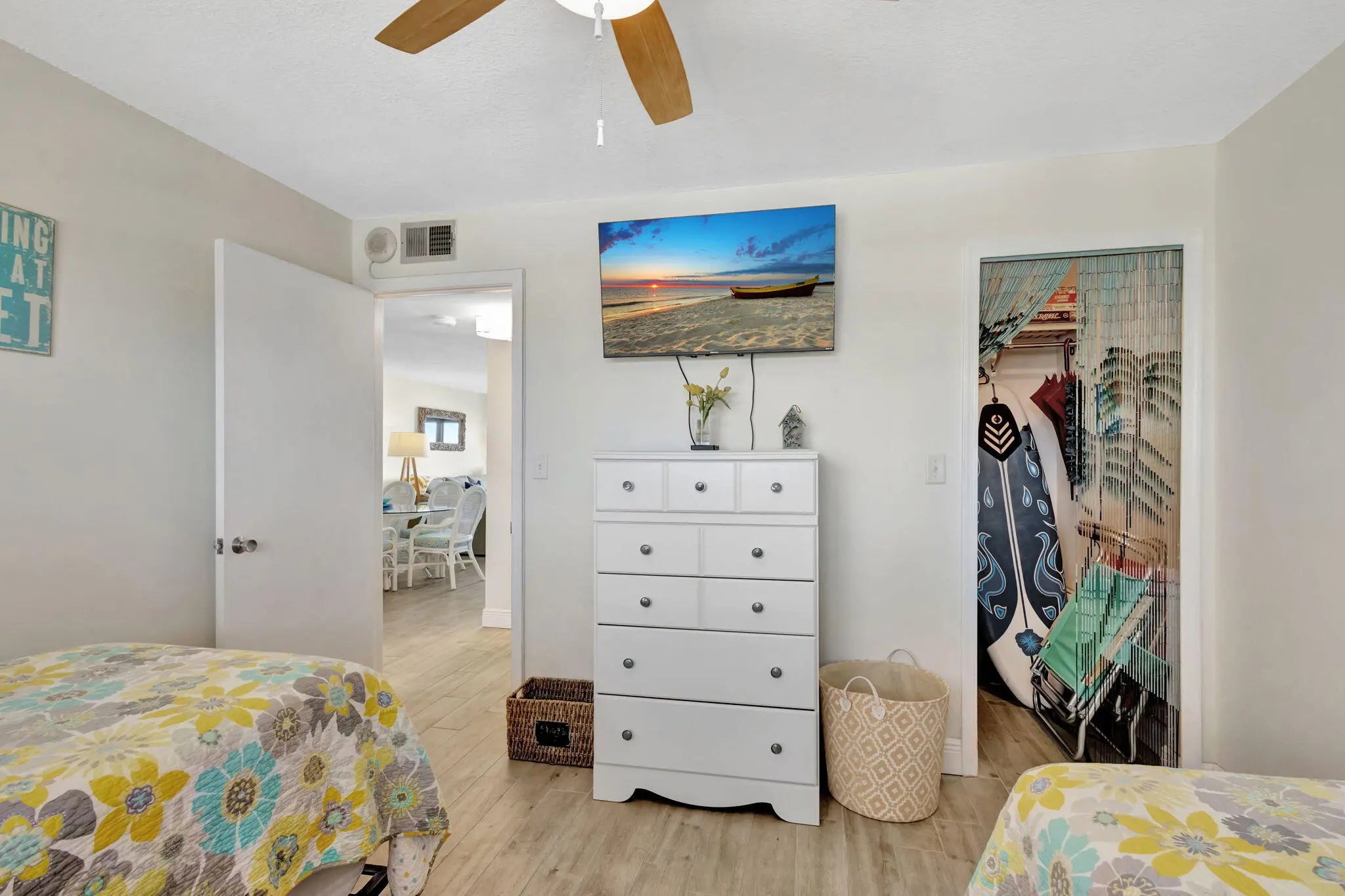 Stunning 4th-floor property features breathtaking views of the ocean. Fully furnished with stylish decor, ceiling fans in every room for comfort, coffee bar with Nespresso n frother machine, master offers a new king mattress, large window with picturesque views of the ocean, spacious walk-in closet and shower, cozy balcony perfect for enjoying your morning coffee with the sunrise. Amenities include: Gated entry for security, clubhouse for social gatherings, pickleball, heated pool, private access to the beach. Electrical included up to $100. Rented February 2027