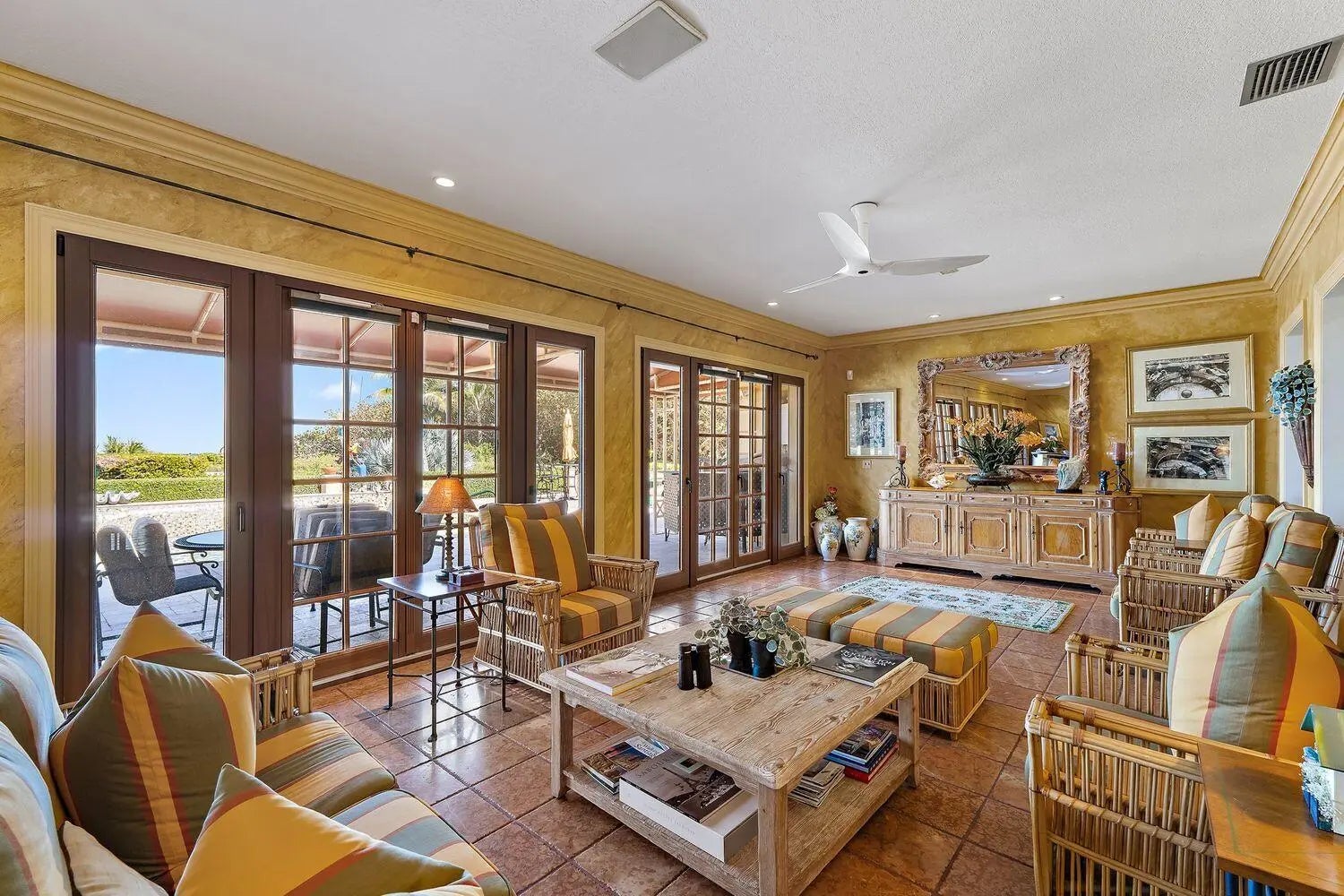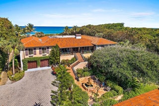 Discover the rare opportunity to own the only Jupiter Island home and property with Blowing Rocks Nature Conservancy as your southern neighbor. The parcel is superb with 134 feet of direct ocean frontage, higher elevation, and expansive shoreline. Tranquility and Privacy abound with Main Home featuring impact glass, electric shutters, & elevator and oceanfront pool plus GUEST HOUSE w/ kitchenette, artist studio, 2 car garage & covered patio. Main home features generous floor plan and spacious living areas seamlessly open to an expansive loggia showcasing the ocean, pool, and garden views. Tischler French doors open to the beautiful oceanfront terrace & pool for pure enjoyment. Formal dining room w/ picture windows that highlight the surrounding natural beauty. Culinary enthusiasts will appreciate the well-planned chef's kitchen featuring a commercial-grade 8-burner range, double oven, custom cabinetry, & butler's pantry. The primary suite offers a peaceful escape with captivating ocean views, sitting area, custom cabinetry, an expansive walk-in closet, and large primary bath. Guest wing on the first floor with large media room, bar, wine cellar, elevator, additional laundry room and separate entry. Enchanted property with gardens and courtyard that lead to the GUEST HOUSE w/ additional 2 car garage (built in 1992). Guests will enjoy their own retreat, featuring a spacious bedroom, kitchenette, full bath, a versatile gathering room or artist studio and terrace. An elegant yet welcoming feel is conveyed throughout. Close to Stuart Jetport and approximately 45 min to PBI Airport.