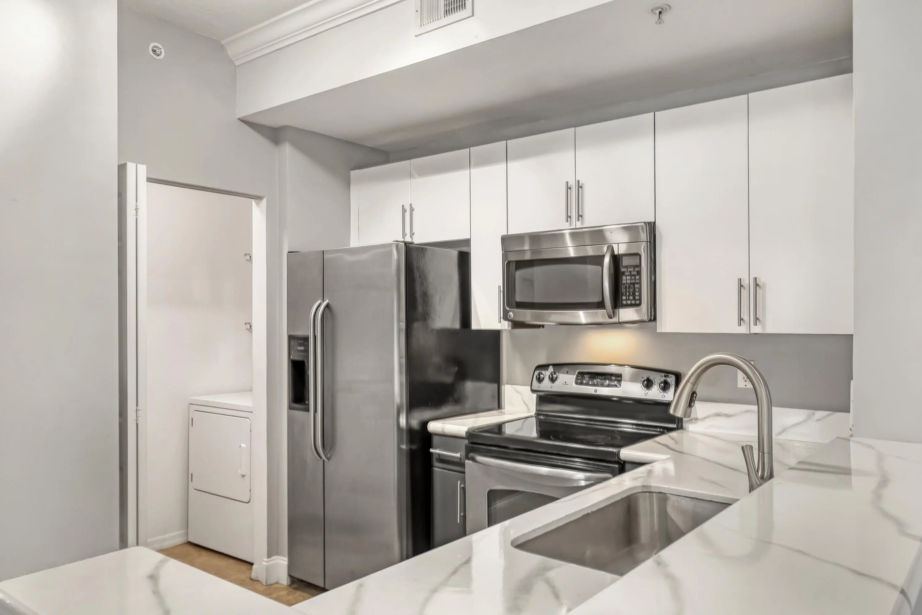 Sparkling and move-in ready Midtown residence featuring fresh designer paint, new plush carpeting, and a functional kitchen countertop. This desirable first-floor 2-bedroom, 2-bath home offers a spacious split floor plan and modern kitchen, ideal for year-round or seasonal living. Enjoy direct access to lakefront walking trails and close proximity to upscale dining, boutique shopping, and entertainment. Pet-friendly community. Schedule your private showing today. Seller Motivated!