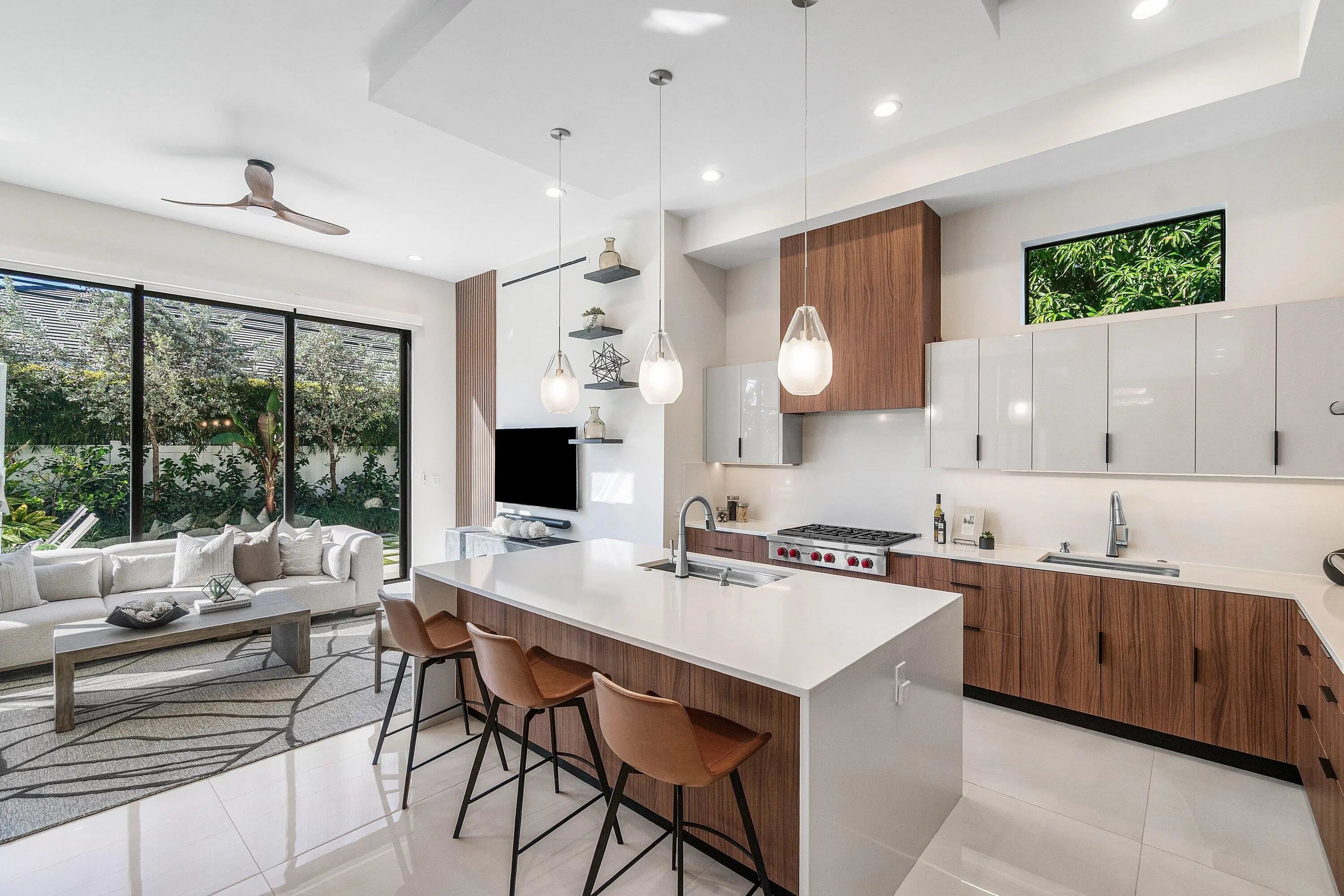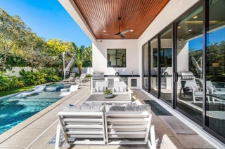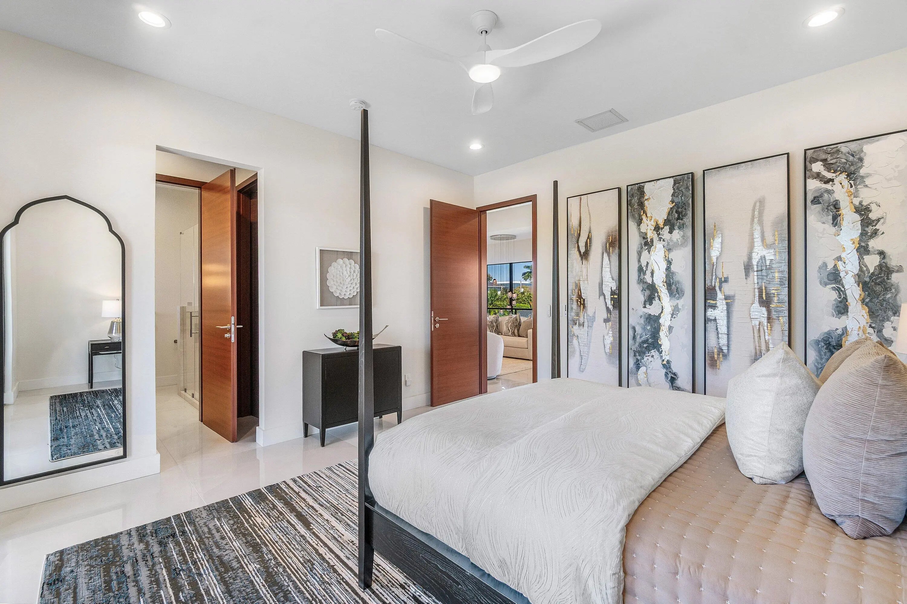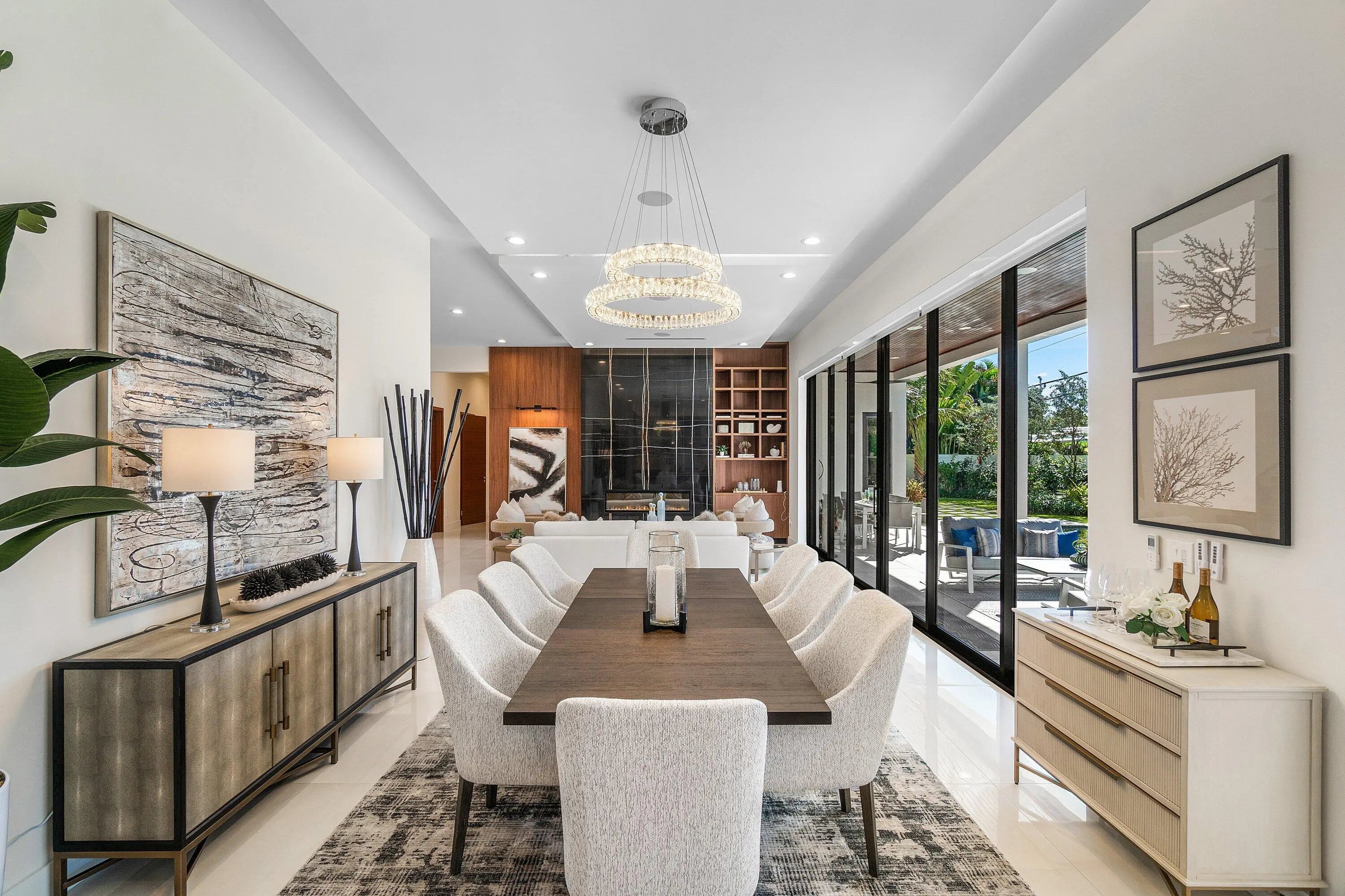 Modern coastal luxury awaits in Boca Villas. Built in 2023, this exceptional contemporary estate blends sophisticated architecture with effortless South Florida living. Located just moments from Mizner Park, the Atlantic Ocean, and the world-class amenities of The Boca Raton, the home offers the ultimate Boca lifestyle. Spanning approximately 5,578 square feet, the residence features five spacious ensuite bedrooms, six and a half bathrooms, soaring ceilings, dramatic glass stairway, private elevator, and walls of impact glass that fill the home with natural light. The gourmet chef's kitchen is equipped with premium appliances, custom cabinetry, and an oversized island designed for entertaining. Expansive living areas seamlessly connect indoor and outdoor spaces. The backyard is a private resort-style retreat featuring a sparkling pool and spa, covered patio, summer kitchen, and beautifully landscaped grounds—perfect for entertaining or relaxing year-round. Additional highlights include a 3-car garage, generator, smart home features, and high-end finishes throughout. Ideally situated in one of Boca Raton's most desirable neighborhoods, this residence offers walkable access to dining, shopping, beaches, and downtown Boca's vibrant lifestyl