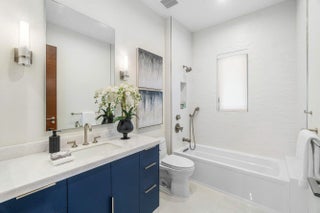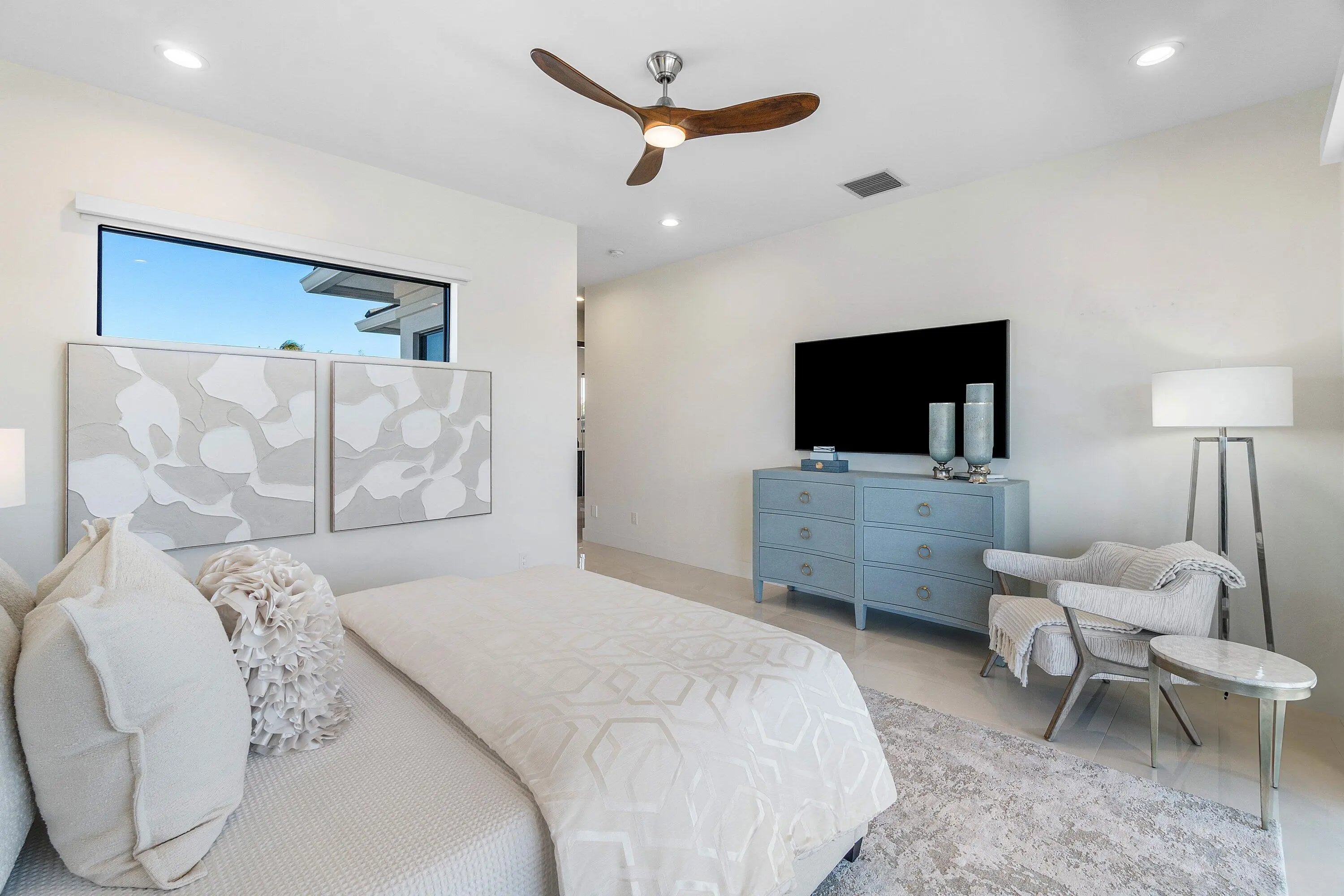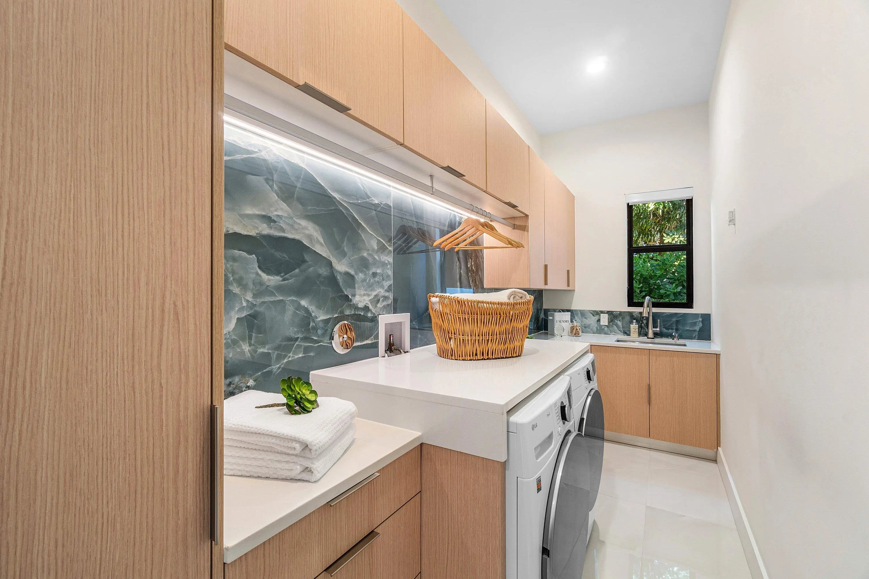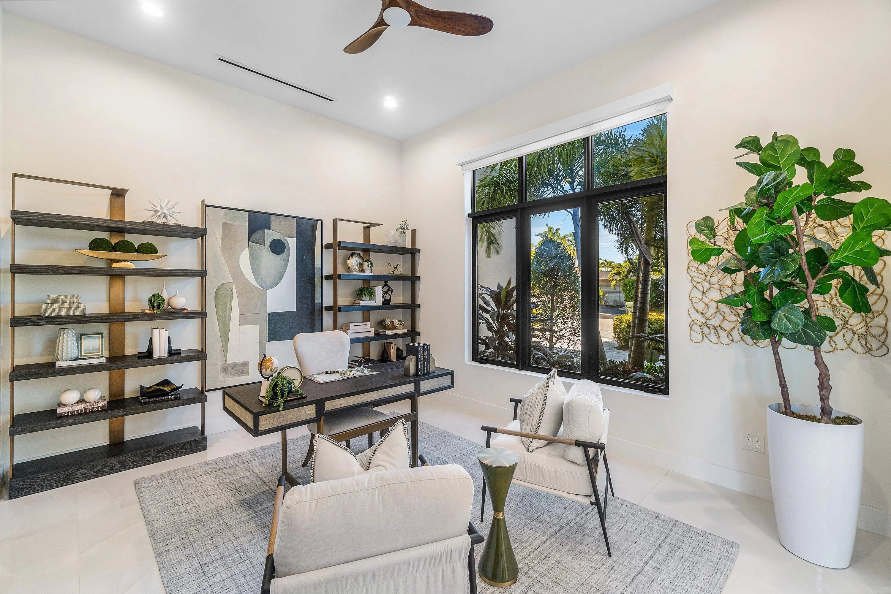 Modern coastal luxury awaits in Boca Villas. Built in 2023, this exceptional contemporary estate blends sophisticated architecture with effortless South Florida living. Located just moments from Mizner Park, the Atlantic Ocean, and the world-class amenities of The Boca Raton, the home offers the ultimate Boca lifestyle. Spanning approximately 5,578 square feet, the residence features five spacious ensuite bedrooms, six and a half bathrooms, soaring ceilings, dramatic glass stairway, private elevator, and walls of impact glass that fill the home with natural light. The gourmet chef's kitchen is equipped with premium appliances, custom cabinetry, and an oversized island designed for entertaining. Expansive living areas seamlessly connect indoor and outdoor spaces. The backyard is a private resort-style retreat featuring a sparkling pool and spa, covered patio, summer kitchen, and beautifully landscaped grounds—perfect for entertaining or relaxing year-round. Additional highlights include a 3-car garage, generator, smart home features, and high-end finishes throughout. Ideally situated in one of Boca Raton's most desirable neighborhoods, this residence offers walkable access to dining, shopping, beaches, and downtown Boca's vibrant lifestyl