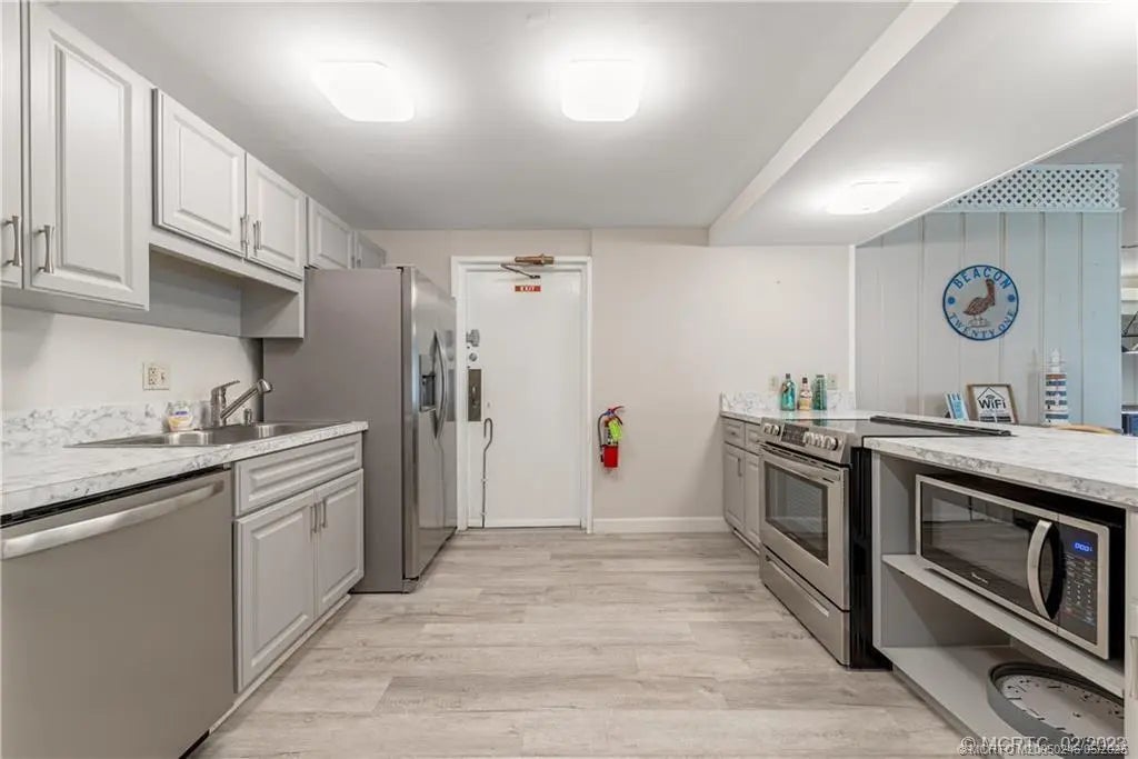 Welcome to this charming first-floor 2-bedroom, 1-bath condo in the desirable Beacon 21 community in Jensen Beach. Offering peaceful water views from both the front and the back, this unit presents a rare opportunity to enjoy a tranquil lifestyle with the convenience of being move-in ready. While the interior may benefit from some cosmetic updates, the home is completely turnkey—clean, functional, and ready for immediate occupancy. Enjoy morning coffee with serene water views, and take advantage of the community amenities including a marina, pool, tennis courts, and clubhouse. Perfect for full-time living or a seasonal retreat.